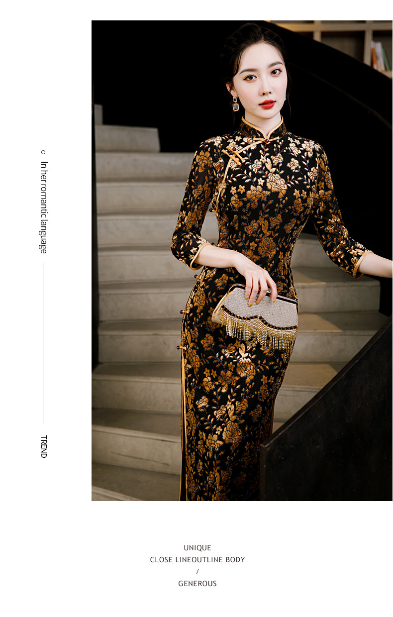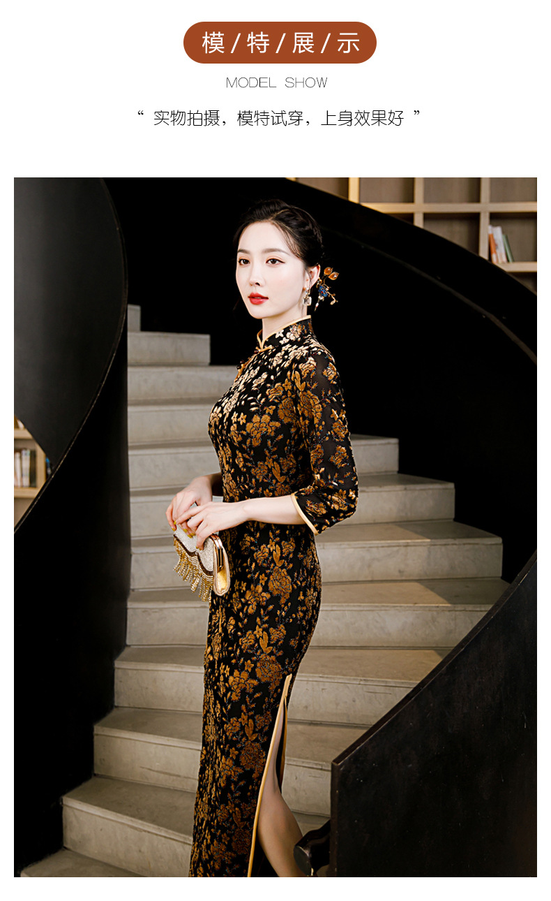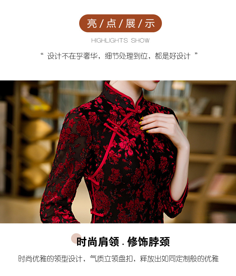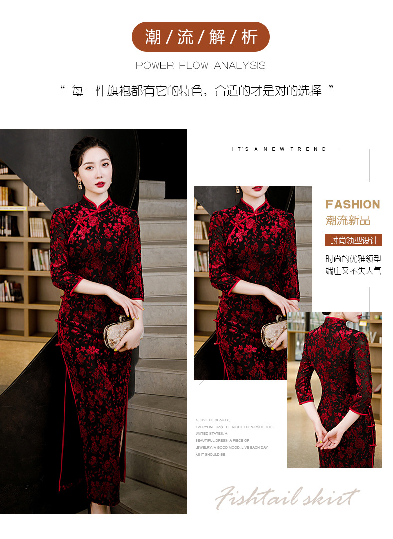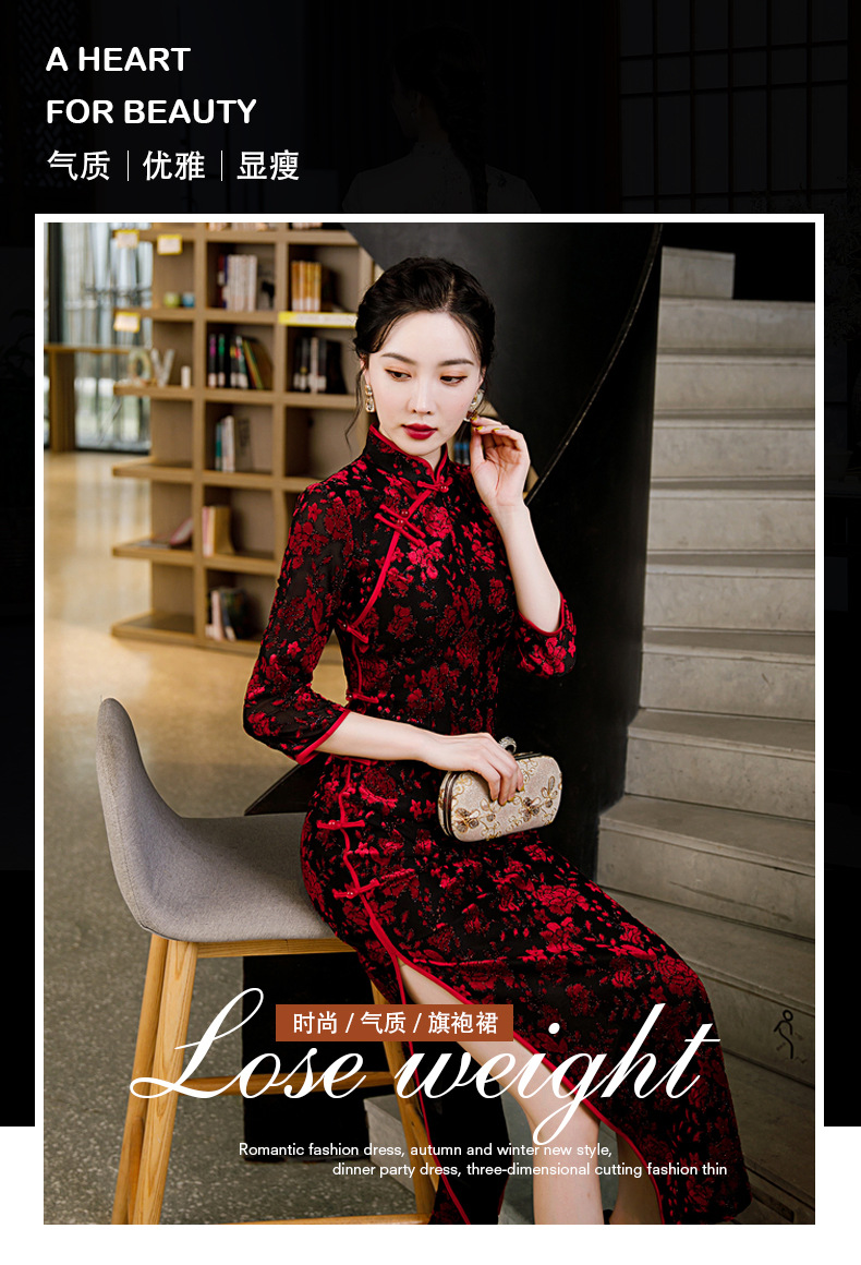 七分袖复古修身立领时尚斜襟旗袍宴会改良旗袍CX-0607