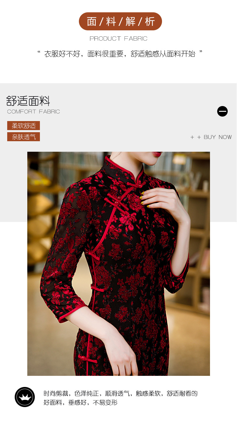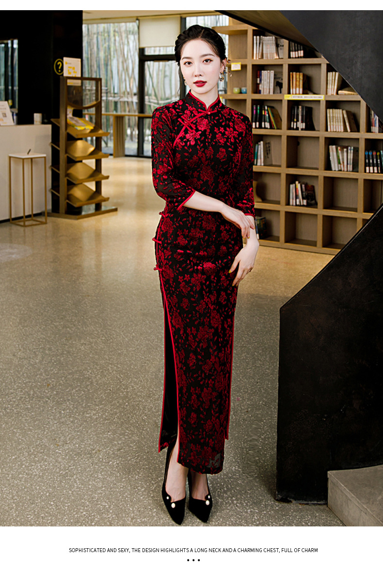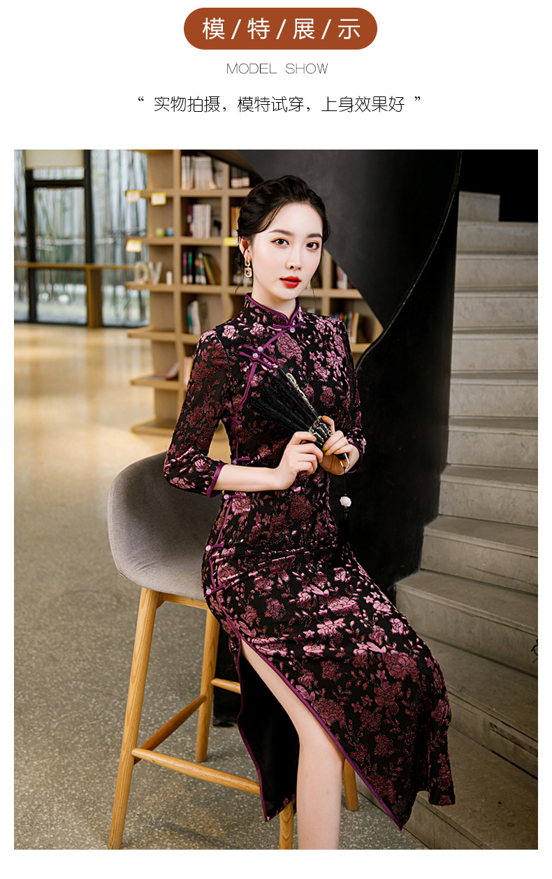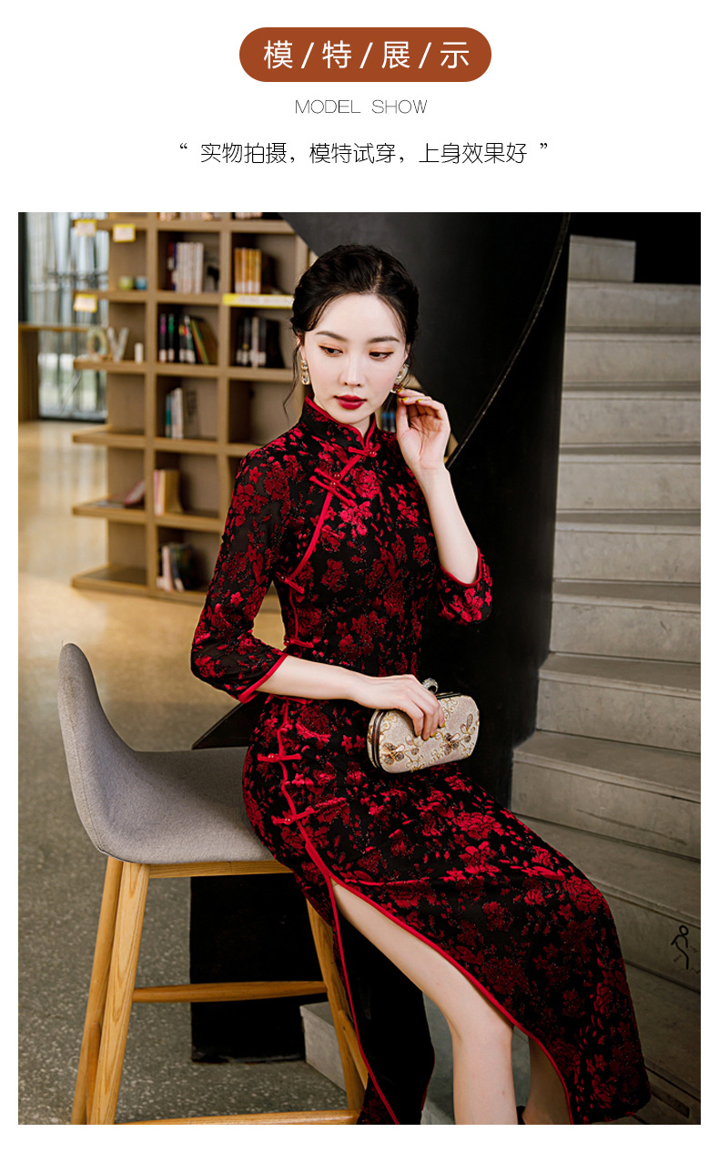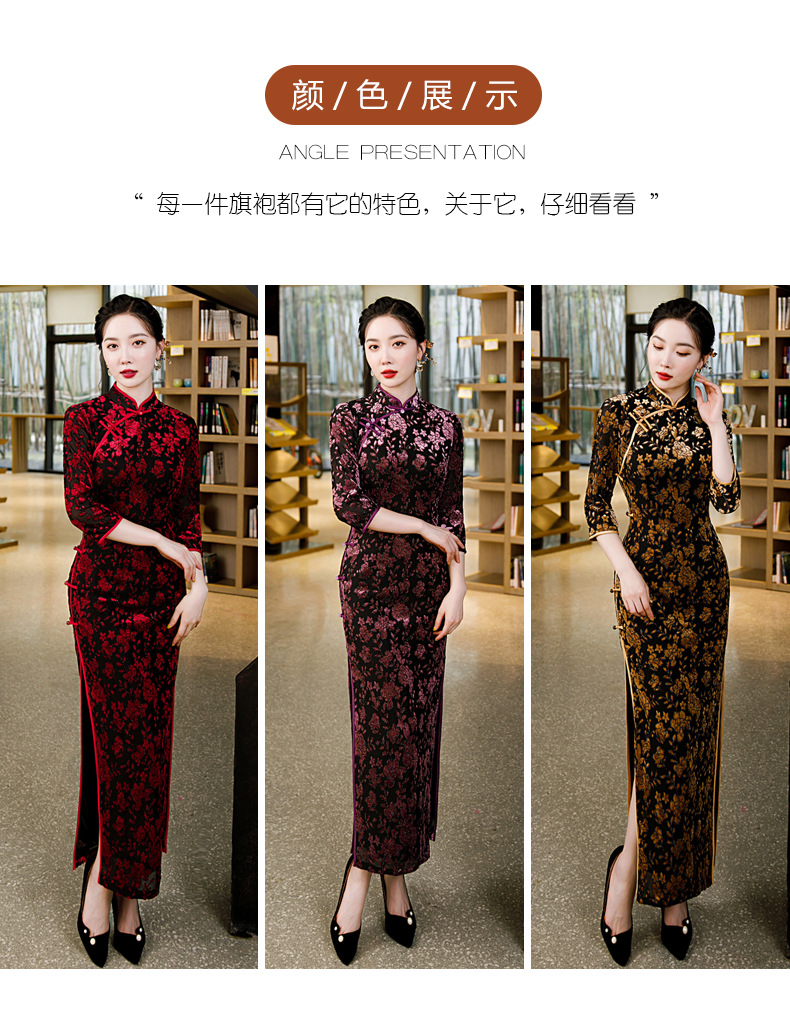 七分袖复古修身立领时尚斜襟旗袍宴会改良旗袍CX-0607