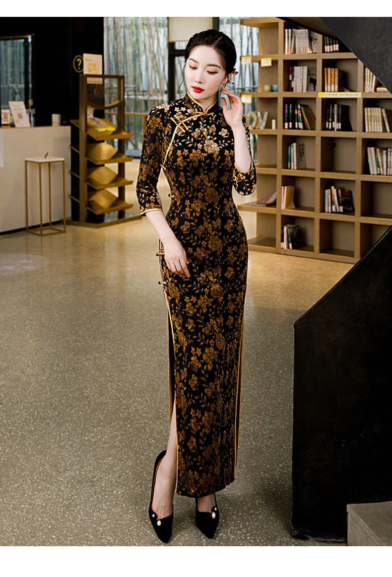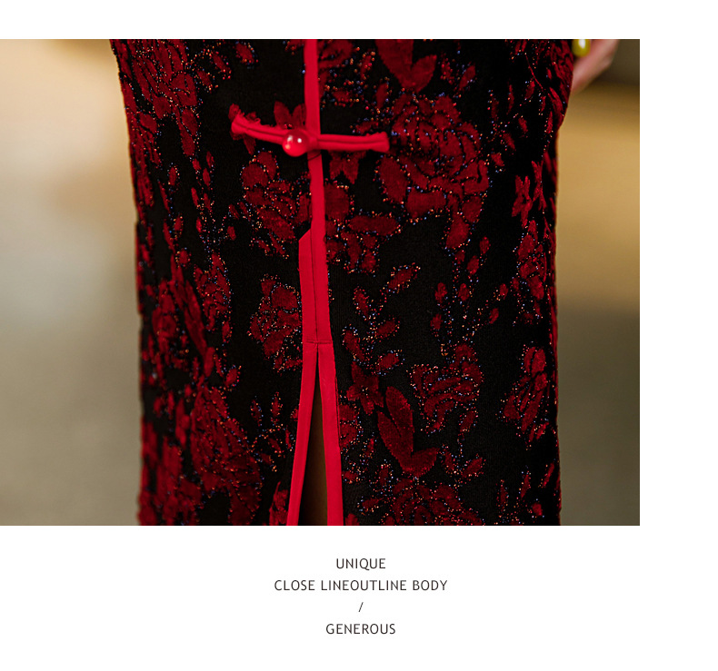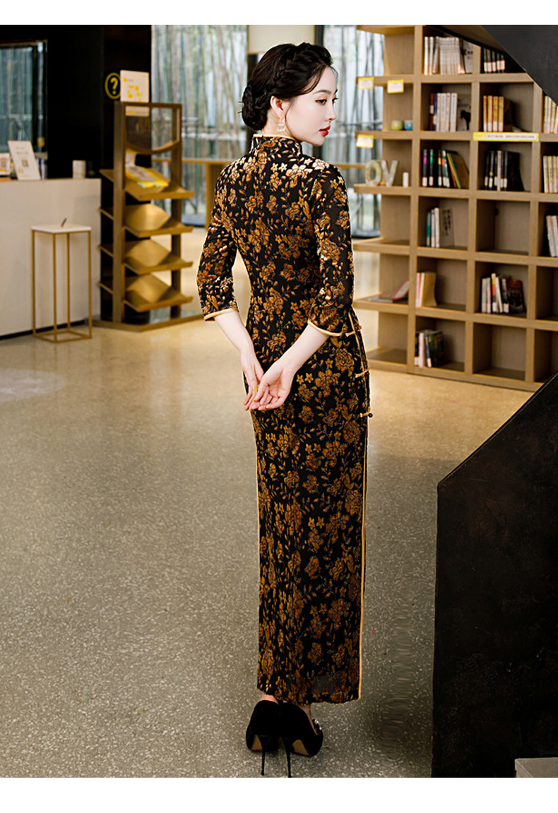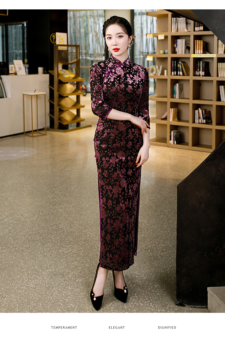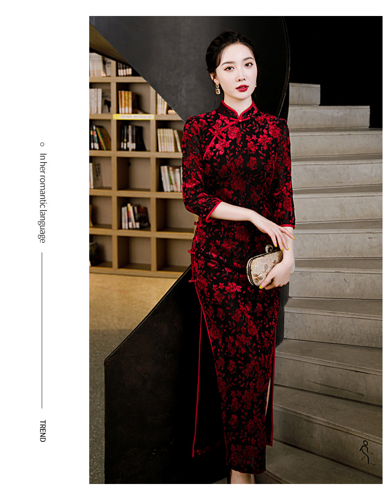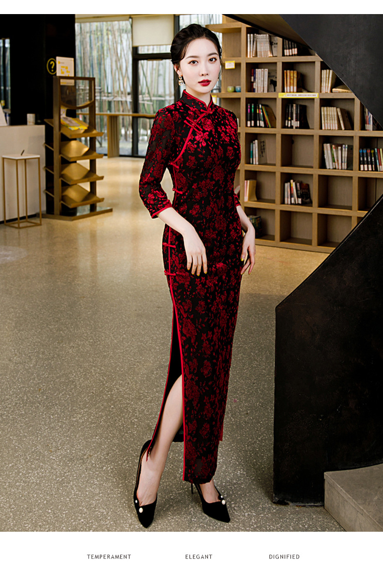 七分袖复古修身立领时尚斜襟旗袍宴会改良旗袍CX-0607