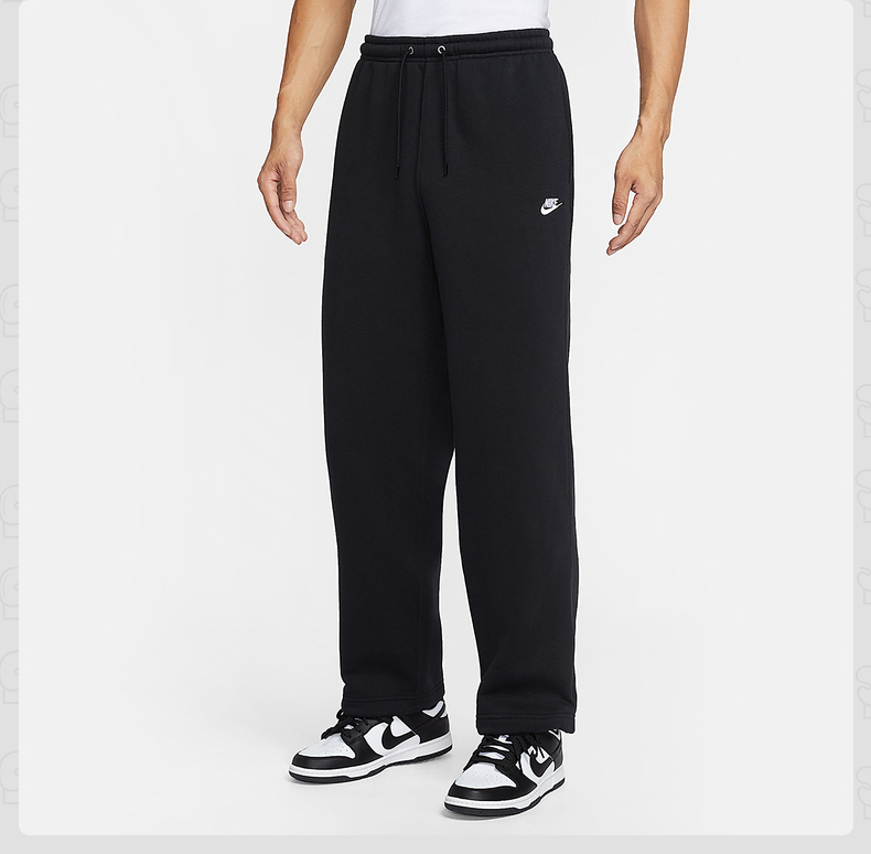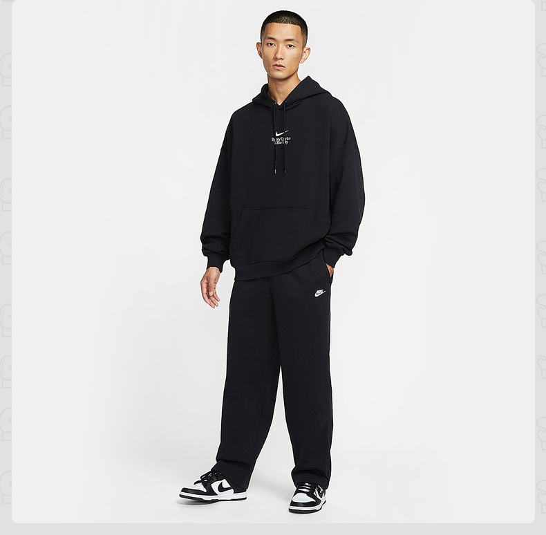NIKE耐克男子加绒直筒裤25冬新款休闲刺绣黑色针织长裤IF0489-010