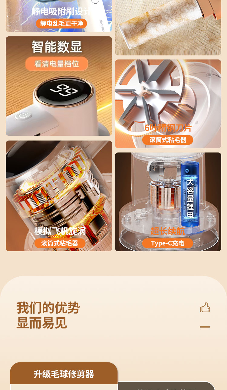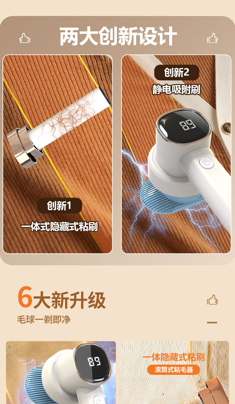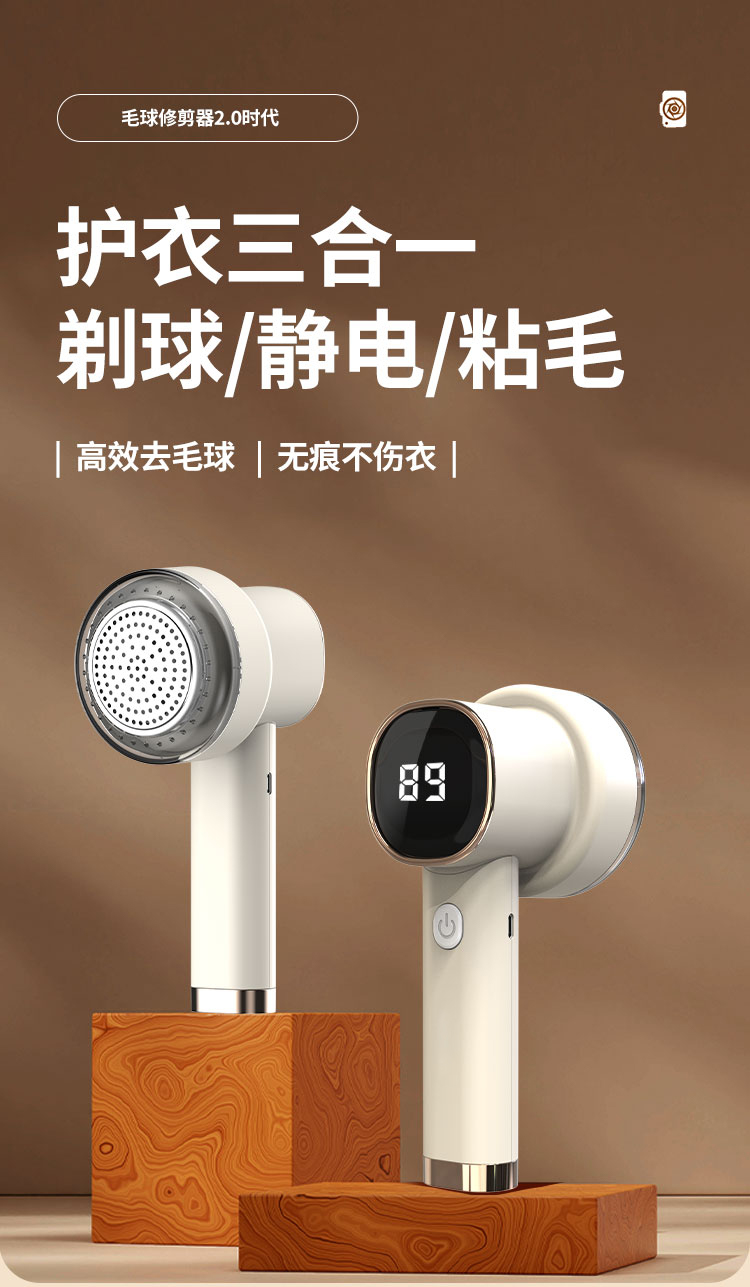 BYOUNGER毛球修剪器 一机多用 智能数显 三档调节 6叶精钢刀头 使用多种面料
