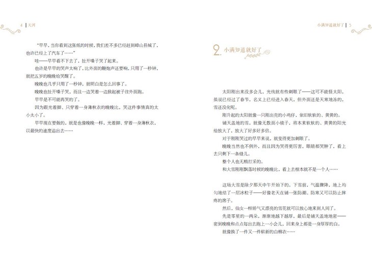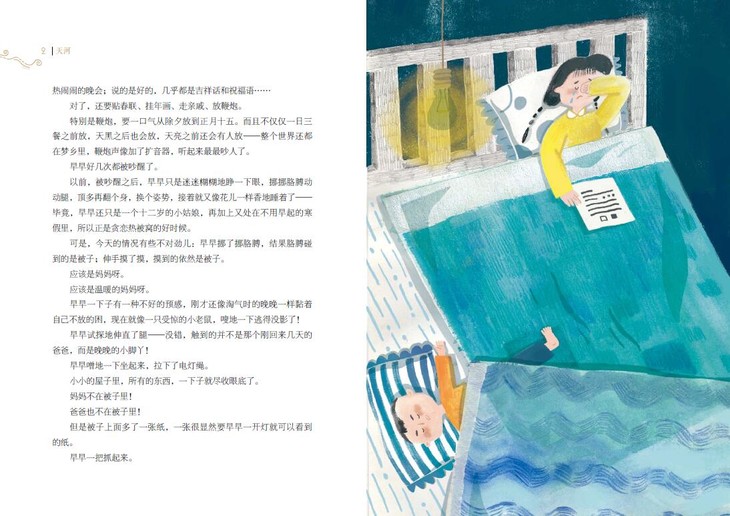 《天河》是胡继风继《鸟背上的故乡》《就像一株野蔷薇》之后创作的又一关注留守儿童生存状态的长篇力作。小说以一株小楝树为明线,以女孩早早在父母双双离开之后的生活和情感变化为暗线,讲述了一年之间发生在一个留守女童、以及一群留守儿童身上的许多鲜活而真实的故事。通过这些鲜活而真实的故事,我们看到的是当下中国农村千千万万留守儿童的生存现状和精神世界。作品反映的虽然是一个比较沉重的社会问题,但是基调明朗,色彩温暖,文字细腻有趣,充满爱和向上的力量。