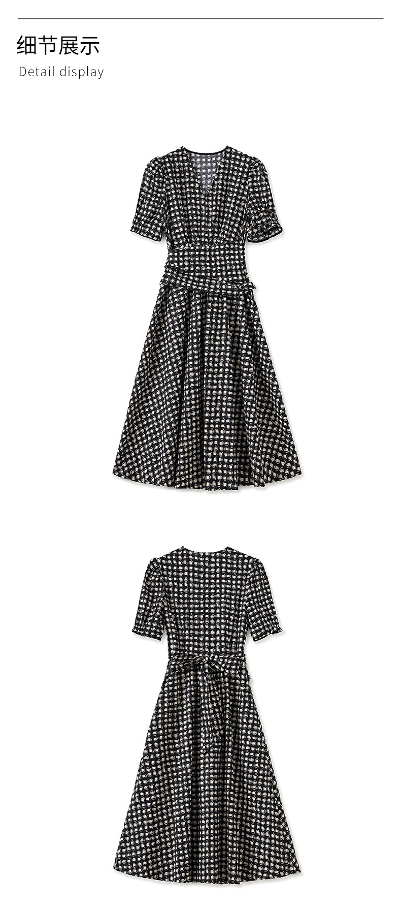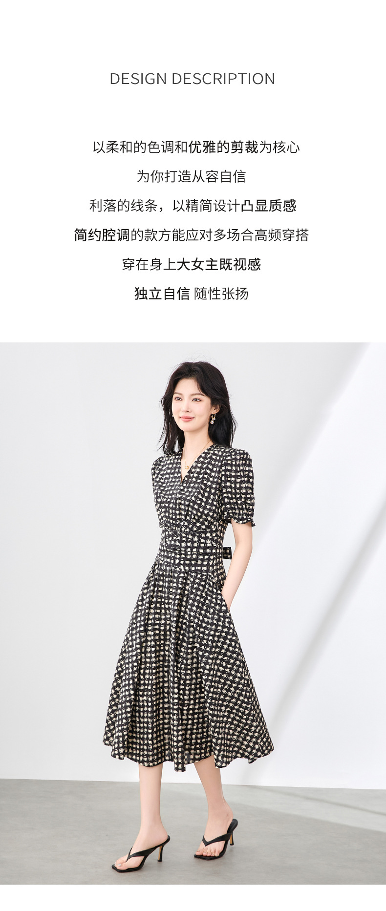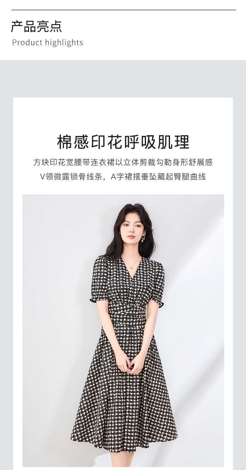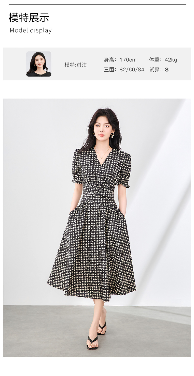 「高货wl」全新升级【铂金会员330/天猫439/差价109】(31708)洛诗琳法式通勤格子印花连衣裙2025夏季V领收腰A字长裙女wl31708