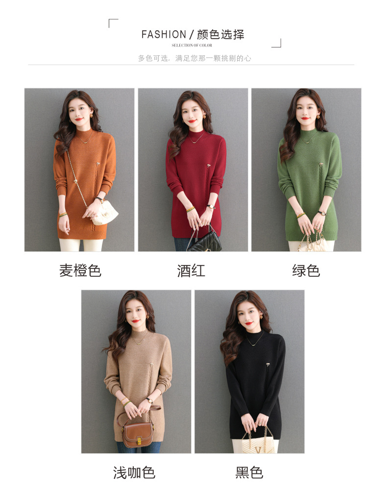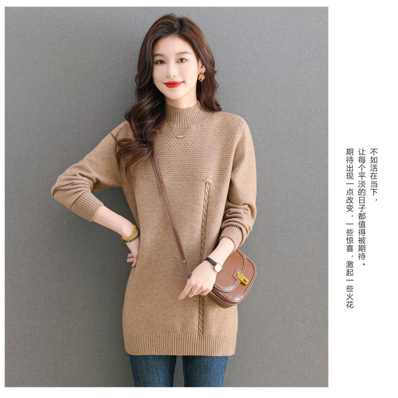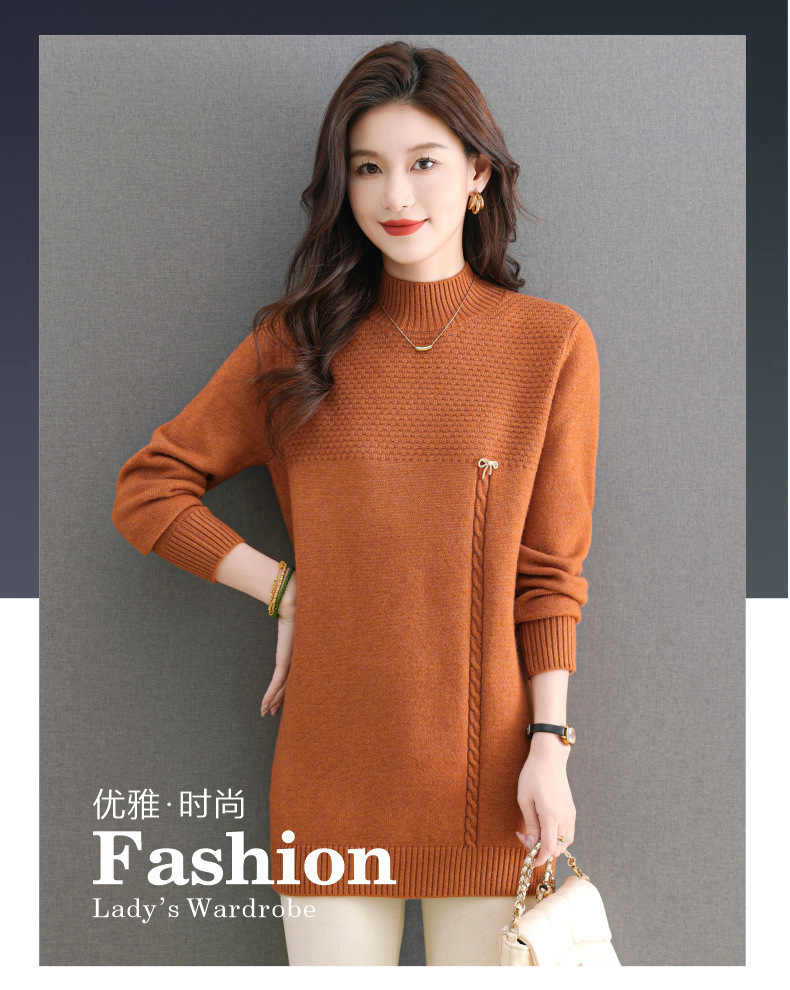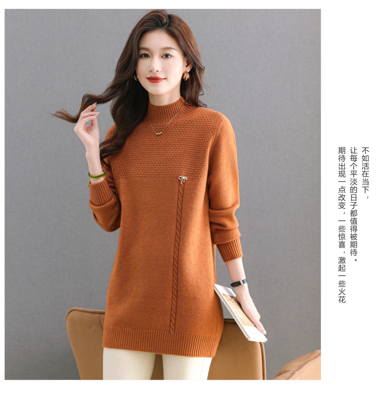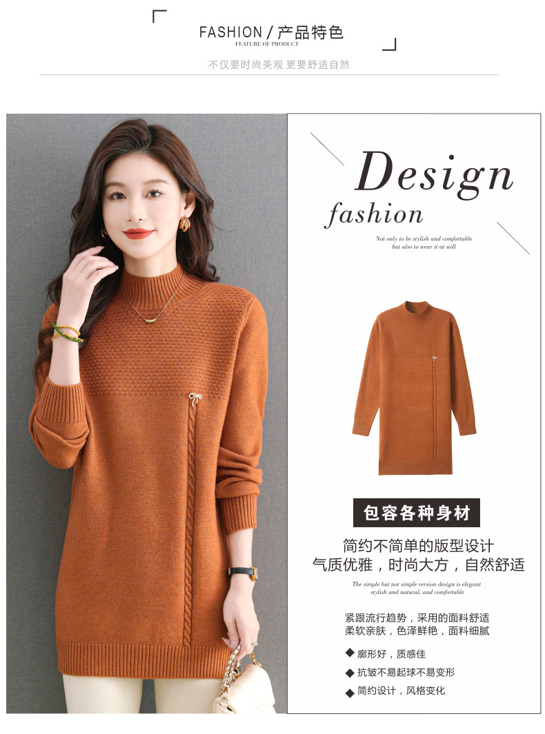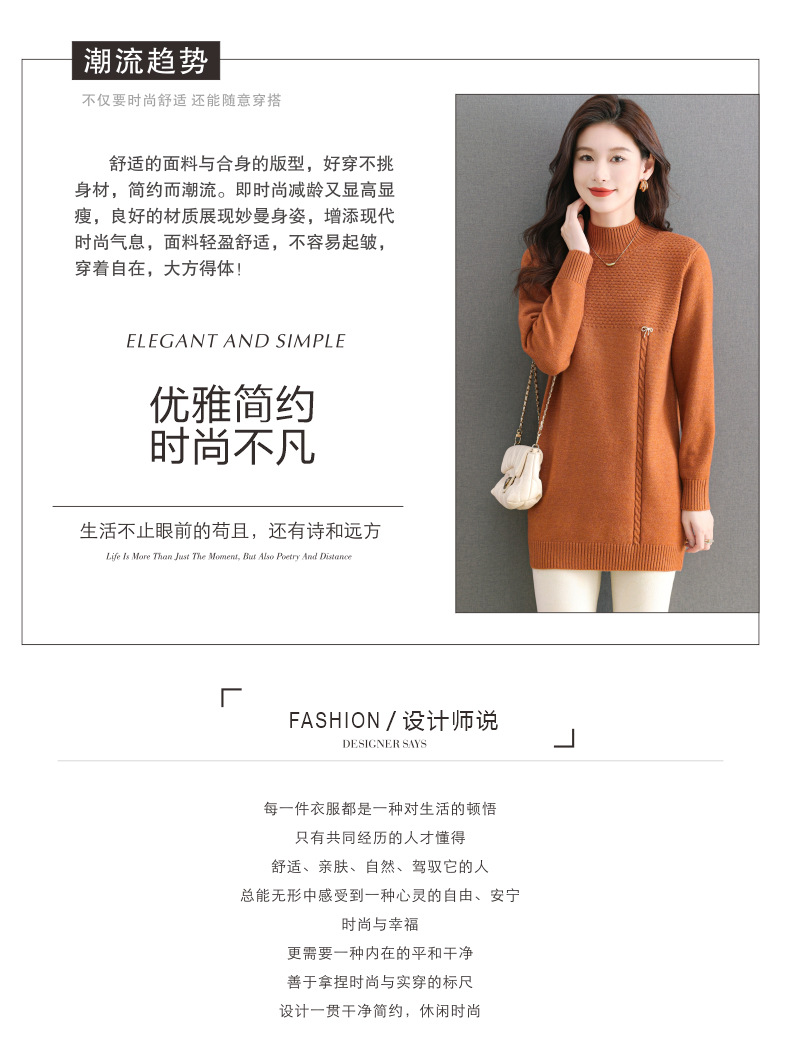 CC中长款宽松套头打底衫厚款秋冬季外穿半高领中年妈妈装女士毛衣裙