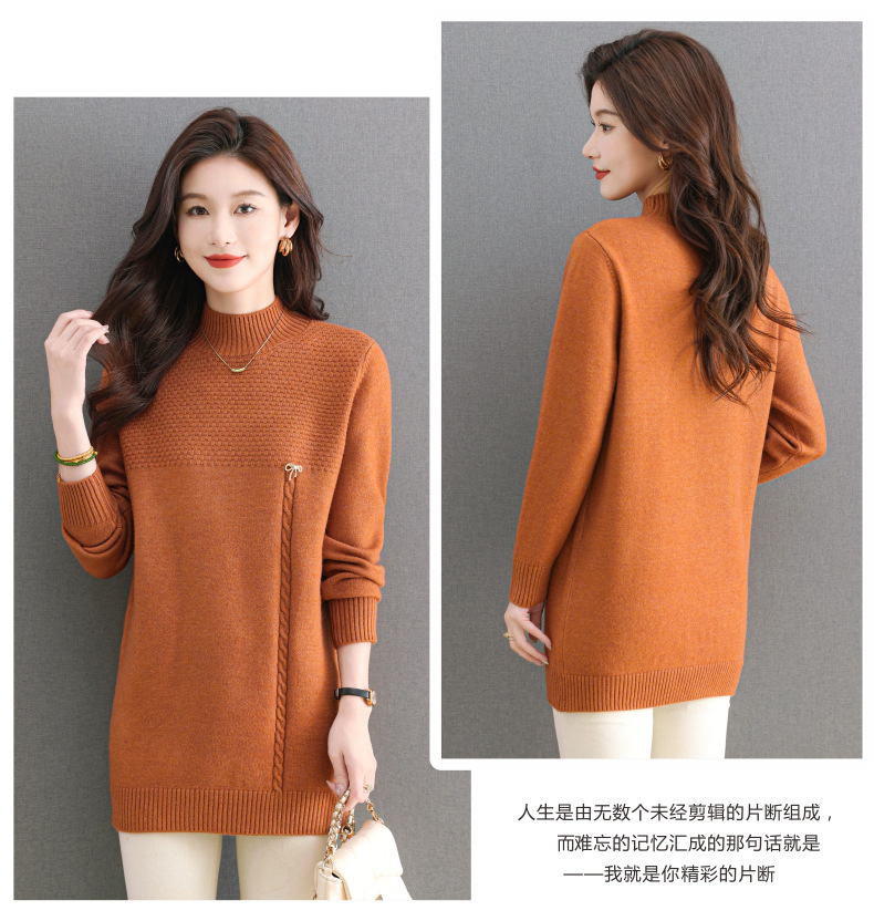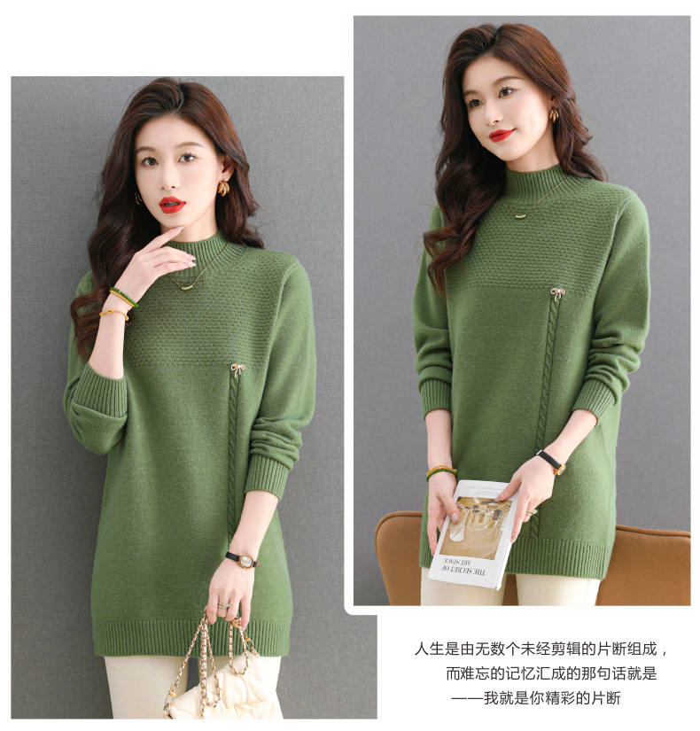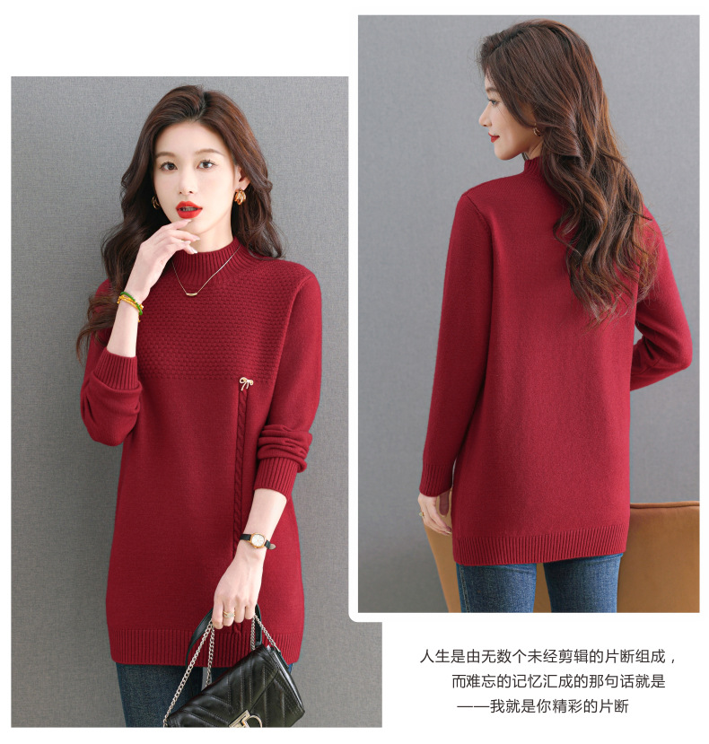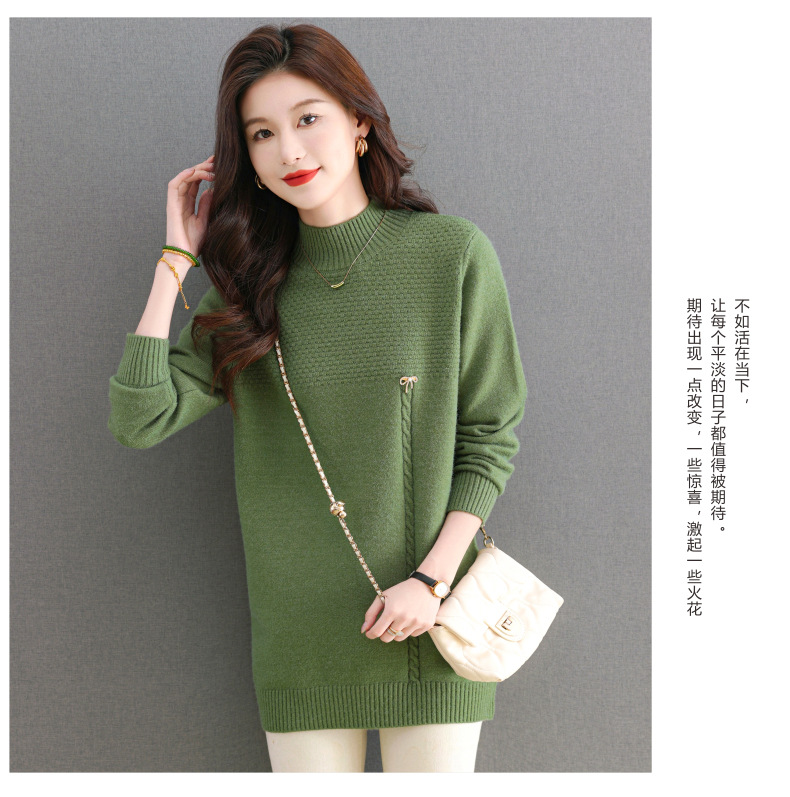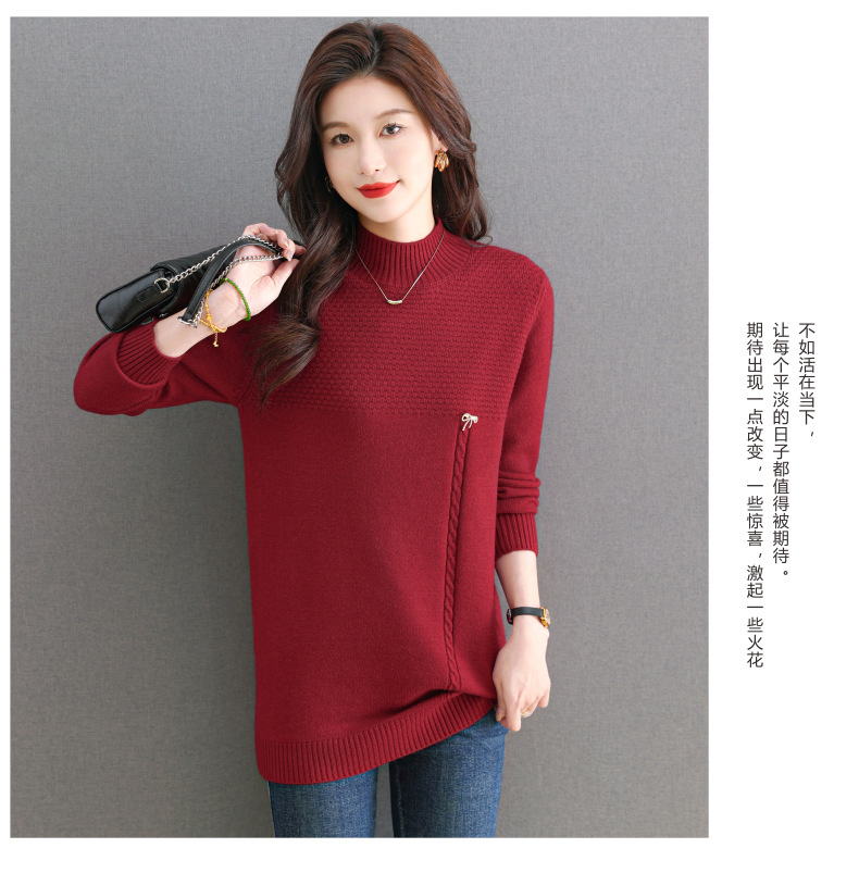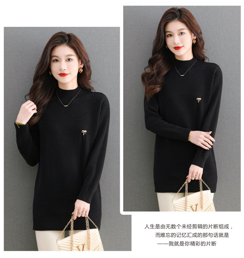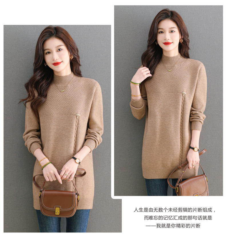CC中长款宽松套头打底衫厚款秋冬季外穿半高领中年妈妈装女士毛衣裙