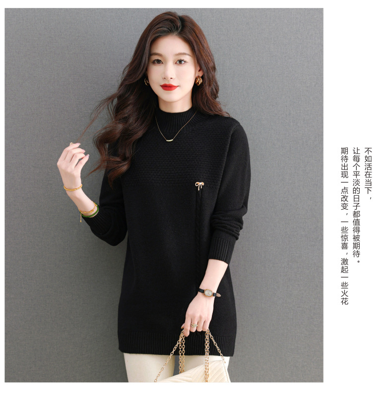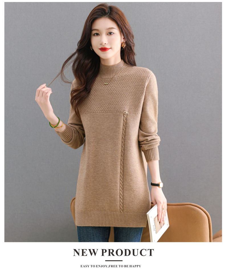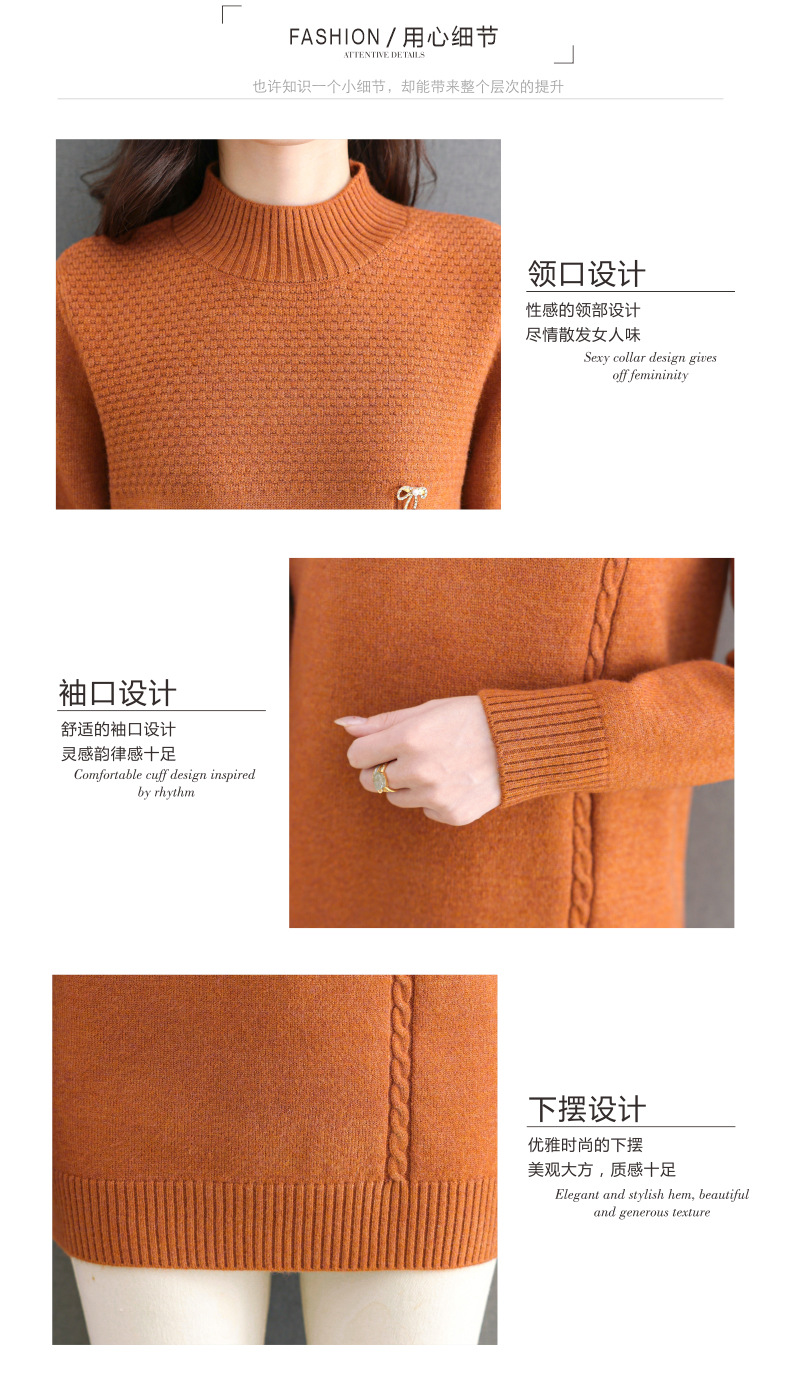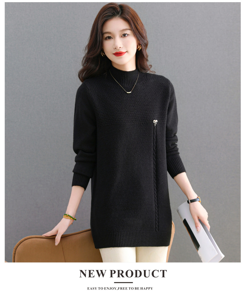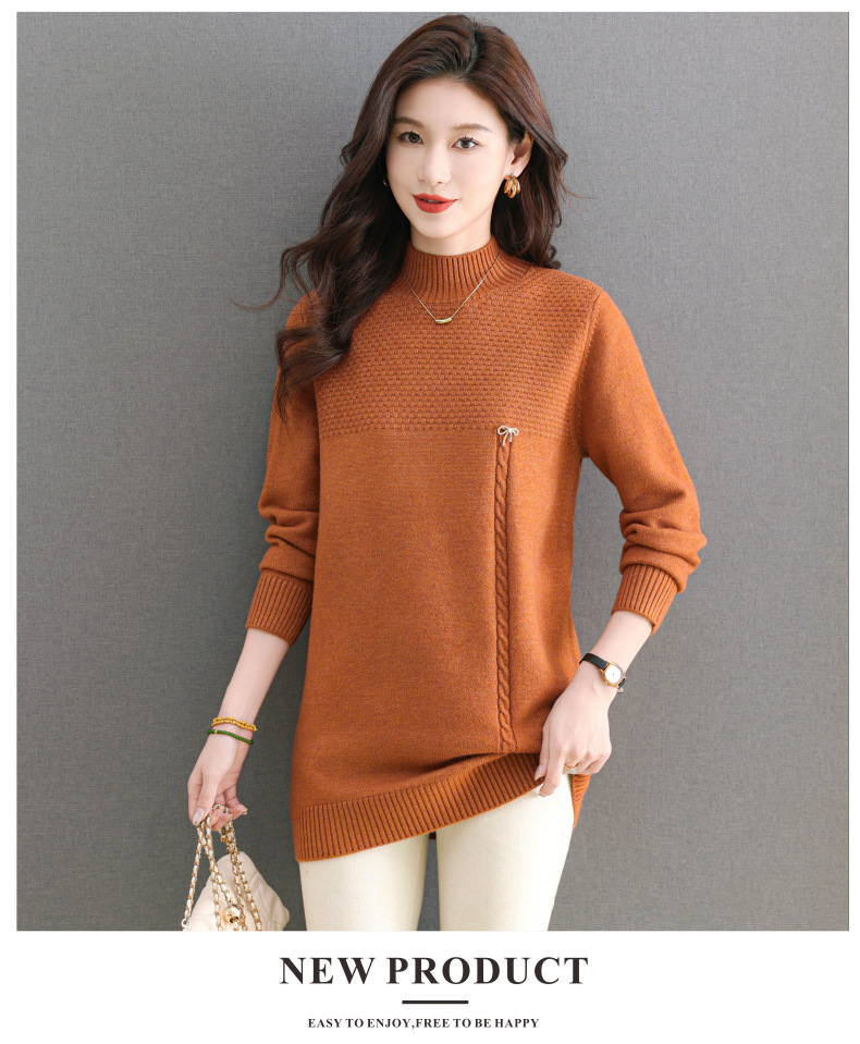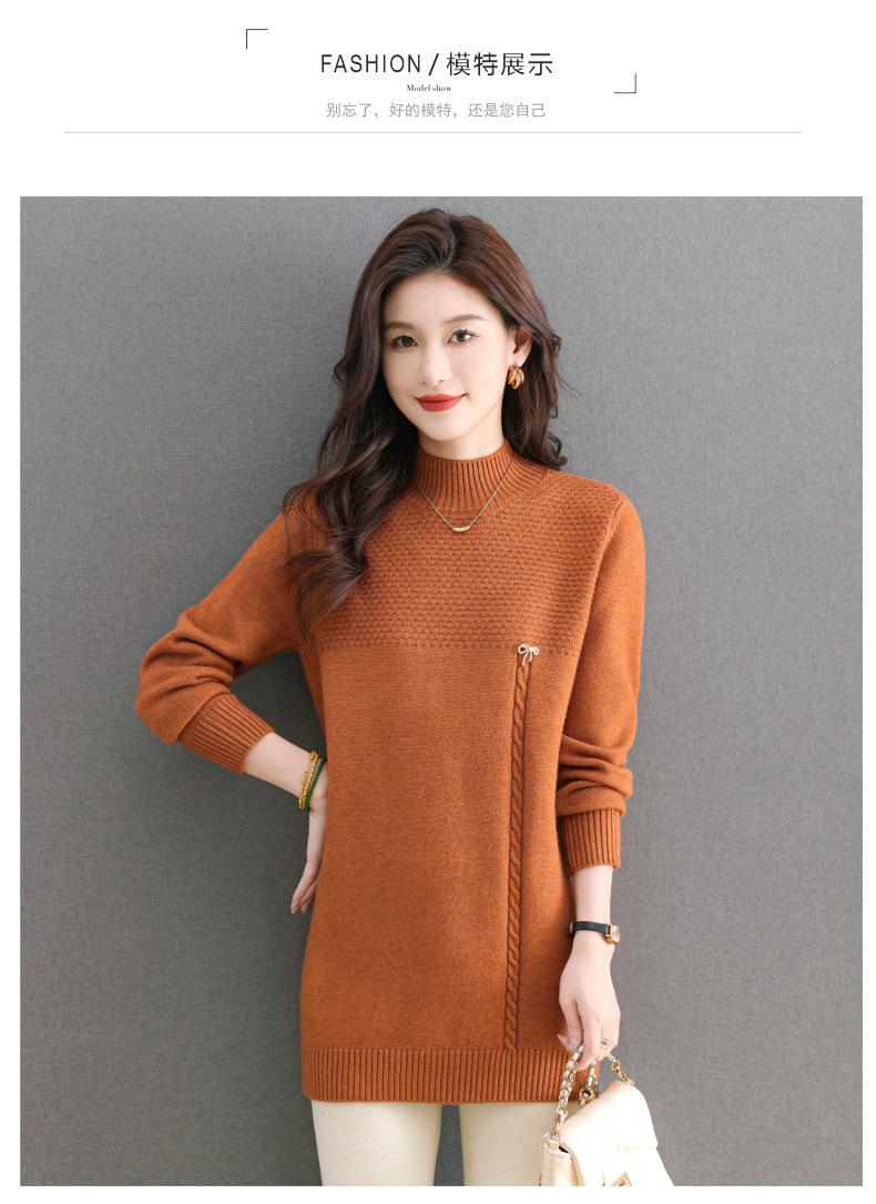 CC中长款宽松套头打底衫厚款秋冬季外穿半高领中年妈妈装女士毛衣裙