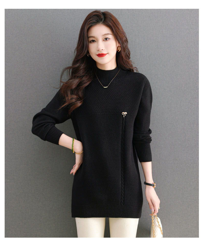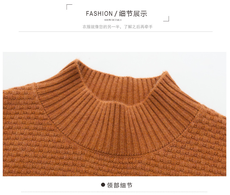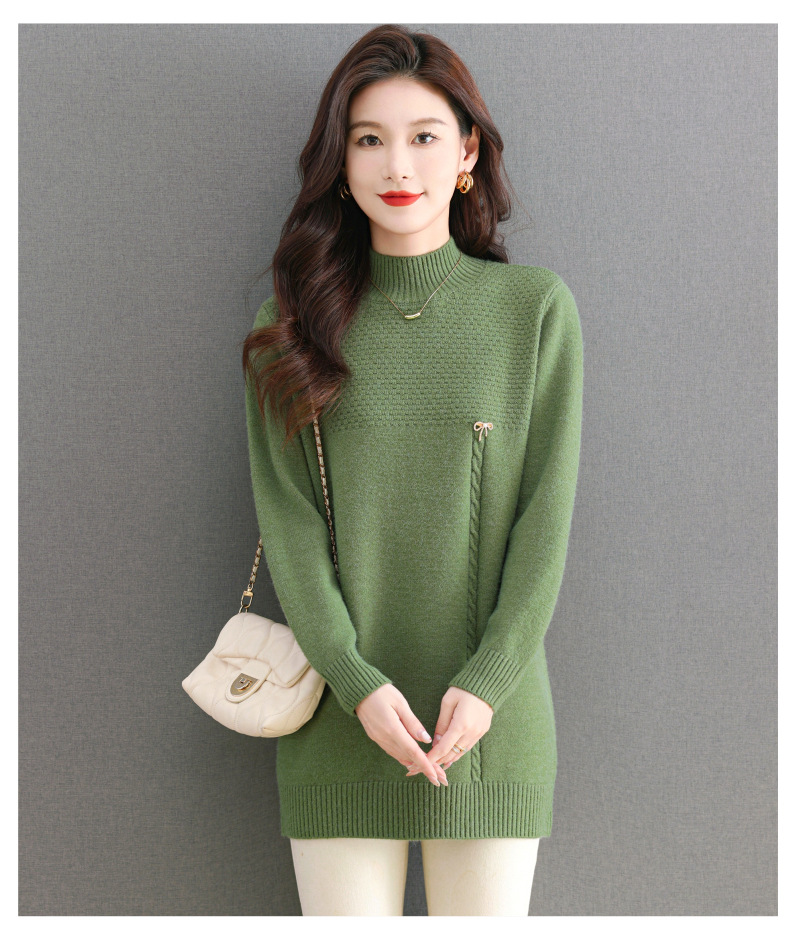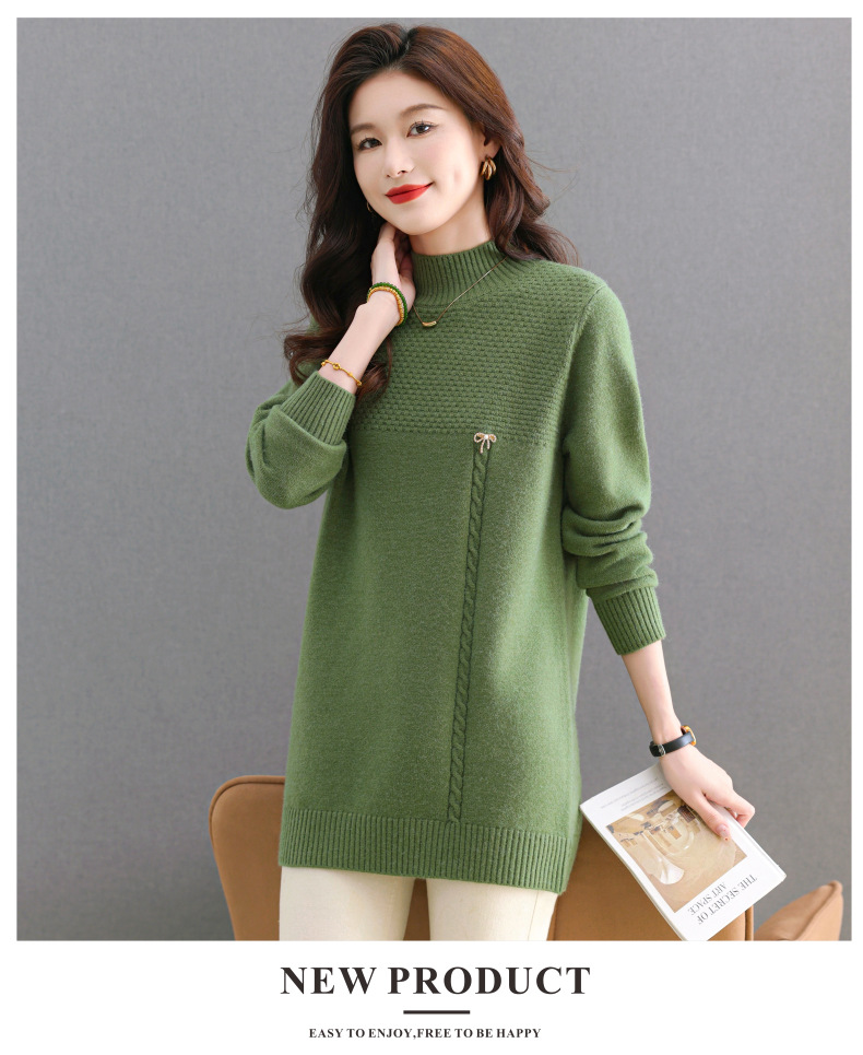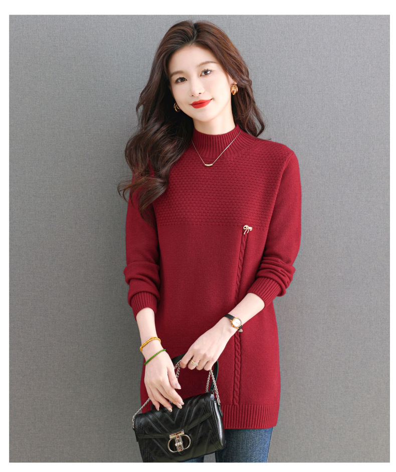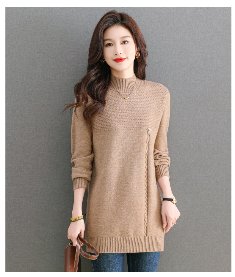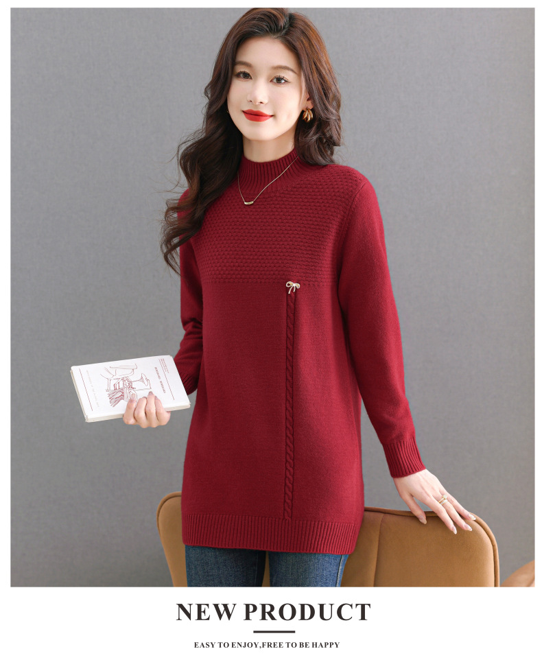 CC中长款宽松套头打底衫厚款秋冬季外穿半高领中年妈妈装女士毛衣裙