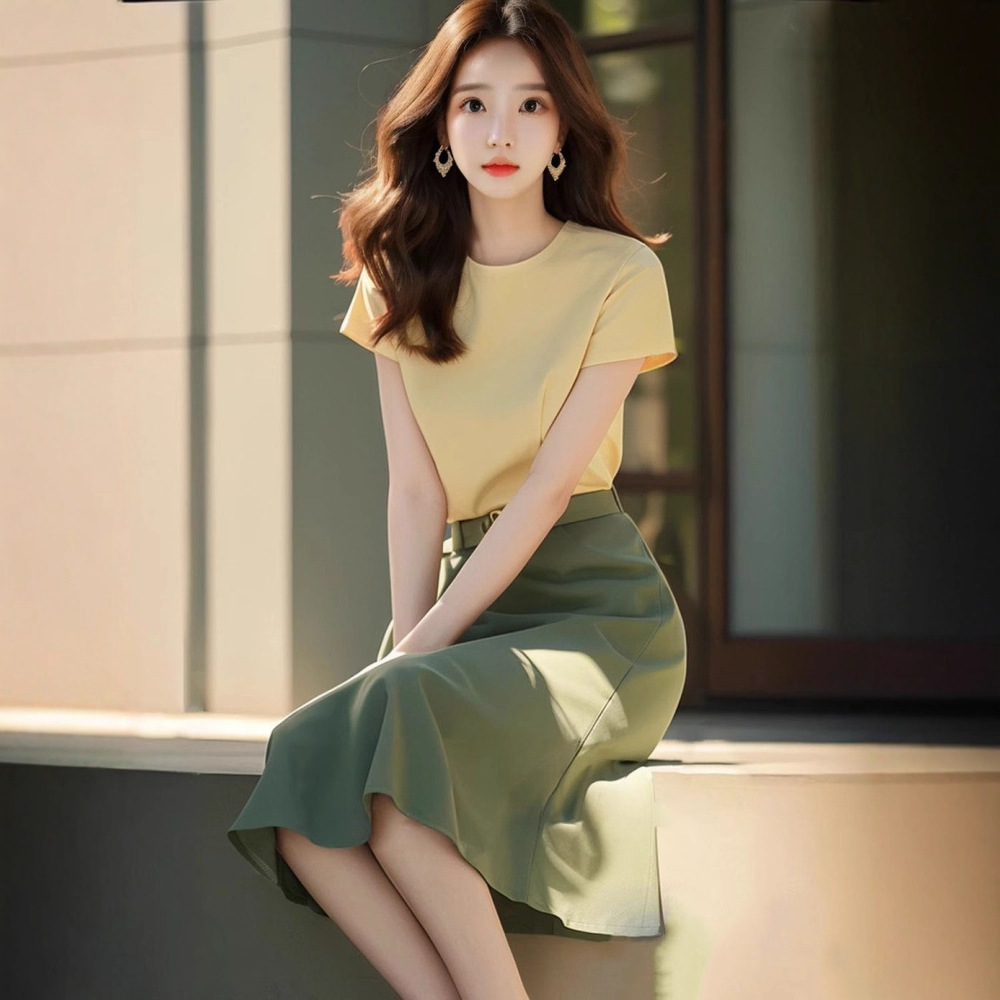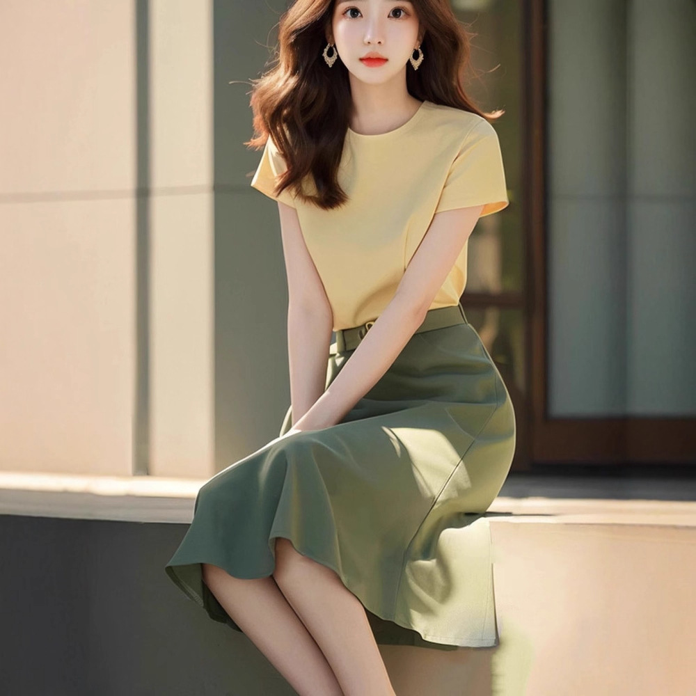 减龄夏季搭配一整套时尚短袖半身裙两件套装女