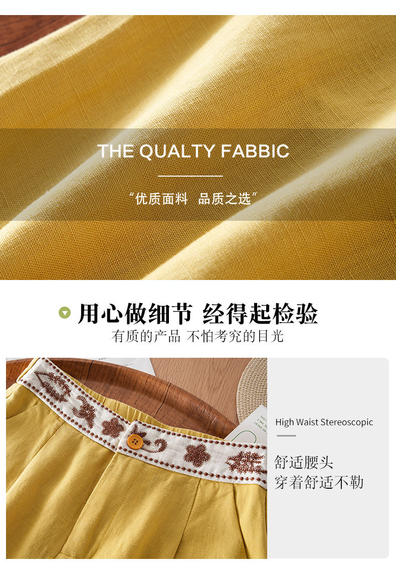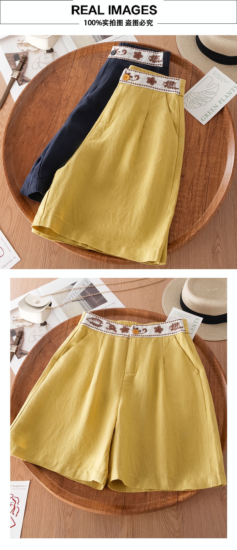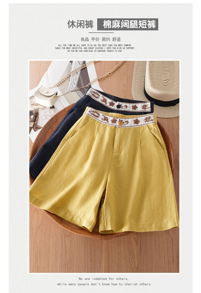 「自」全新升级【铂金会员146/天猫199/差价53】(70952)洛诗琳天丝亚麻五分裤2025夏季刺绣高腰休闲阔腿短裤女