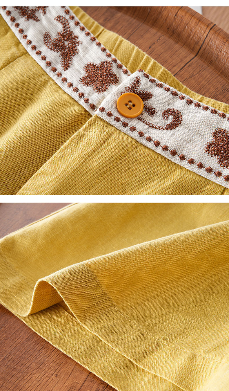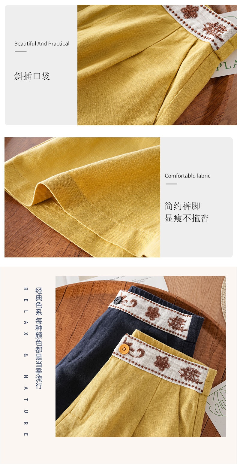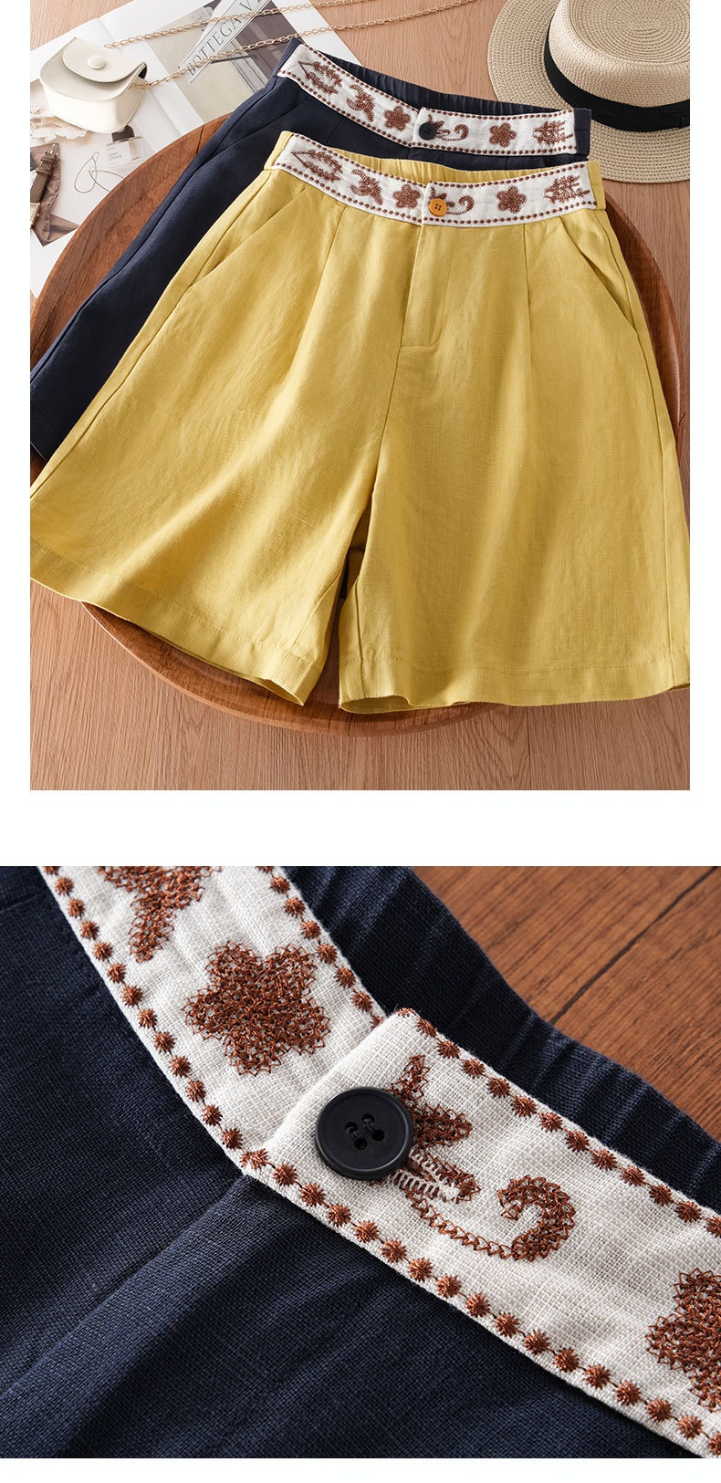 「自」全新升级【铂金会员146/天猫199/差价53】(70952)洛诗琳天丝亚麻五分裤2025夏季刺绣高腰休闲阔腿短裤女