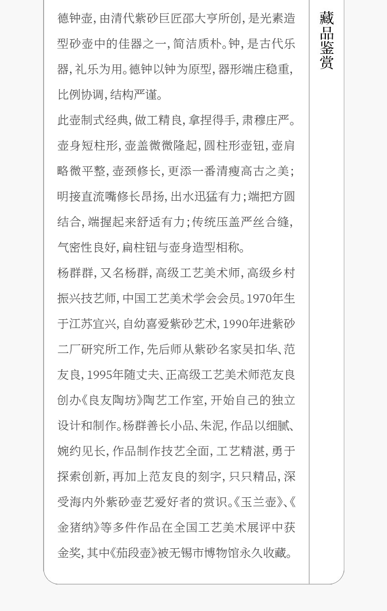 《德钟壶》 杨群群 高级工艺美术师、工艺美术学会会员、省工艺美术学会会员