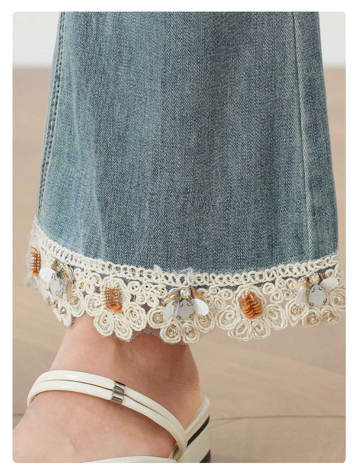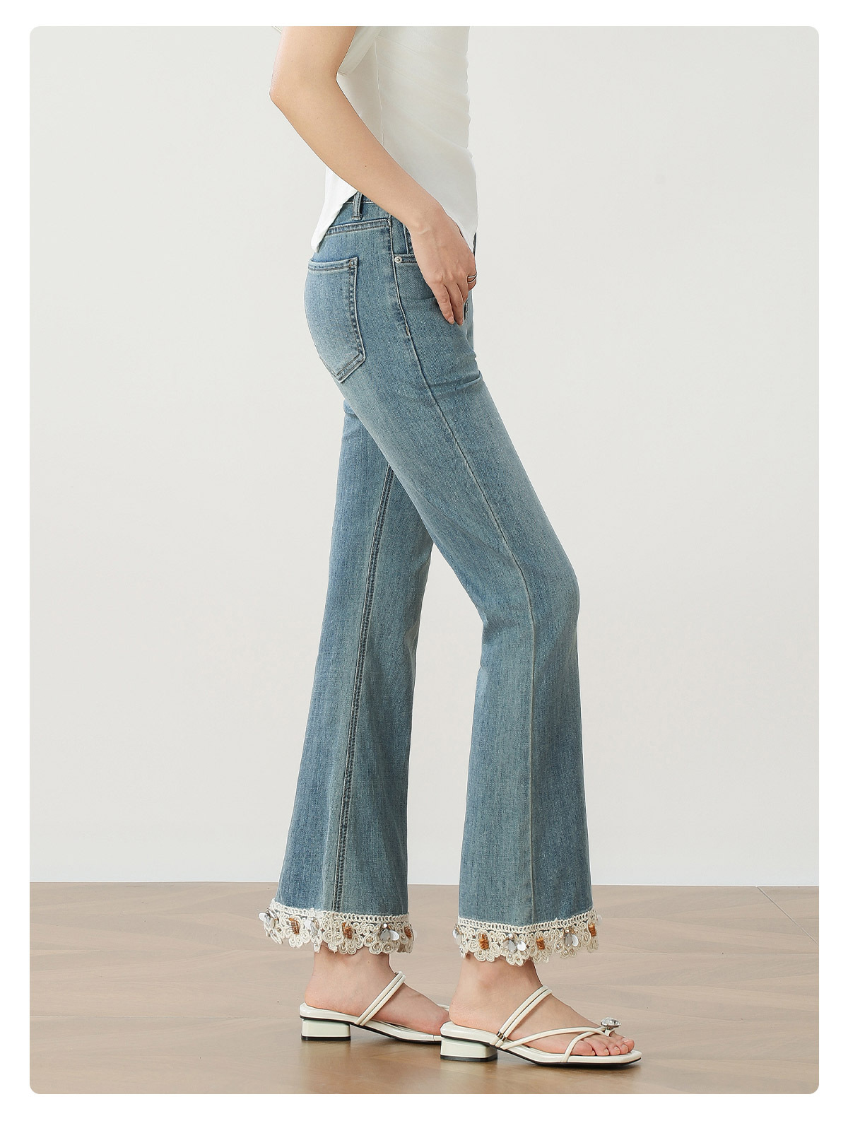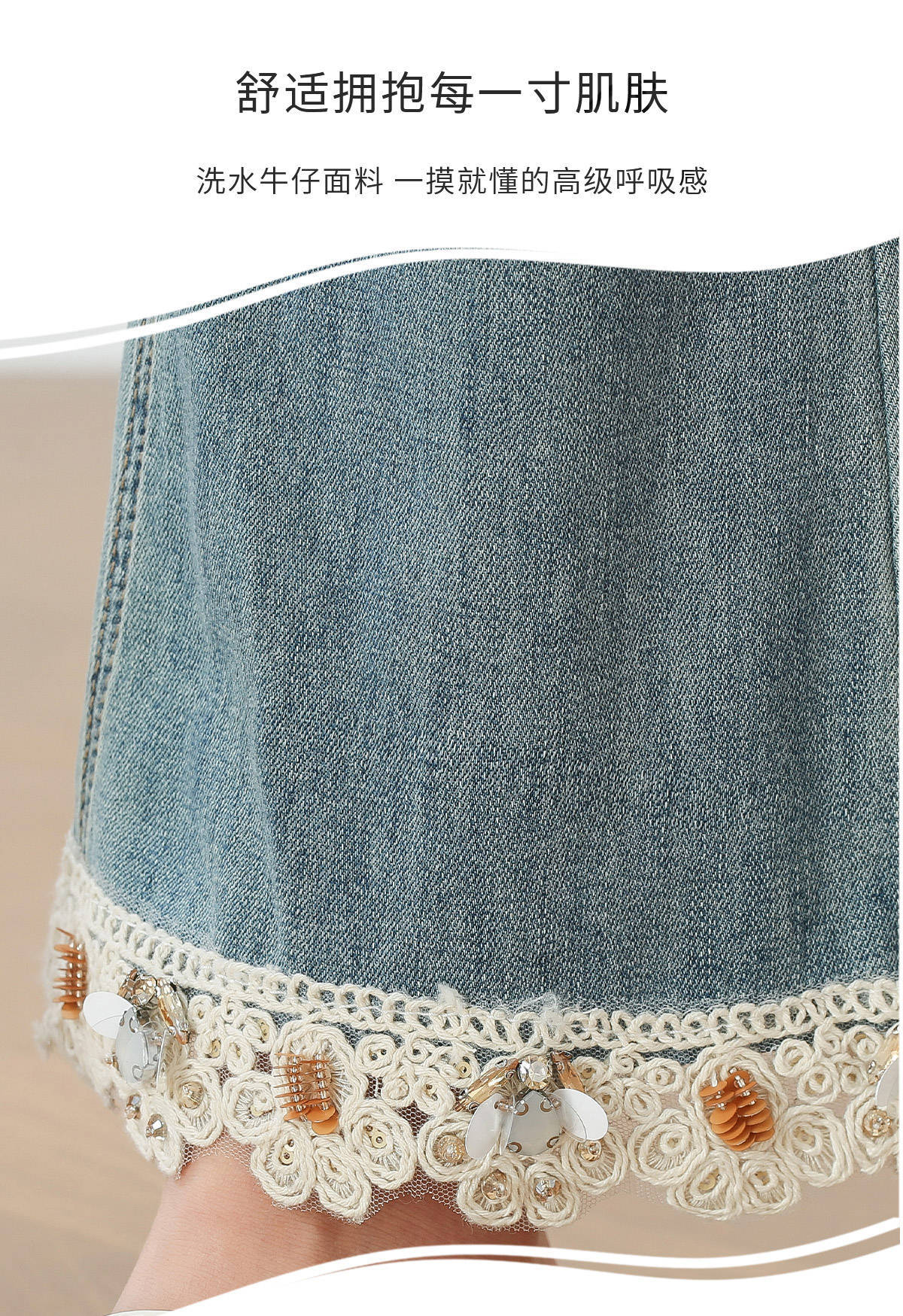 「自」全新升级【铂金会员183/天猫239/差价56】(95644)洛诗琳民族风亮片拼接牛仔裤2025夏季高腰显瘦微喇九分裤