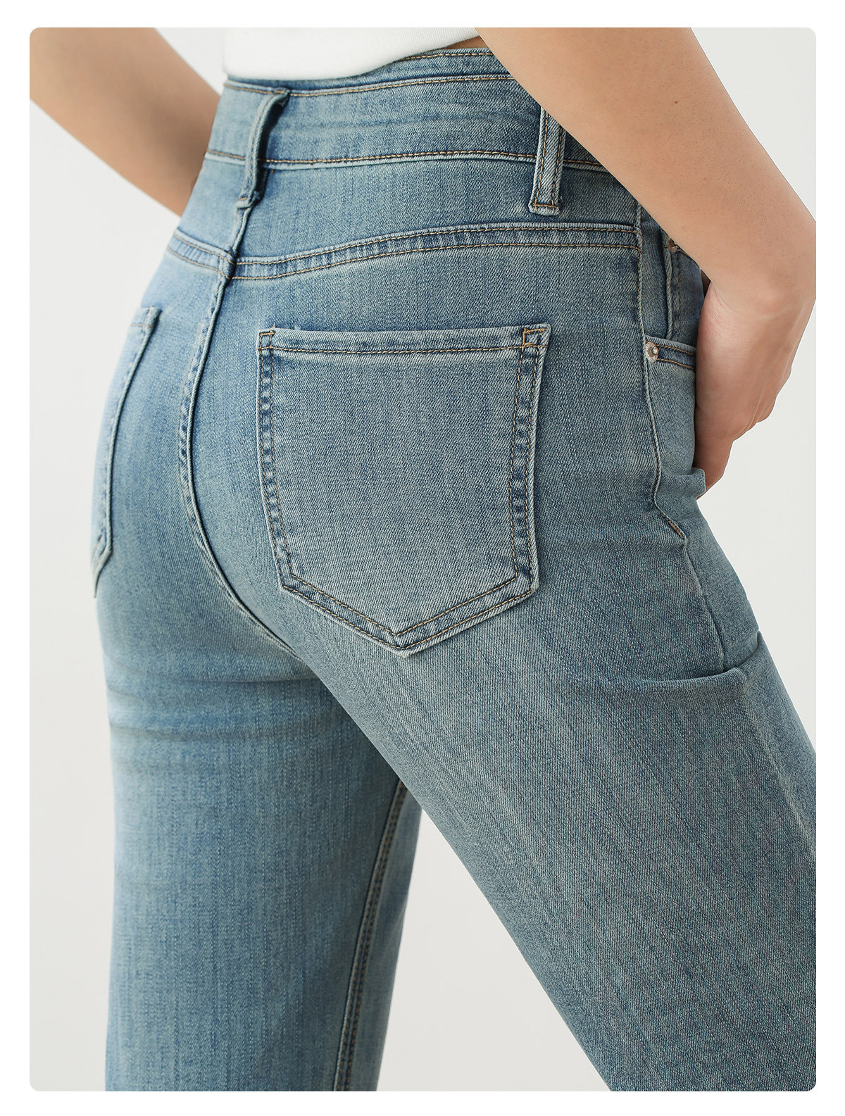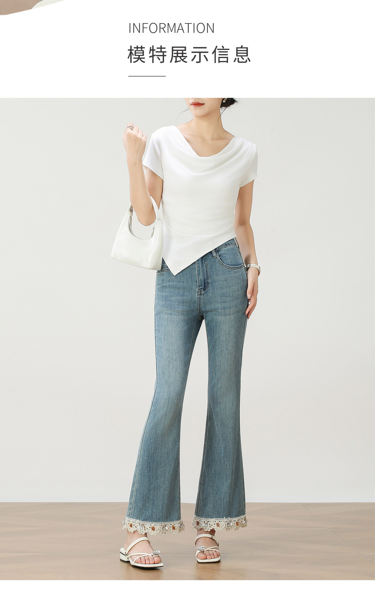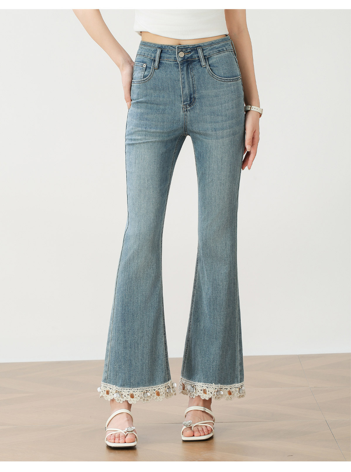 「自」全新升级【铂金会员183/天猫239/差价56】(95644)洛诗琳民族风亮片拼接牛仔裤2025夏季高腰显瘦微喇九分裤