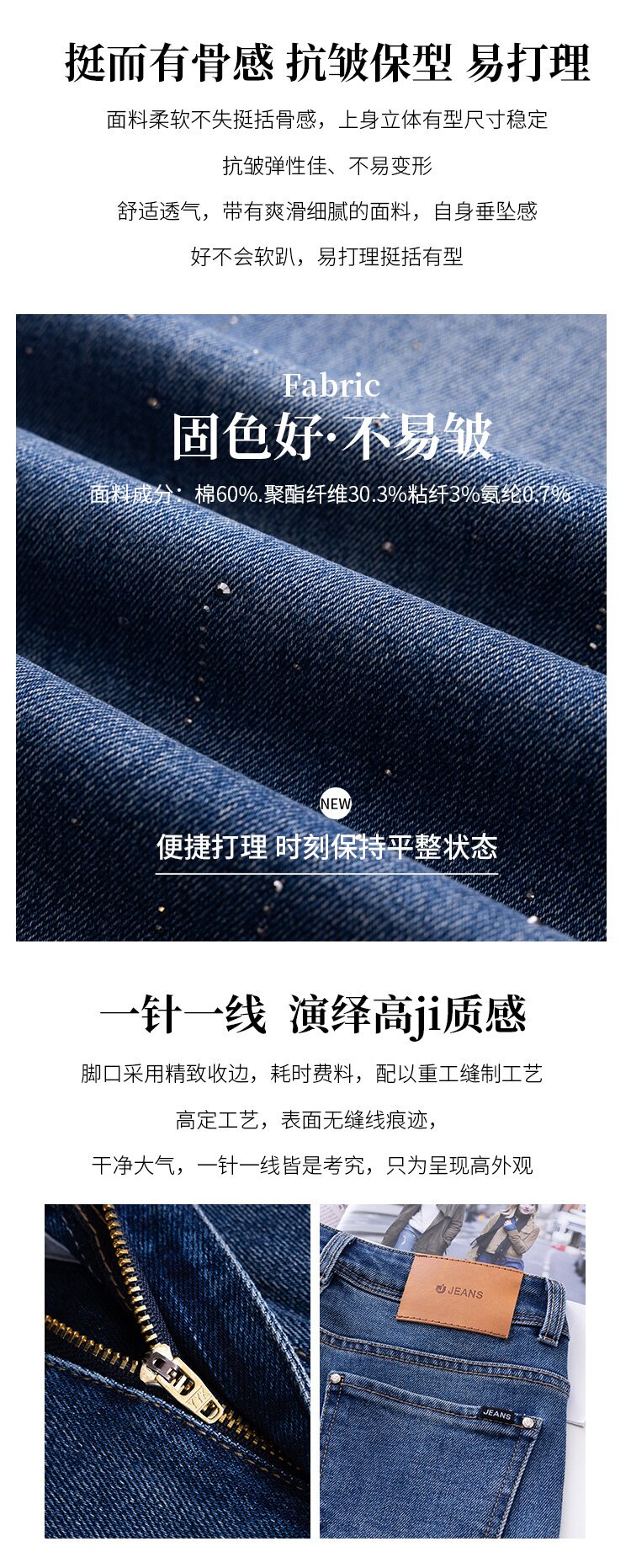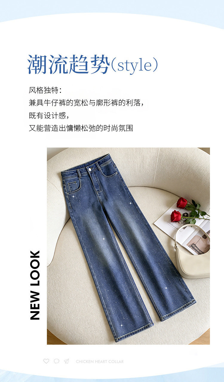 「自」全新升级【铂金会员165/天猫219/差价54】(03312)洛诗琳气质满天星烫钻牛仔裤2026春季新款高腰显瘦直筒裤