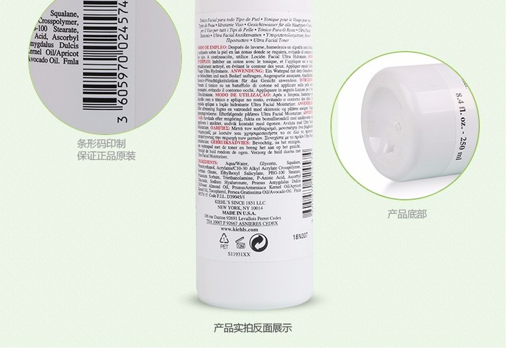 美国Kiehls科颜氏高保湿爽肤水250ml【香港直邮】