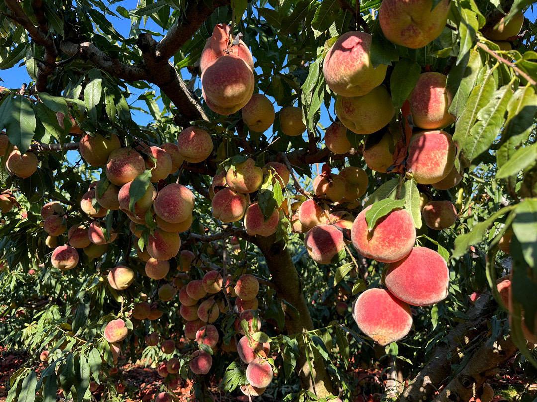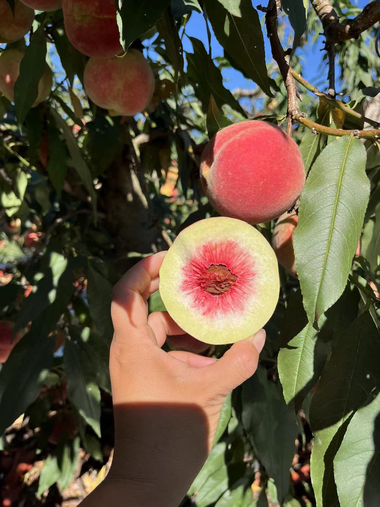冬桃从3月开花结果,到11月中下旬成熟,大半年的默默“积累”,再加上当地与冬桃生长极度契合的气候,造就了个大、核小、肉嫩、甘甜清脆的美名