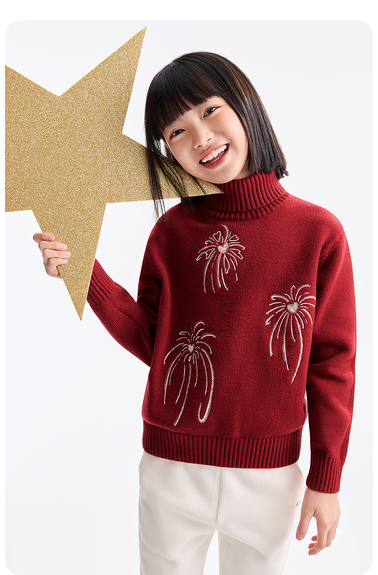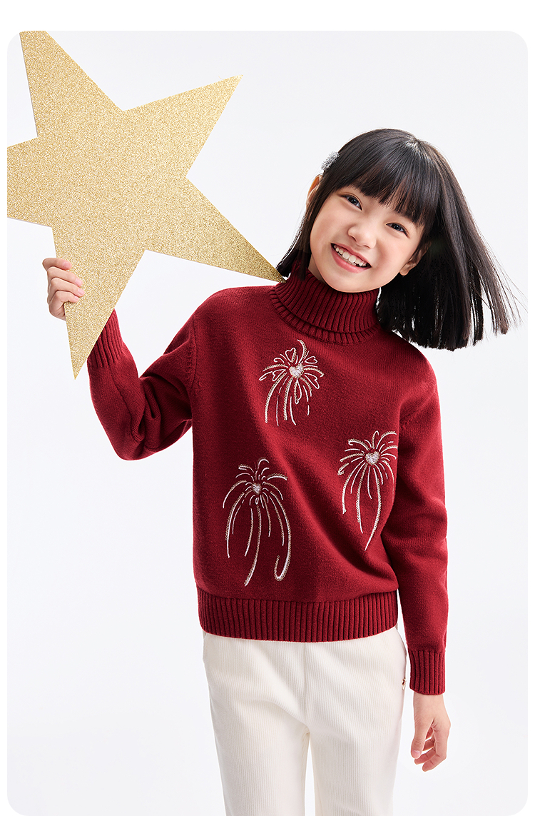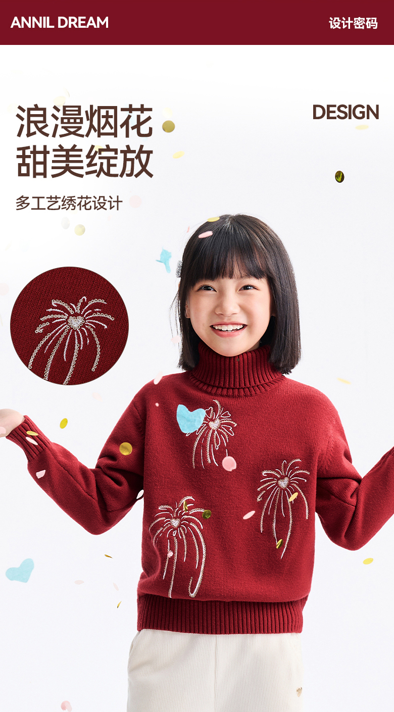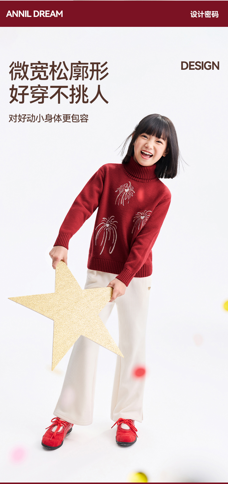 女童高翻领长袖针织衫冬季新款安奈儿童装EG544654