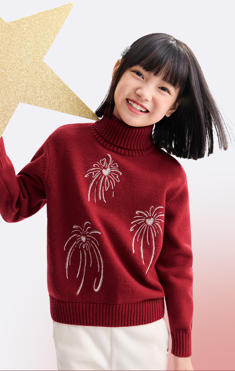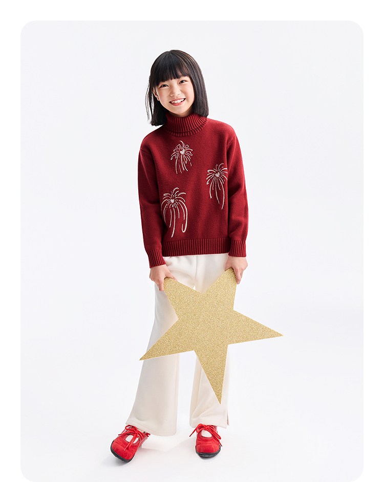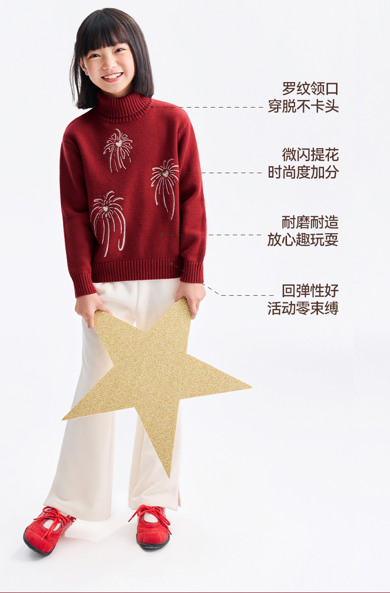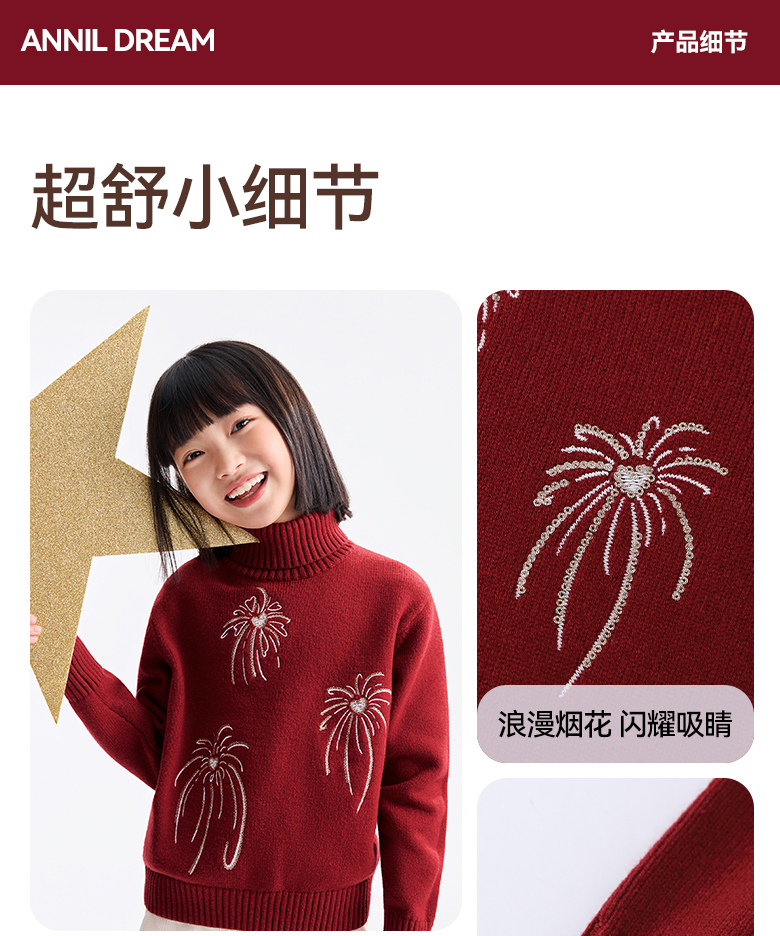 女童高翻领长袖针织衫冬季新款安奈儿童装EG544654