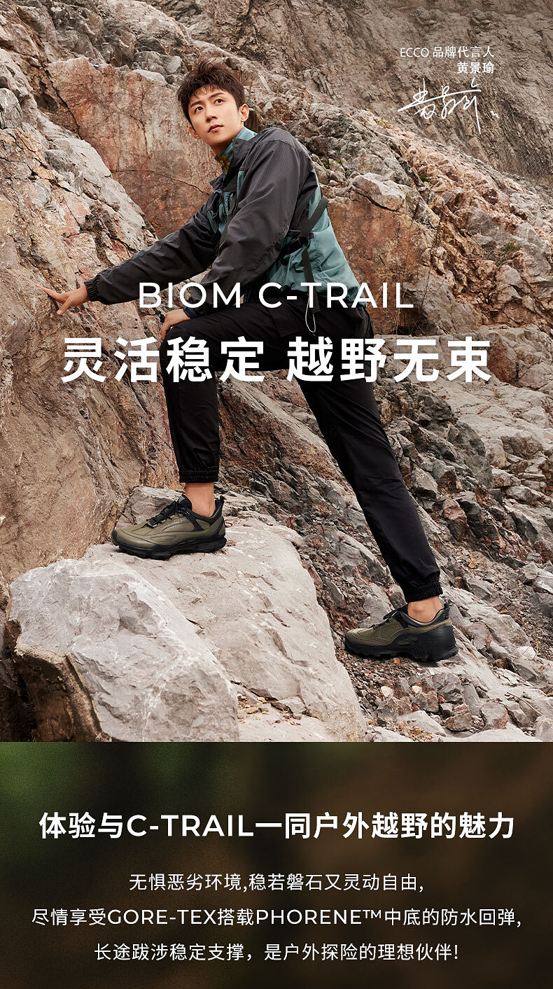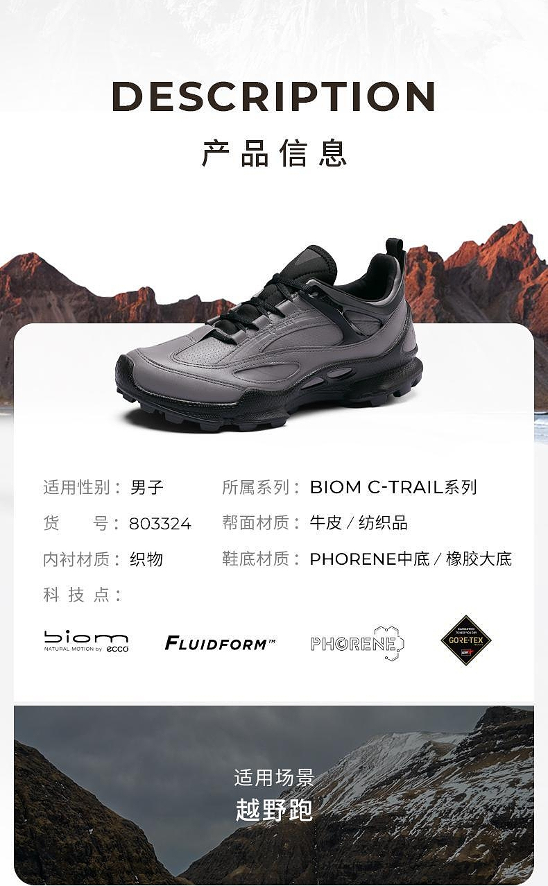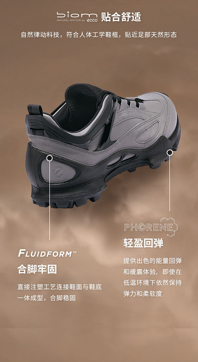 ECCO爱步 防水运动鞋男 皮面休闲鞋户外男鞋 健步BIOMC踪迹