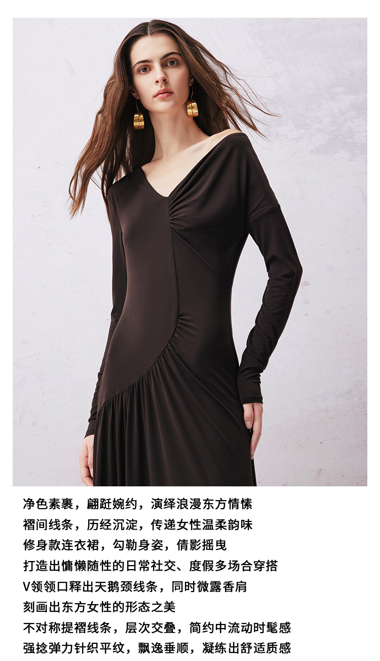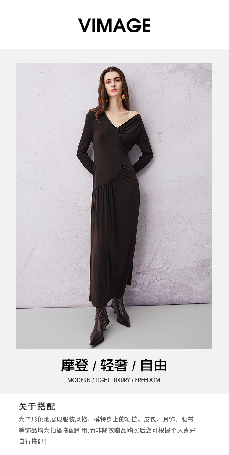 VIMAGE纬漫纪春季新款设计感小众法式复古气质修身连衣裙V2177705