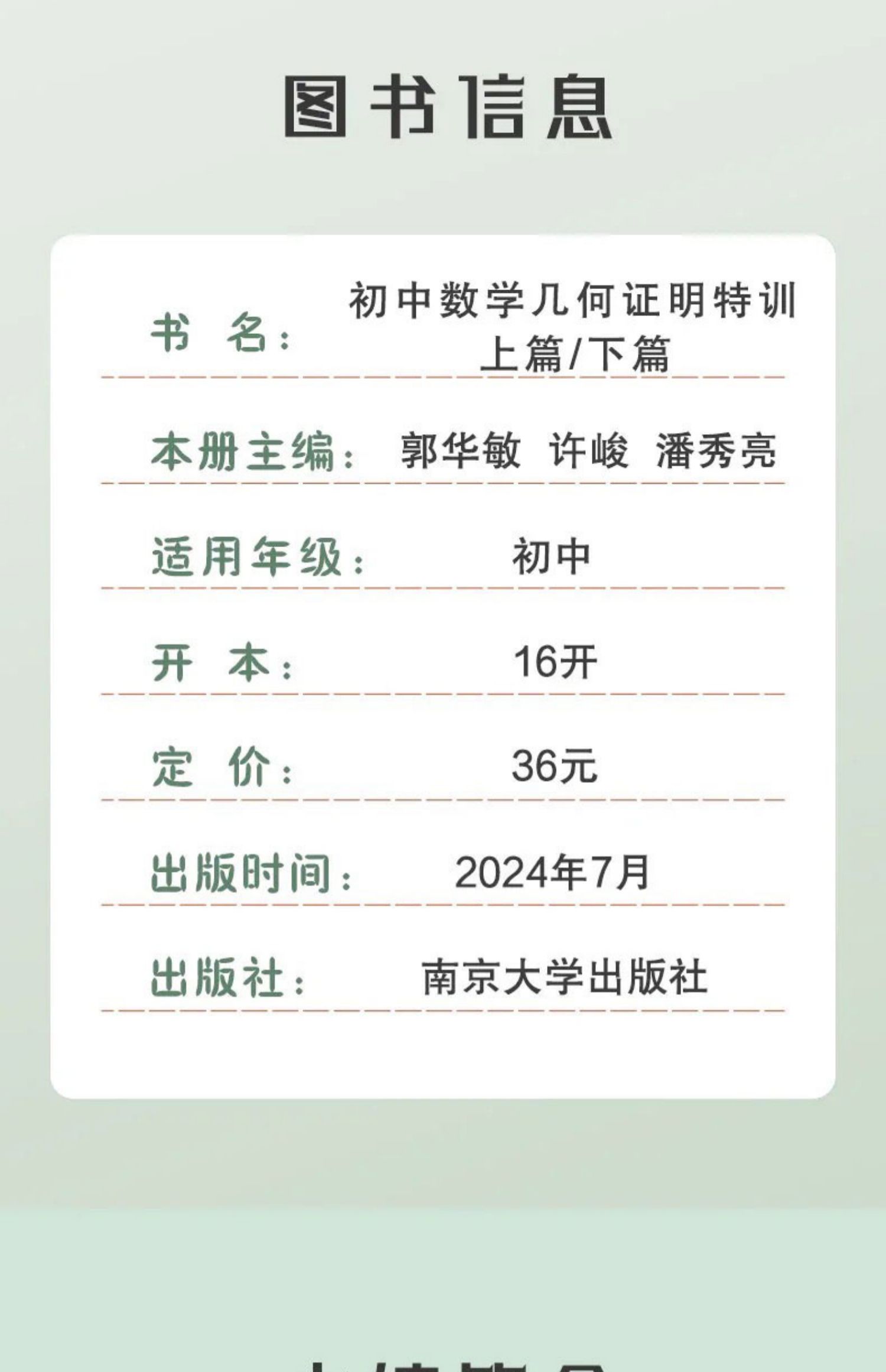南大励学 初中数学几何证明特训 上下篇任选 789年级教辅 中学教辅 主编 郭华敏 许峻 潘秀亮 南京大学出版社 ND