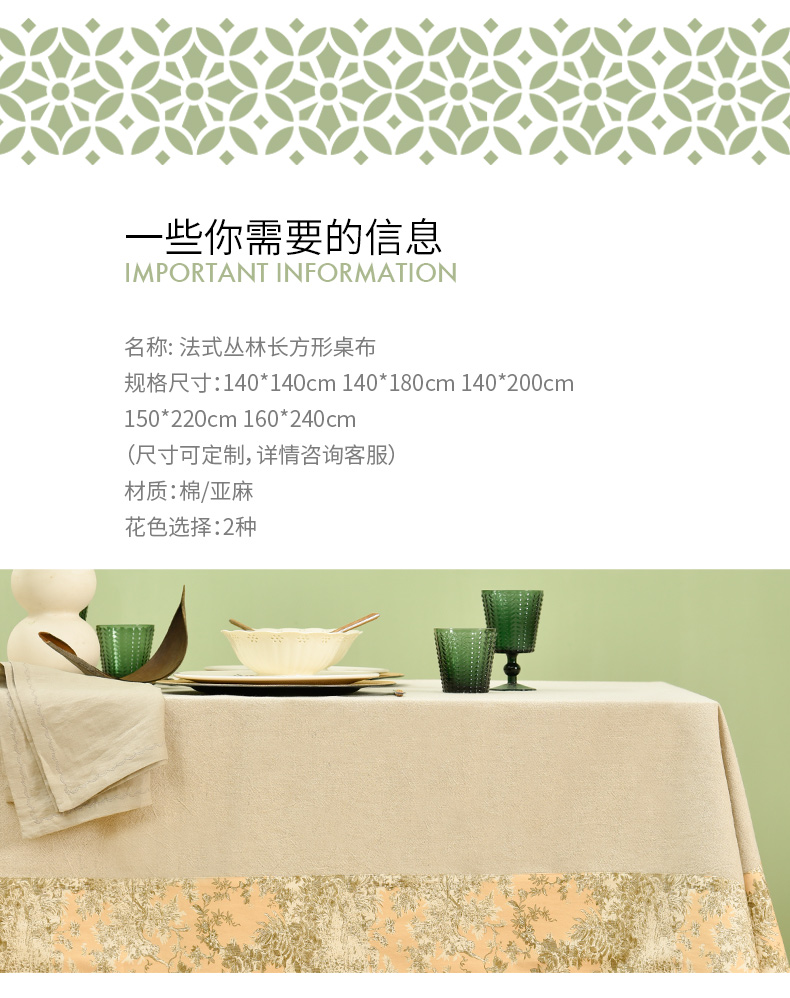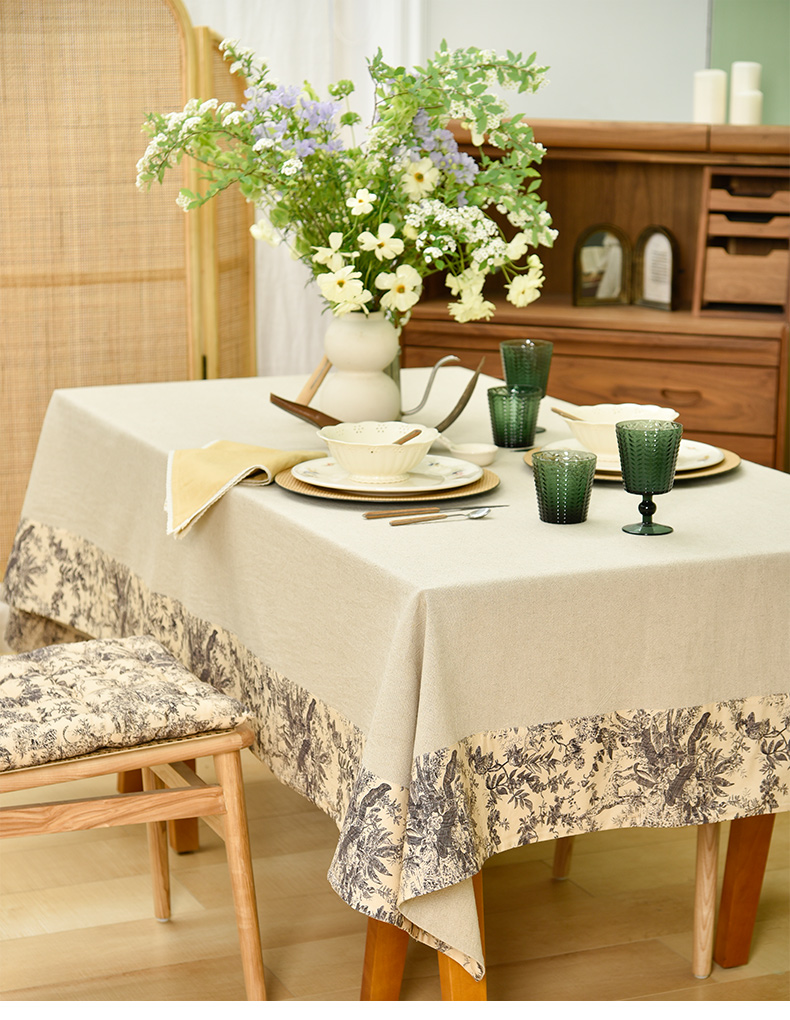 法式丛林线描桌布棉麻餐桌布
