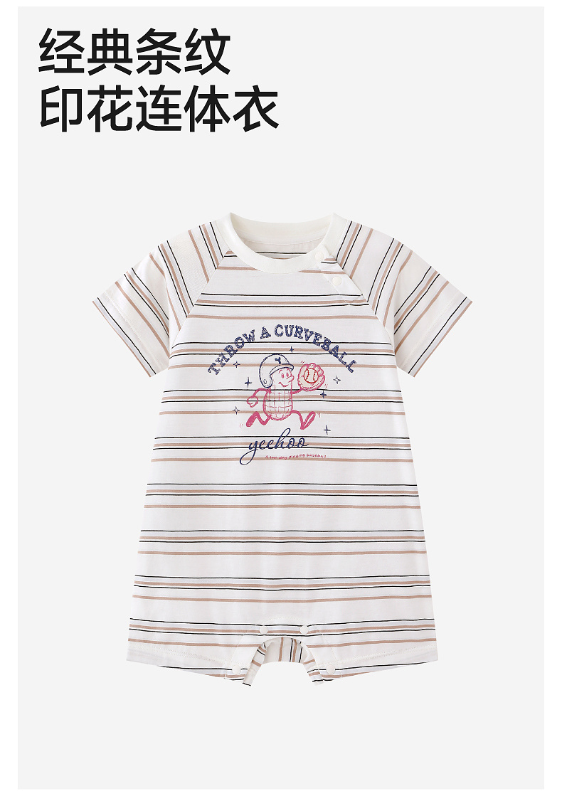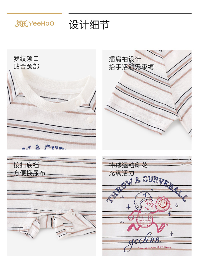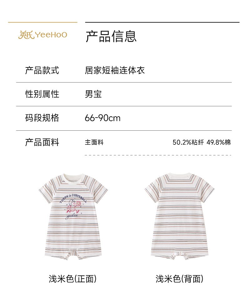 【商场同款】英氏婴儿家居服夏季男宝宝短袖哈衣消臭居家连身睡衣