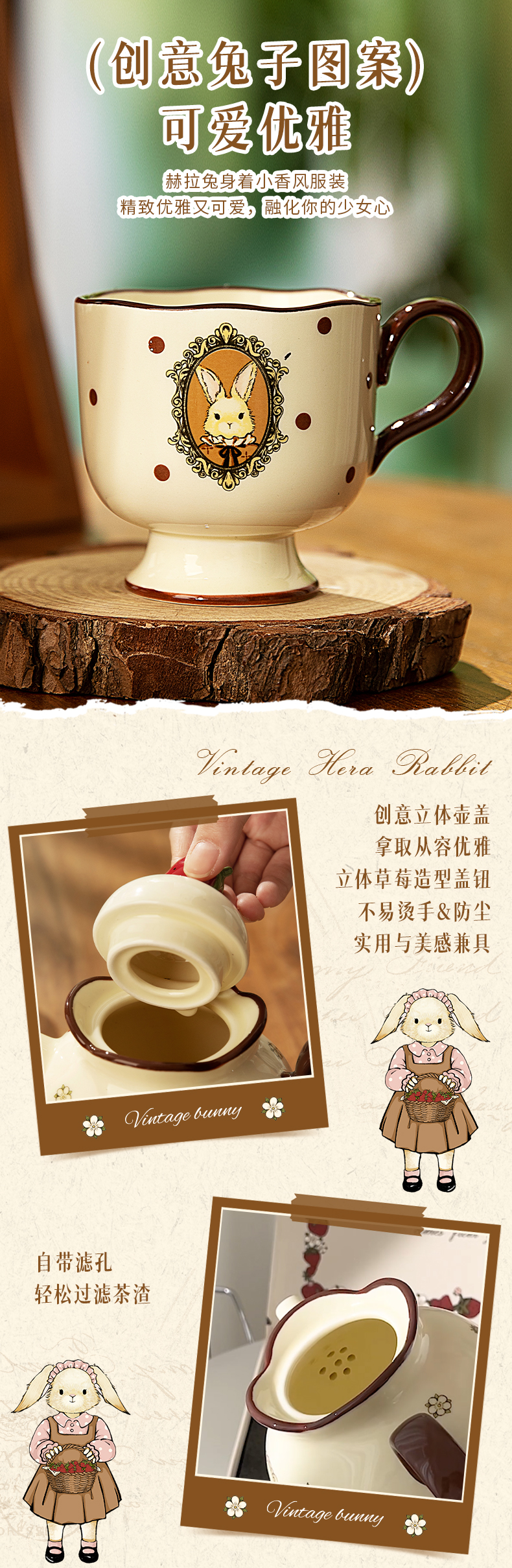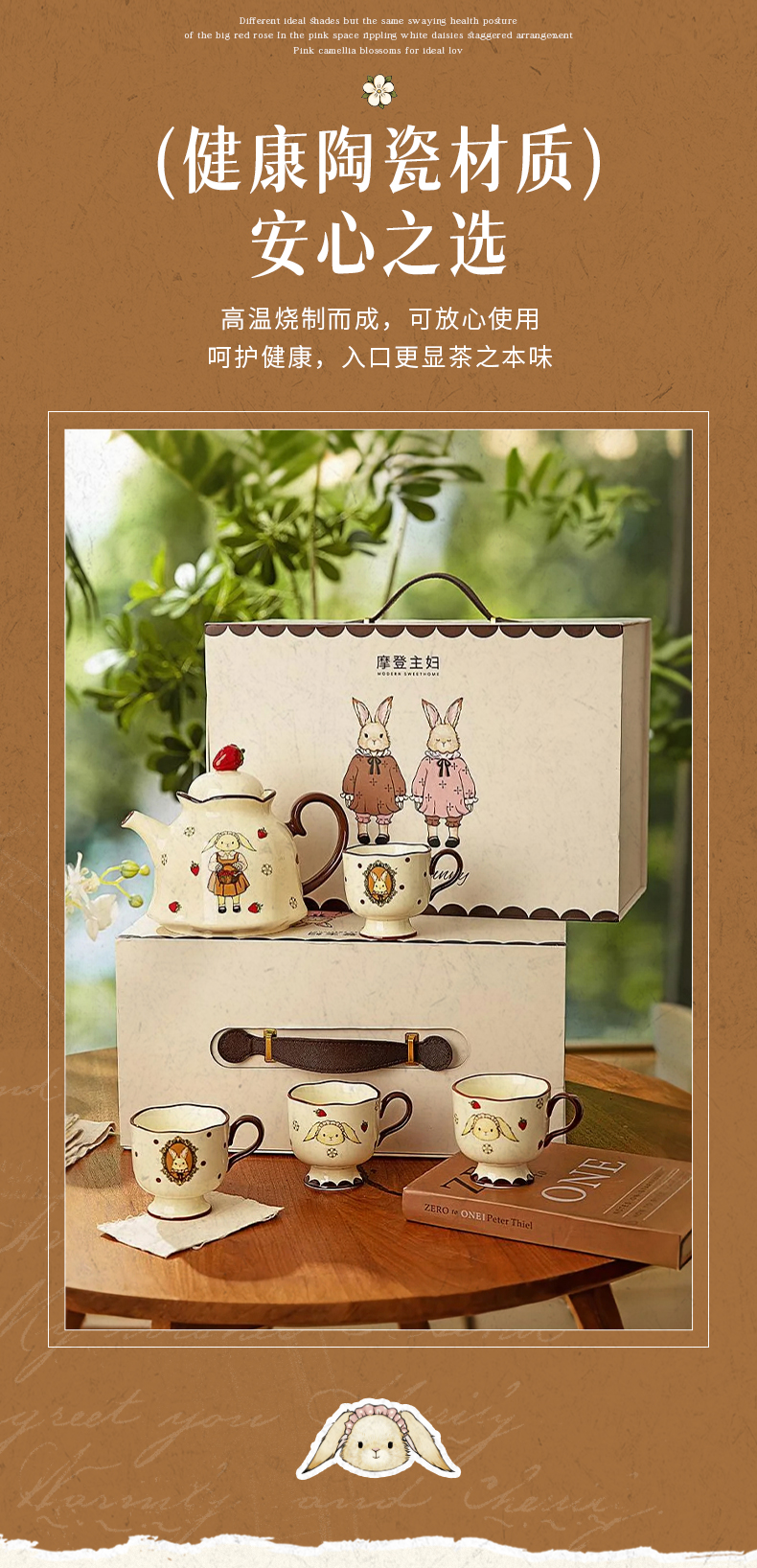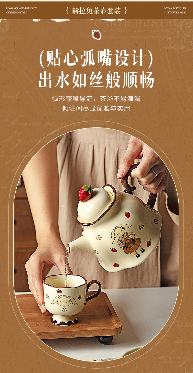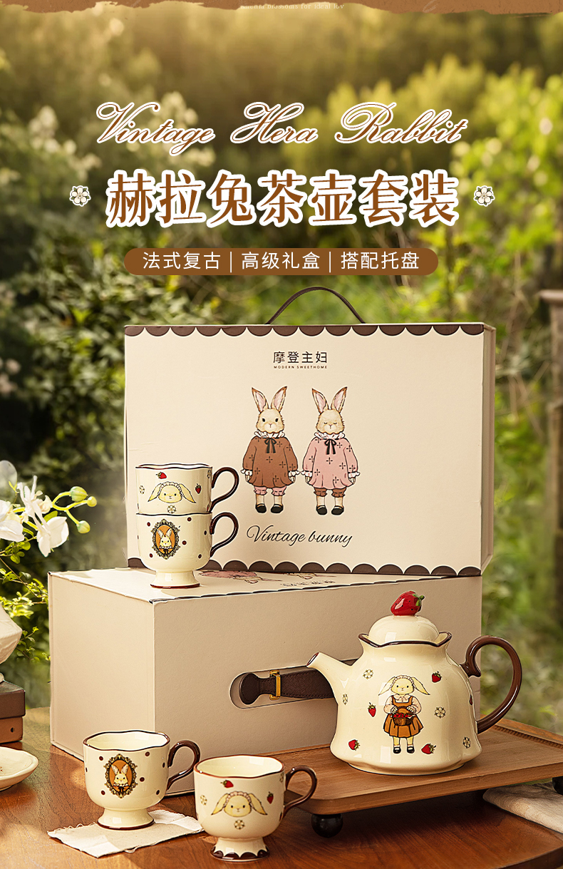 摩登主妇赫拉兔茶具套装泡茶壶茶水分离乔迁新居礼物陶瓷水壶茶杯