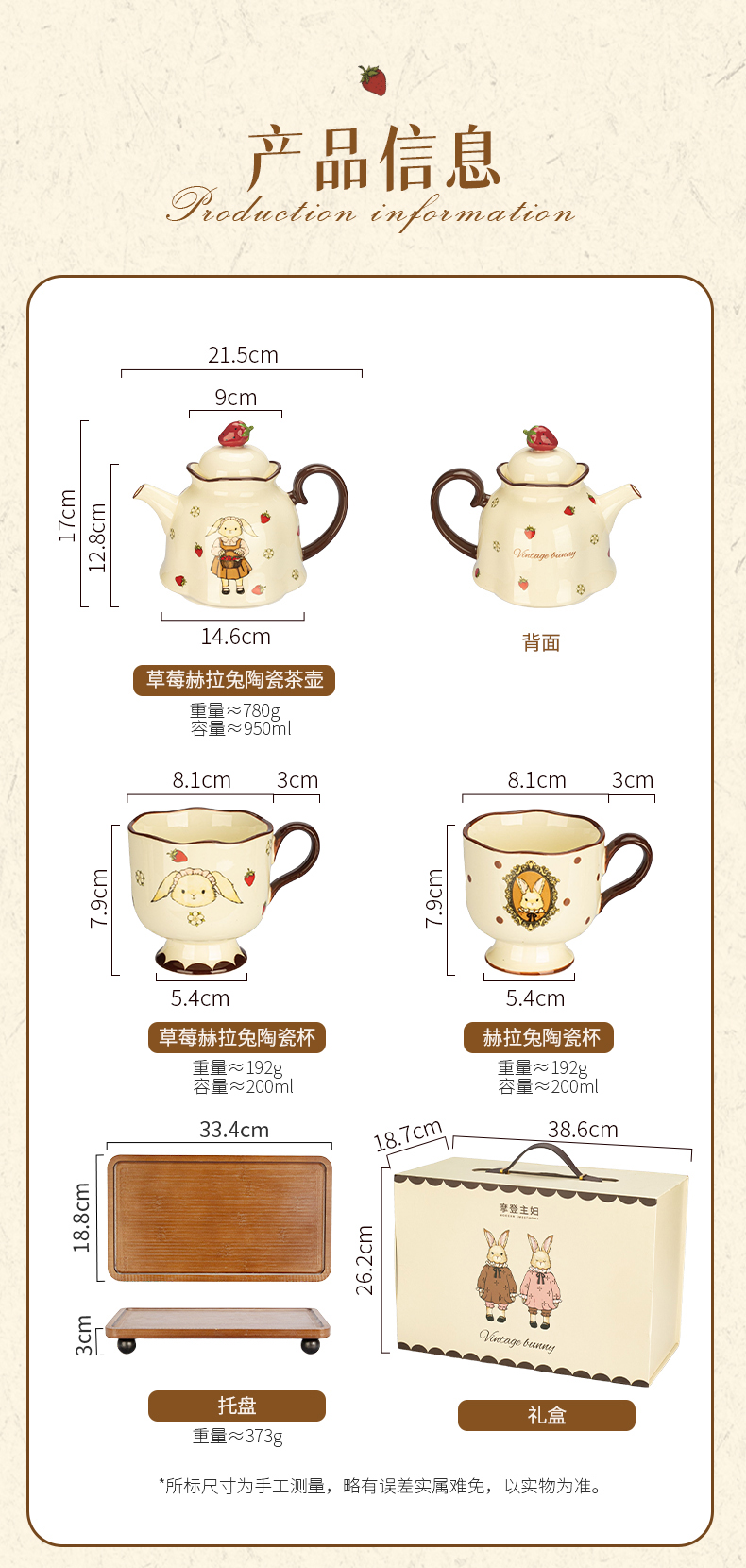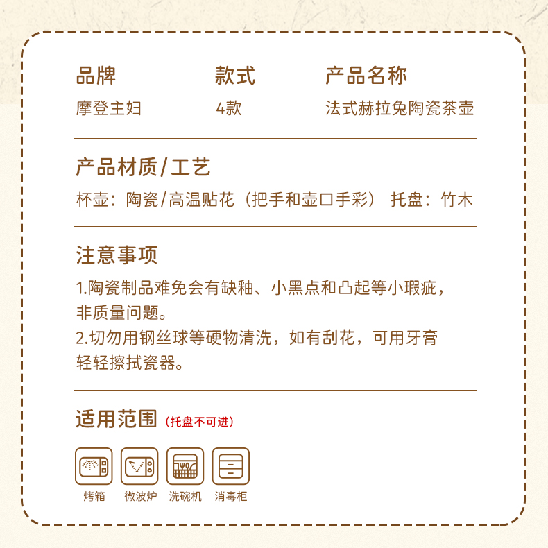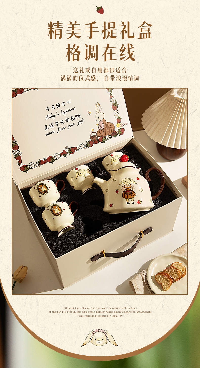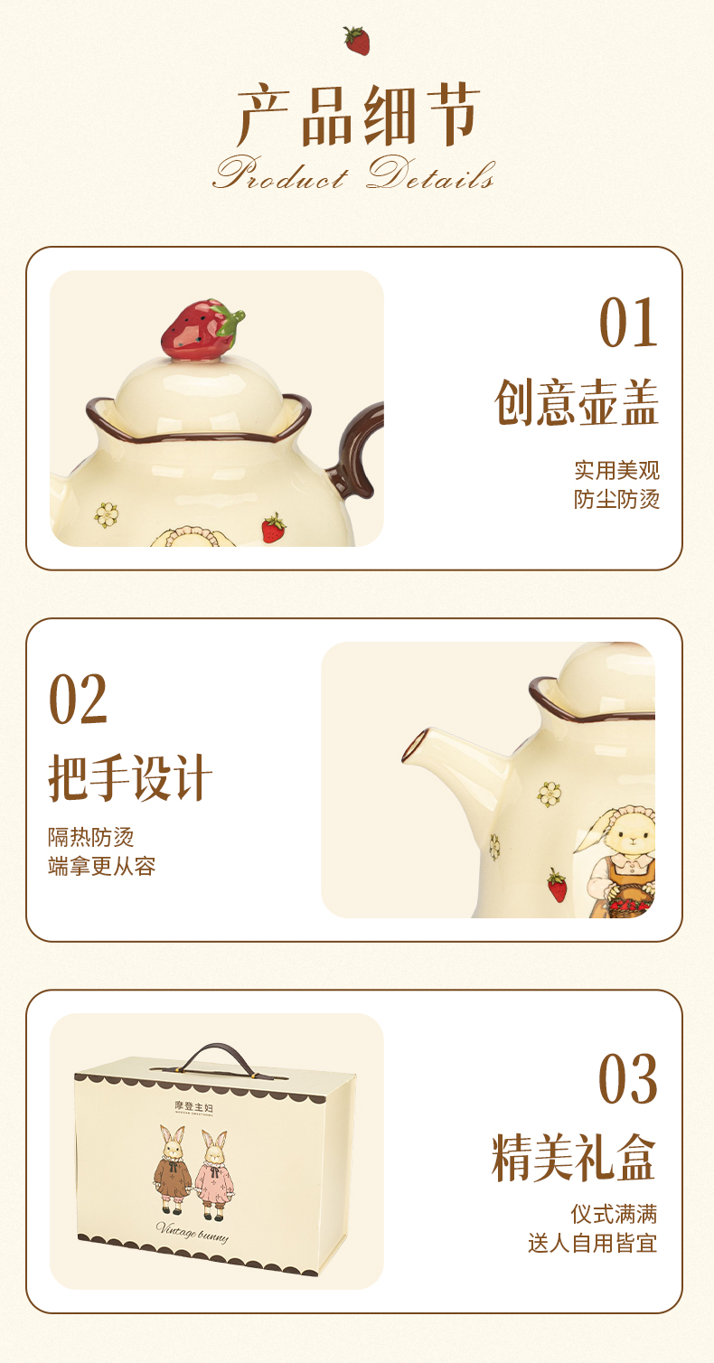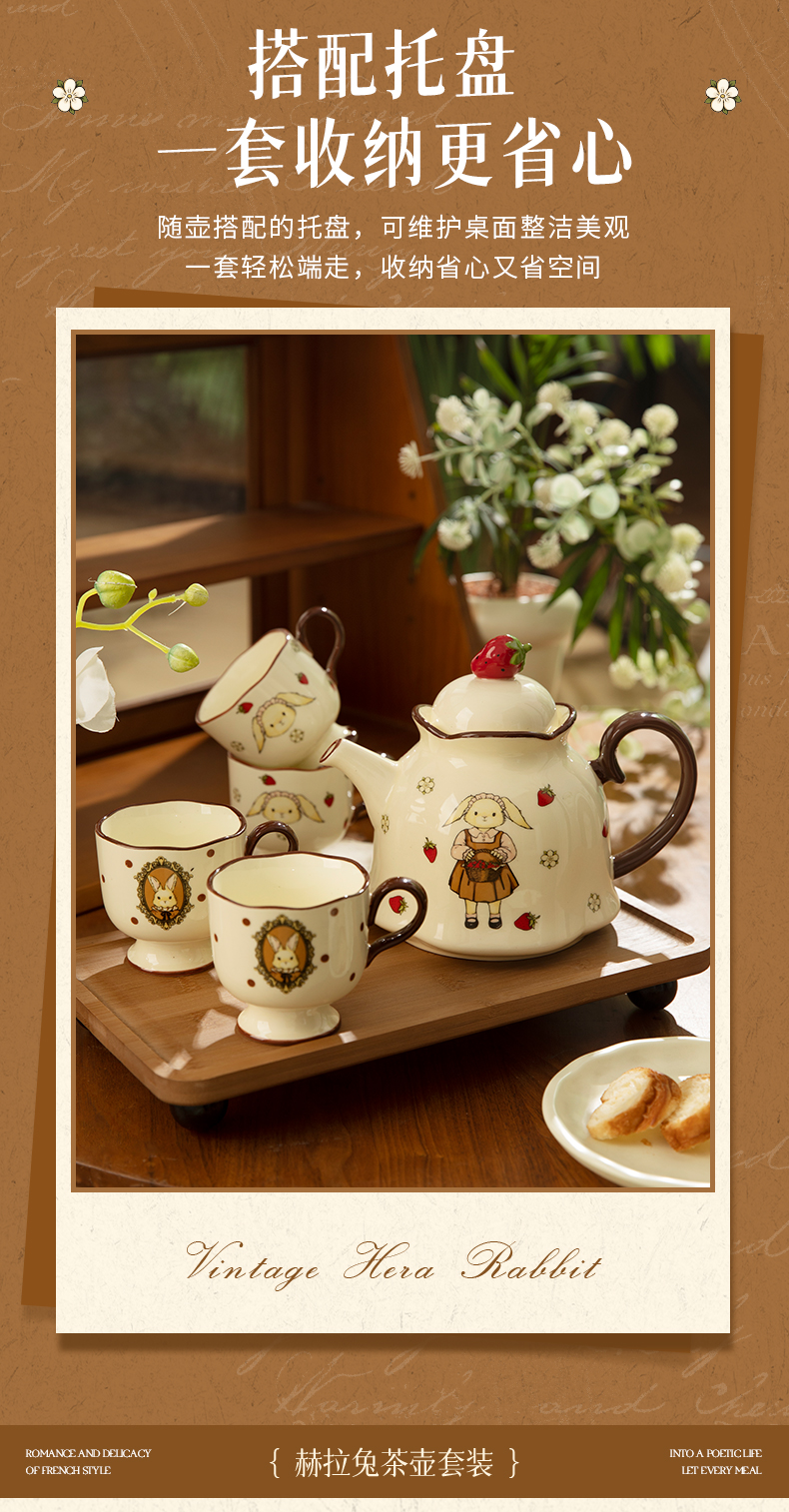 摩登主妇赫拉兔茶具套装泡茶壶茶水分离乔迁新居礼物陶瓷水壶茶杯