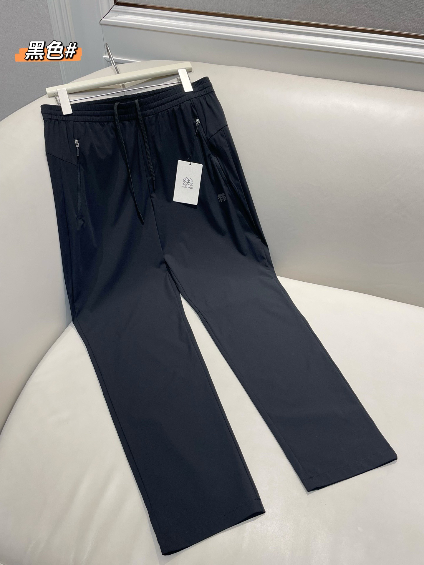 KOLONSPORT夏季经典的ACITVE运动版型长裤,面料采用锦纶+氨纶的轻薄梭织弹力面料,具备凉感及UPF50+的防晒性能,出色的透气性能,保证夏季穿着的舒适性,略带横纹组织感,在身体出汗情况下,能有效减少皮肤与面料间的黏贴感,全松紧腰头设计,配合抽绳,可自由调节达到合体状态,穿着方便,不论跑步 健身 骑行 周末出行 都非常好穿!久穿不闷 透气性非常好!时尚版型与功能性面料相结合的一款“神裤”百搭不挑人,老公 老爸皆可轻松驾驭,亲测夏天穿面料超级舒服~上身自带凉感且挺括有型,不啰嗦 喜欢的抓紧时间囤起来吧!