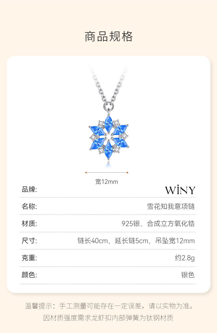 Winy925纯银雪花知我意项链送女友闺蜜节日生日礼物