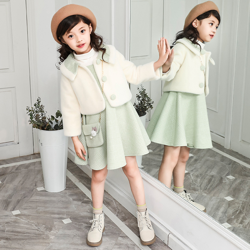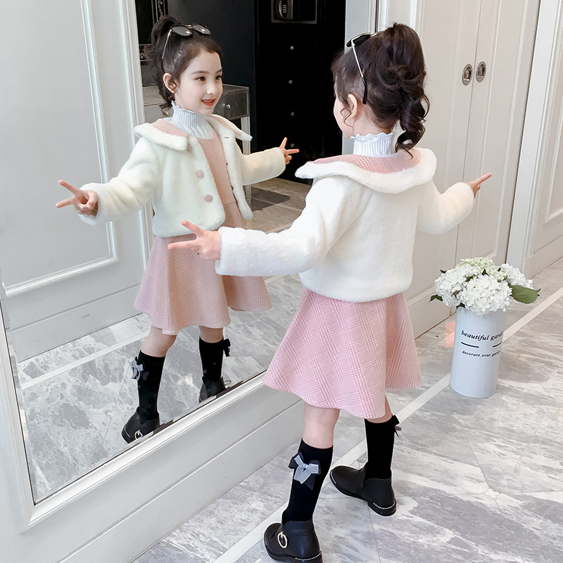 ZCY-新款韩版加厚水貂绒公主裙两件套