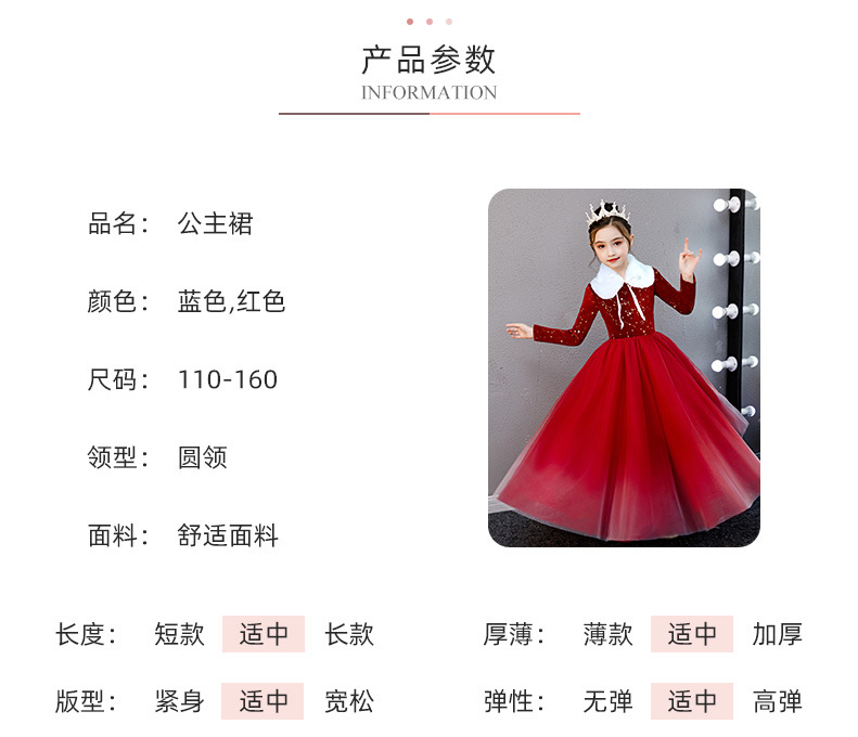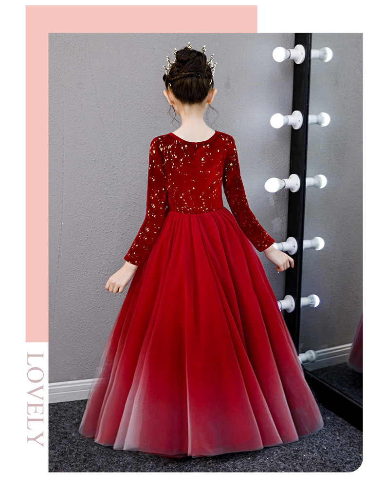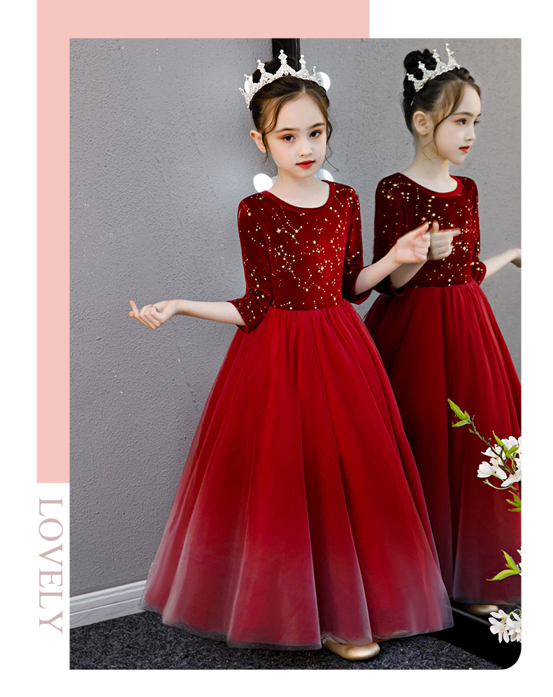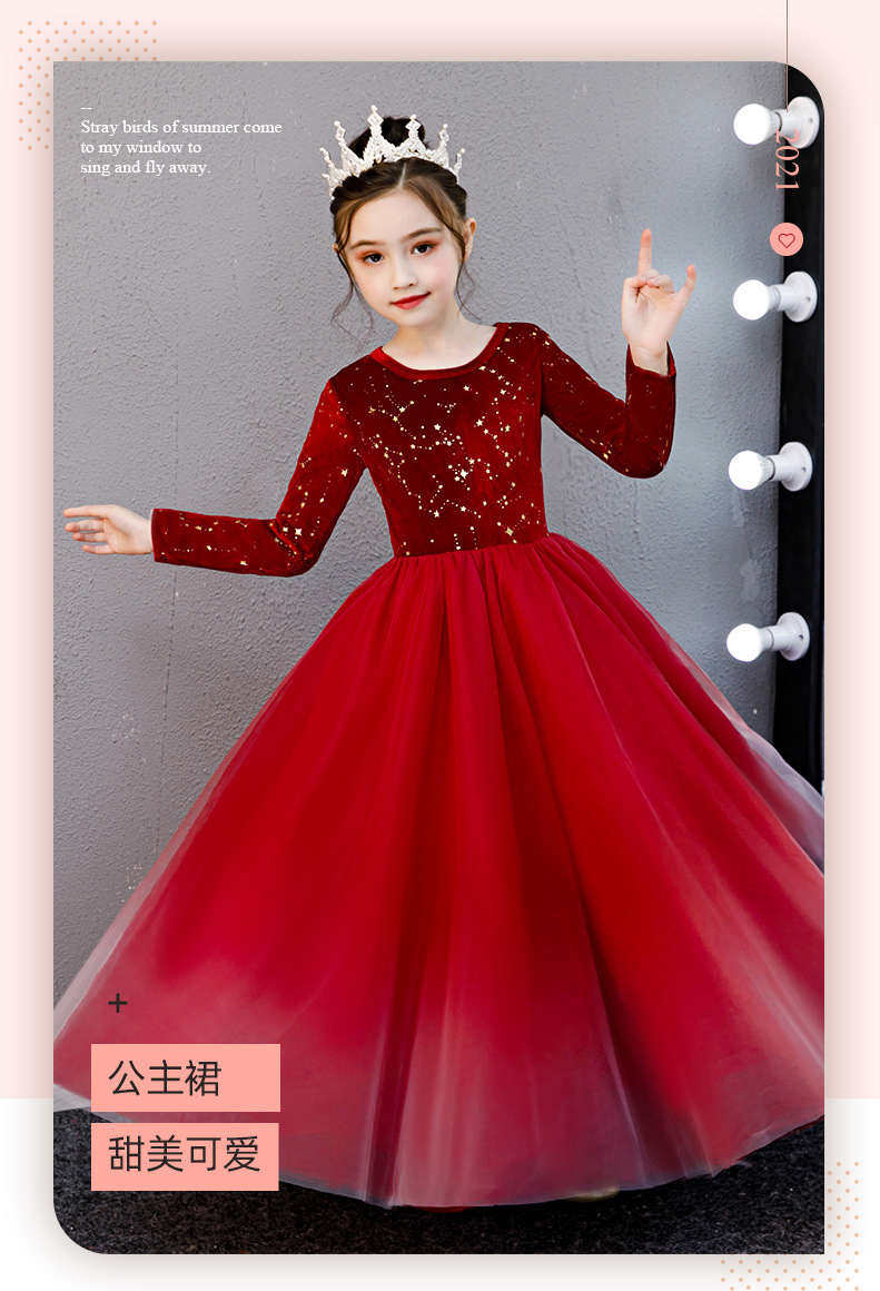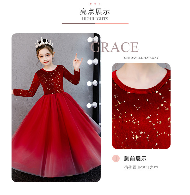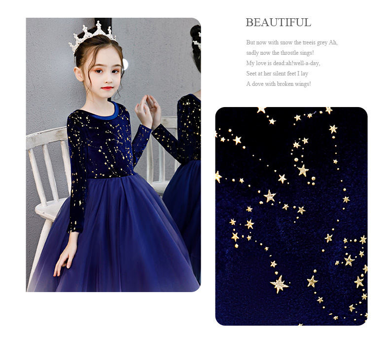 女童圣诞节演出服走秀晚礼服花童星空裙 XWN-8829