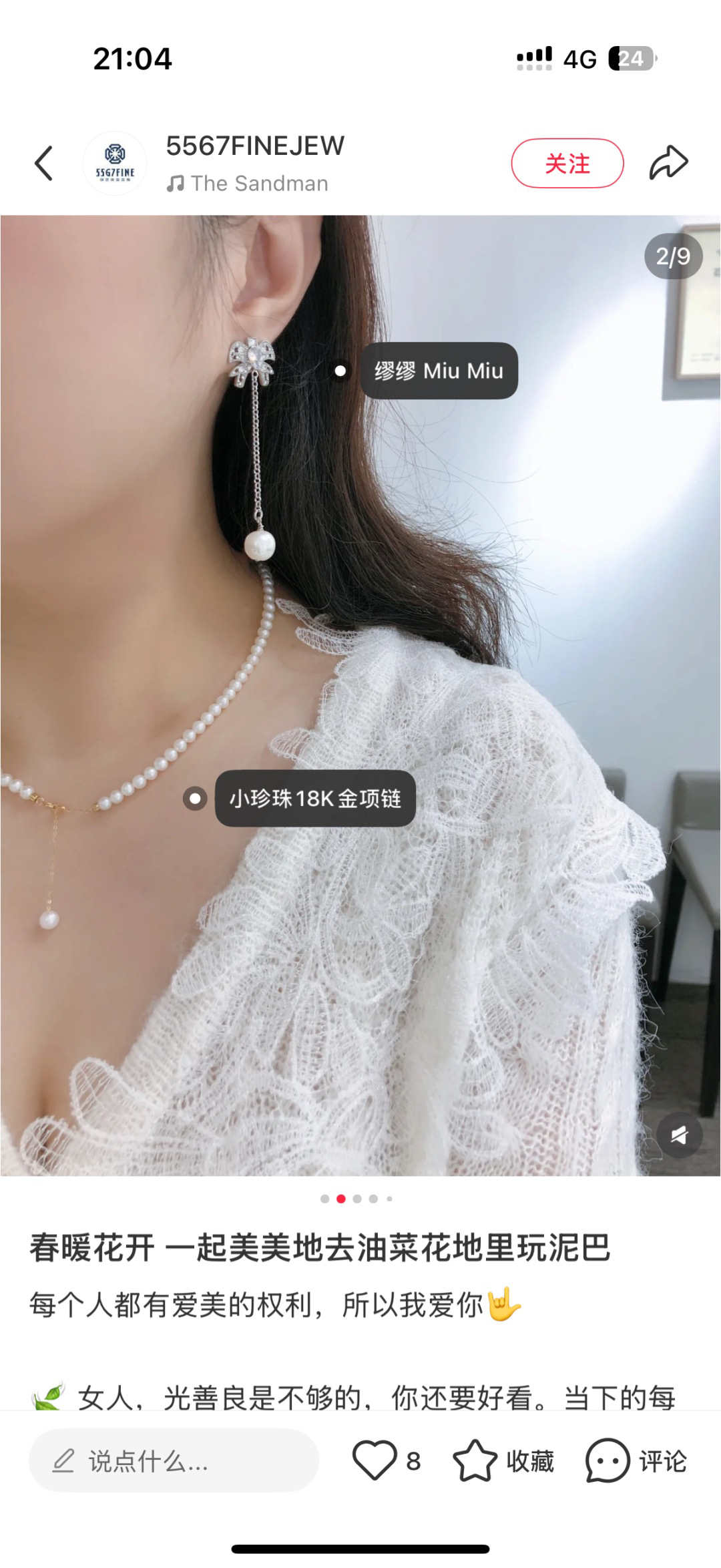 采用施华洛世奇8mm珍珠