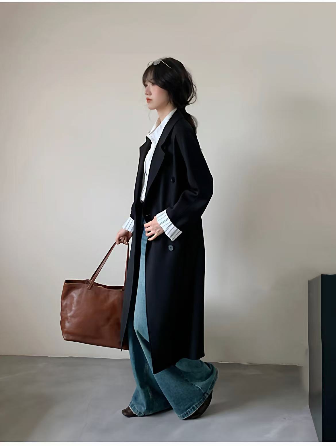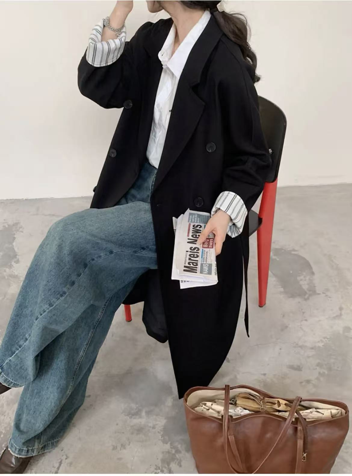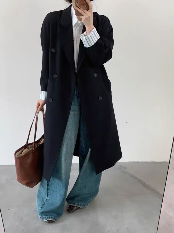12.12错过没有!清货不退【秋上新】高支高密~很有品质感 可卷边袖口中长风衣外套-喜出