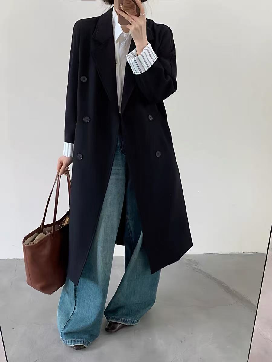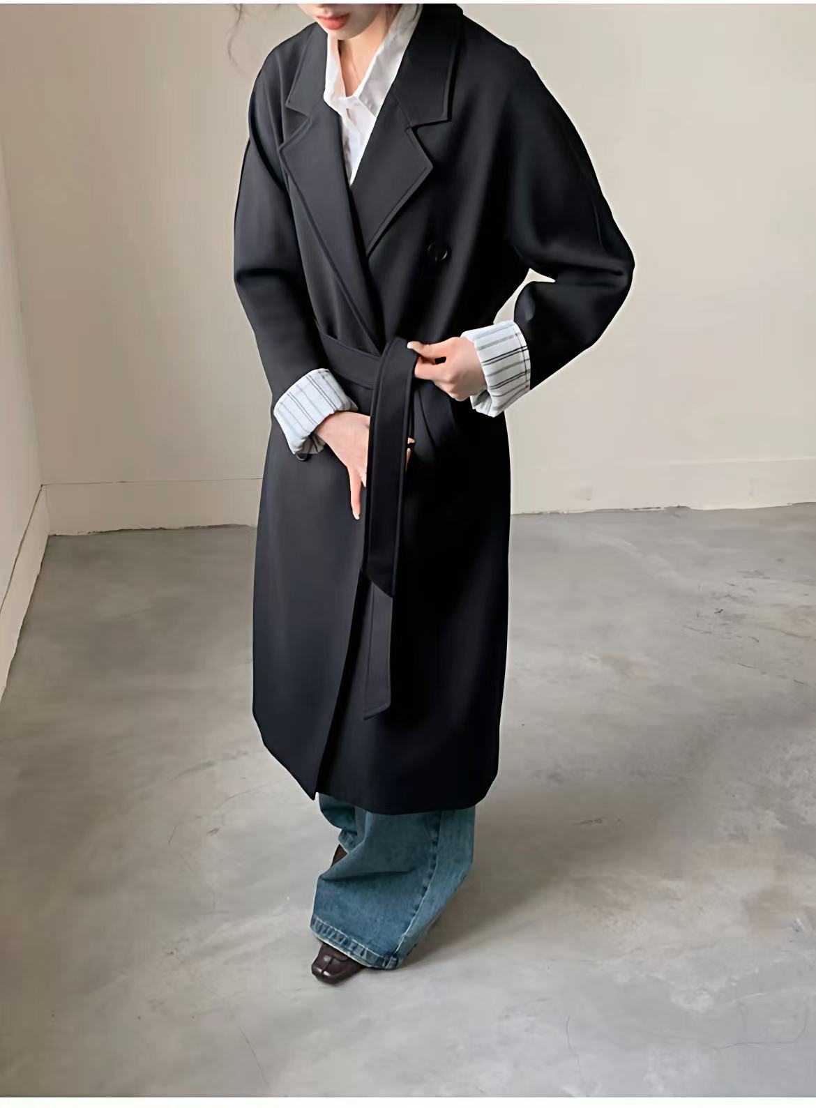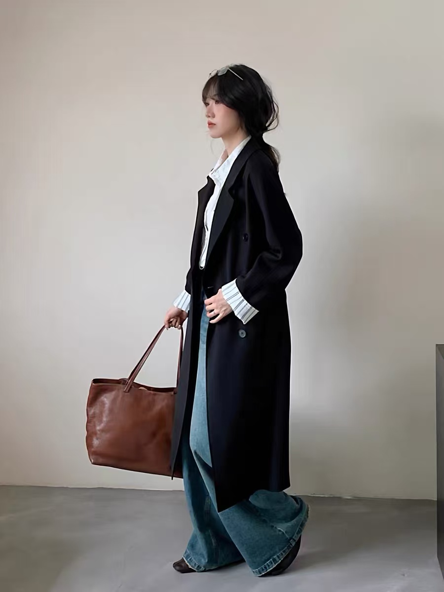 12.12错过没有!清货不退【秋上新】高支高密~很有品质感 可卷边袖口中长风衣外套-喜出