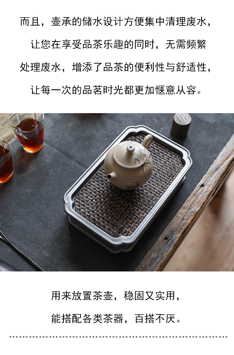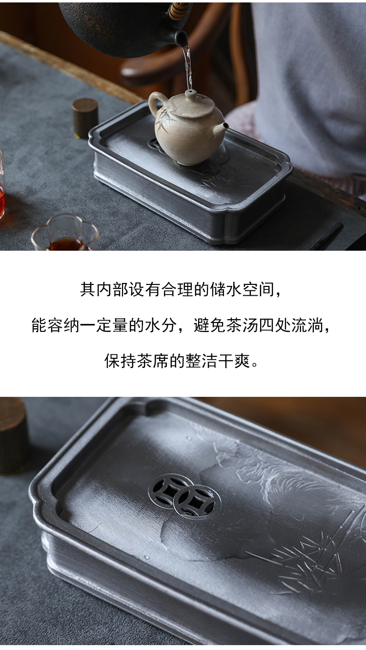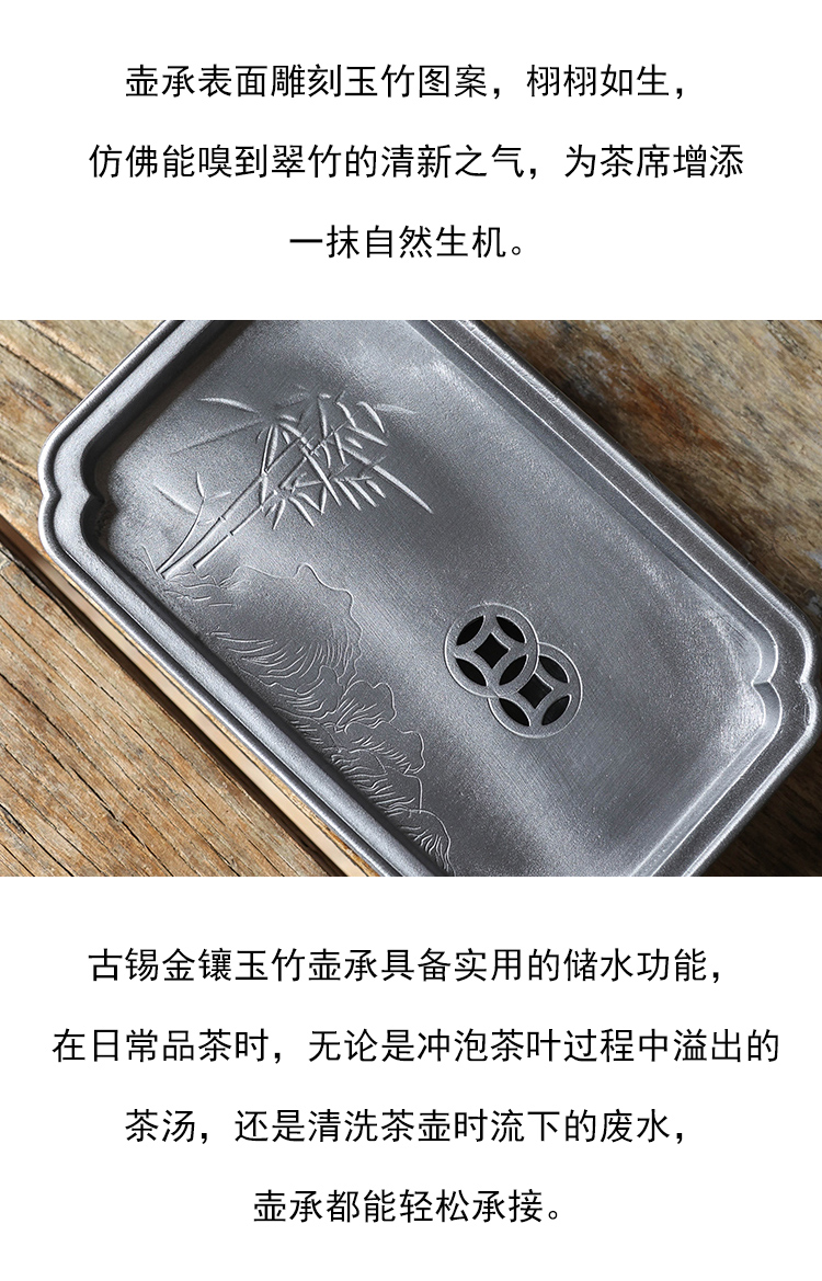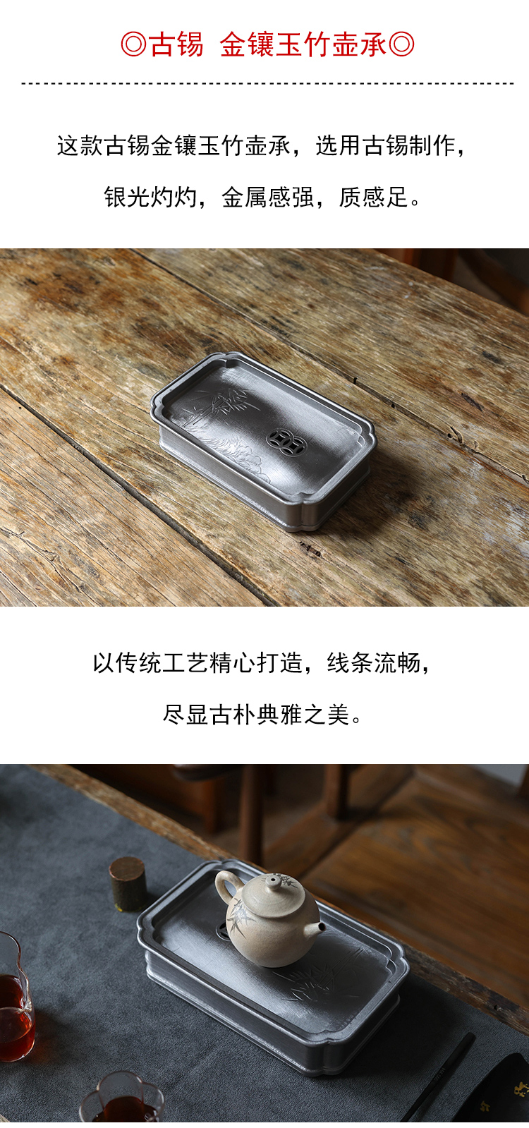 茶香记 古锡金镶玉竹壶承纯锡制作实用干泡台线条流畅茶道零配