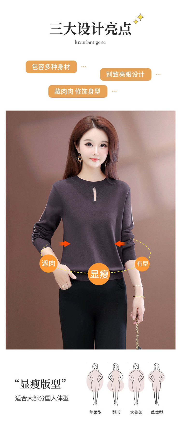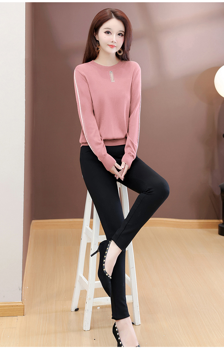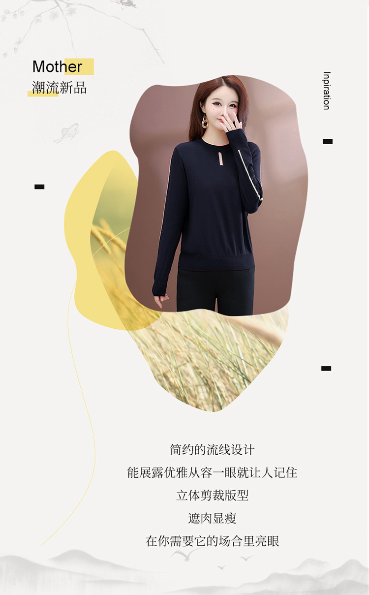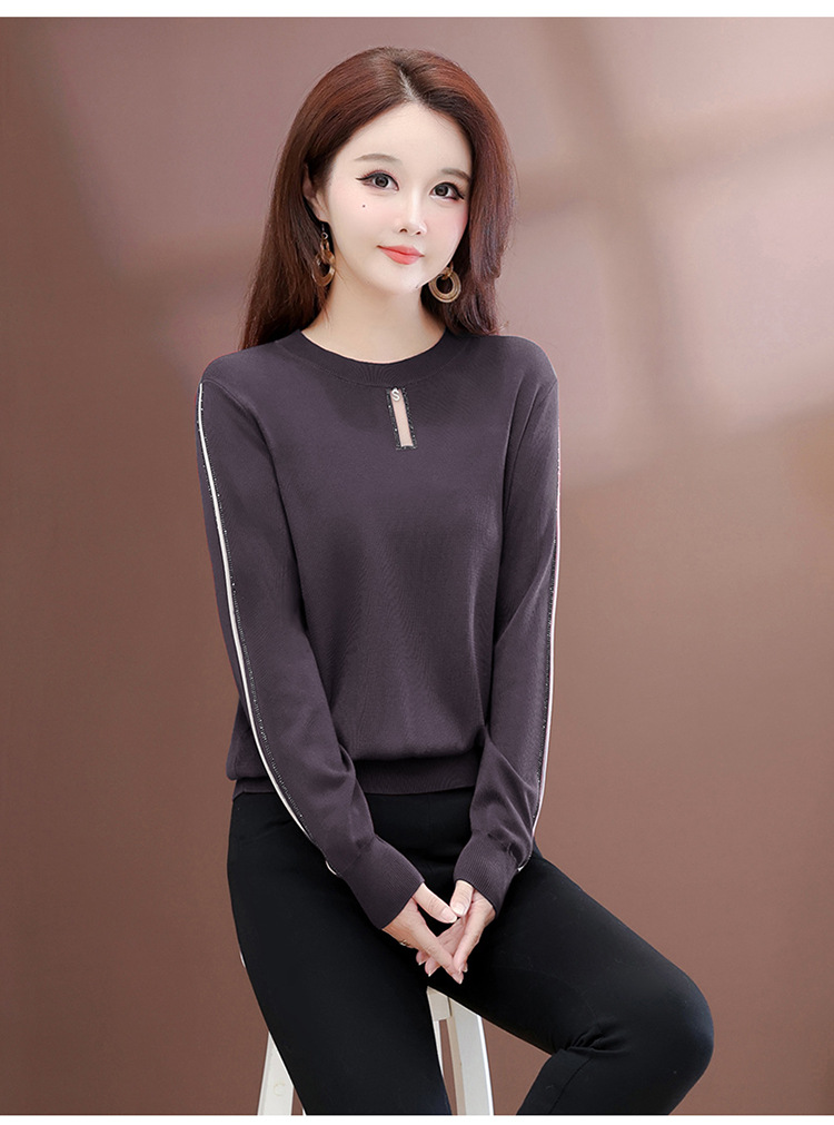QYM 25702-Y薄款休闲衫时尚纯色针织衫宽松打底衫