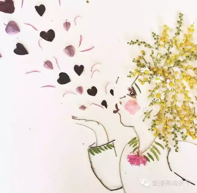 一张用鲜花植物制作的人物画,有趣好玩,让孩子主动想要了解鲜花