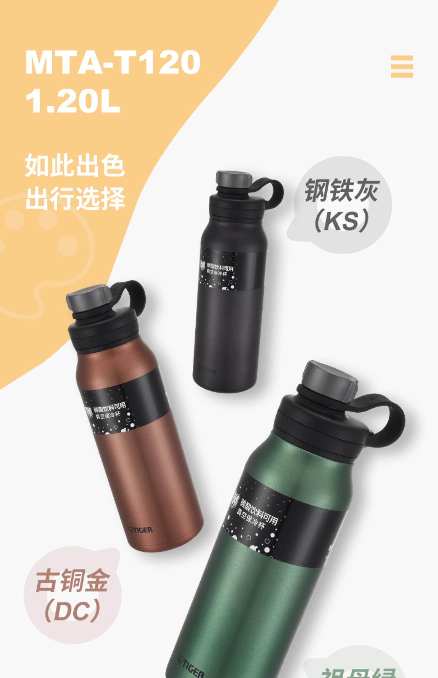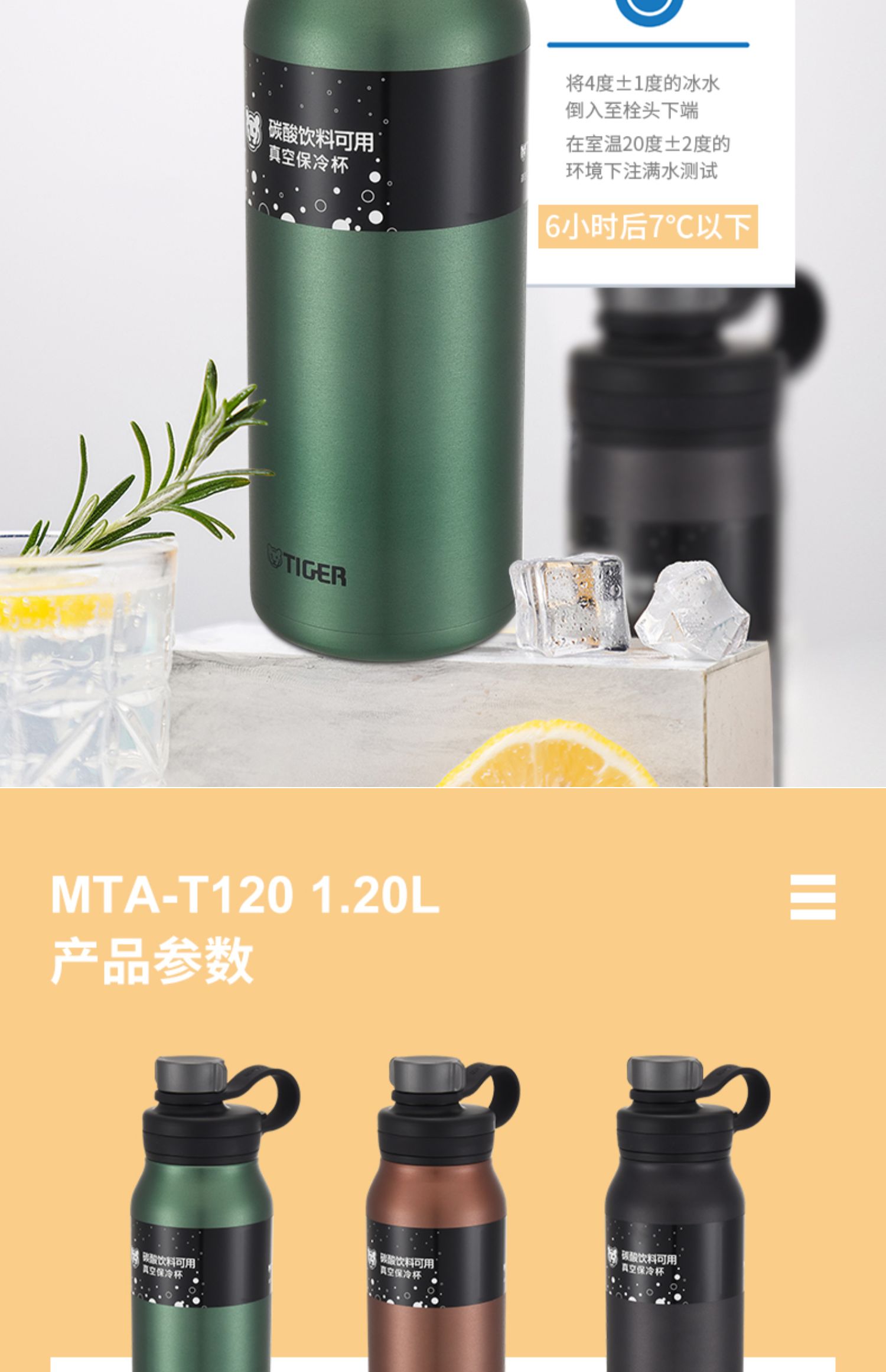 TIGER/虎牌 小钢炮不锈钢保冷杯MTA-T120户外露营大容量水杯1200ml