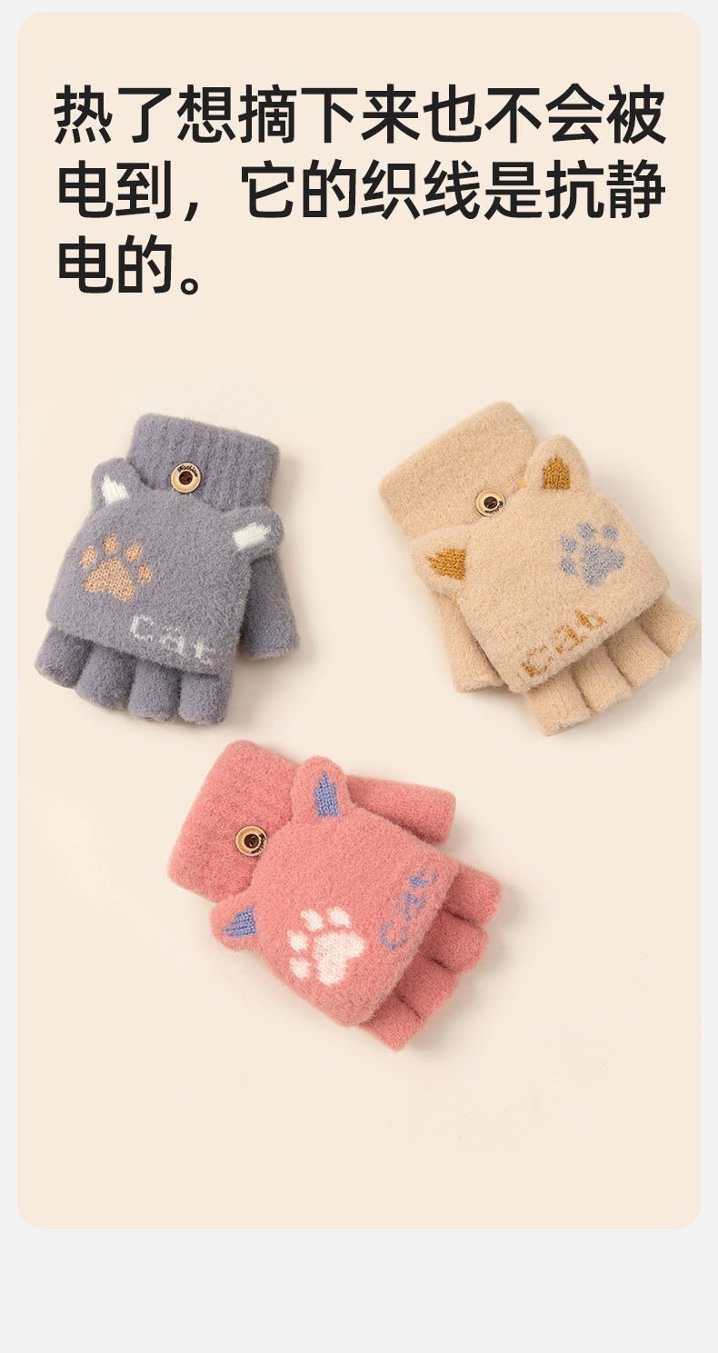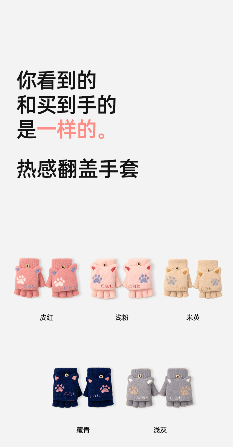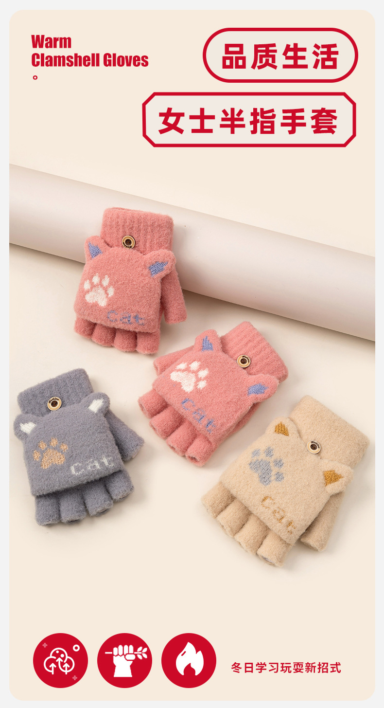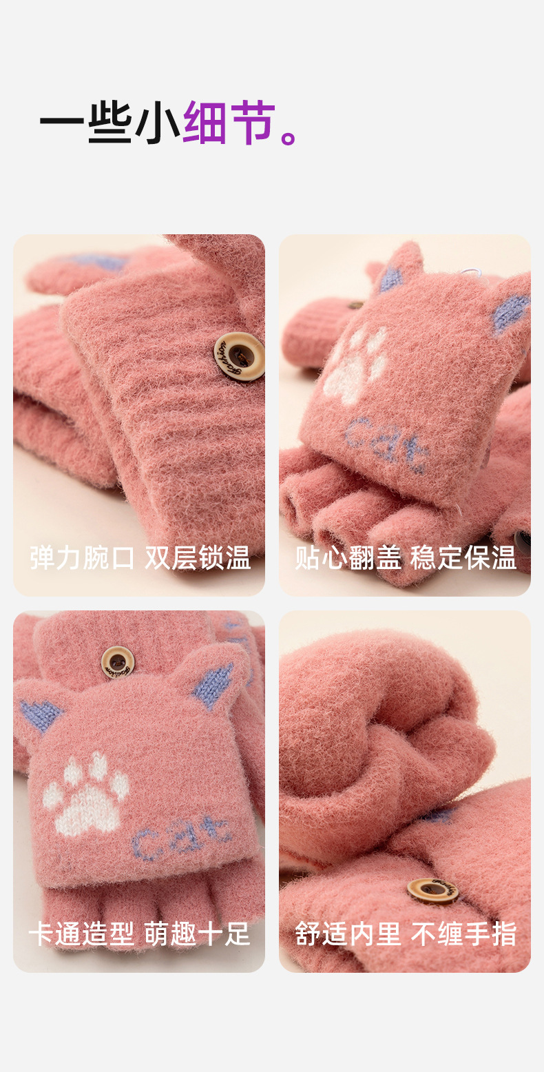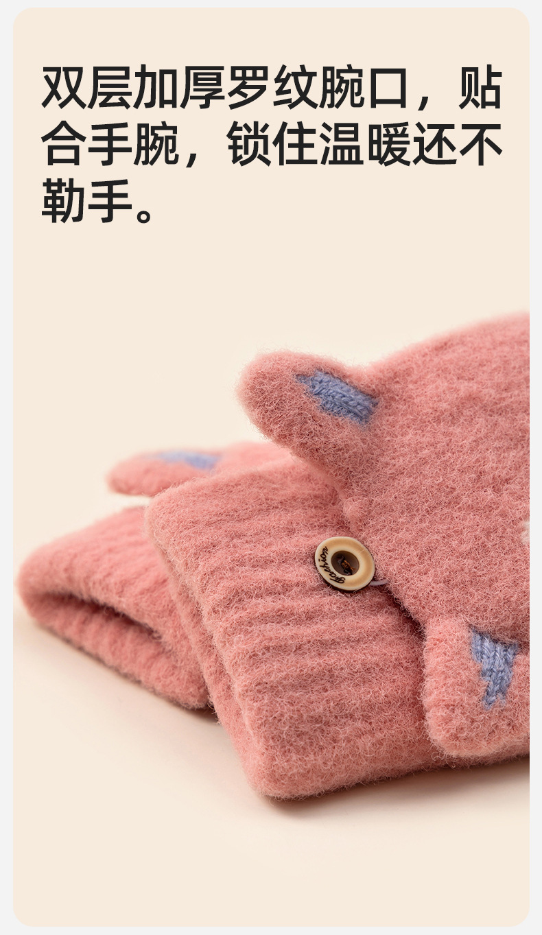 【冬日学习新招式!半指手套】学生可爱手套女士冬季半指翻盖,针织漏指加绒加厚防寒保暖露指,双层加厚罗纹碗口 贴合手腕 锁住温暖还不勒手