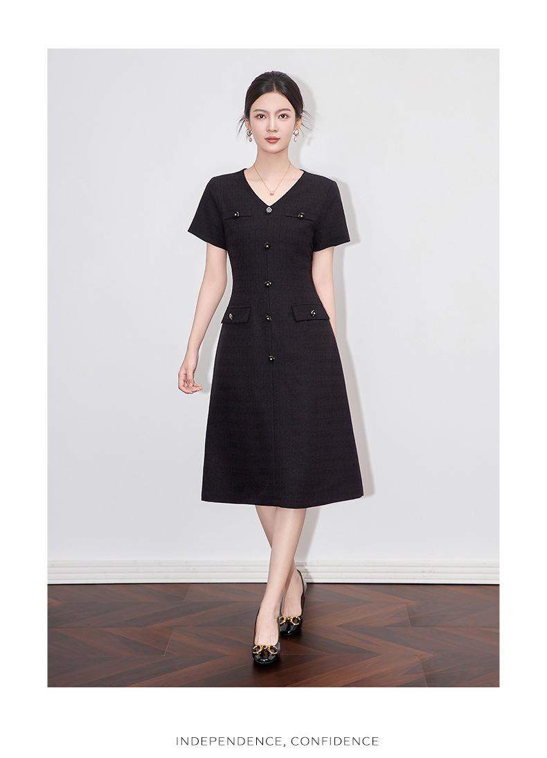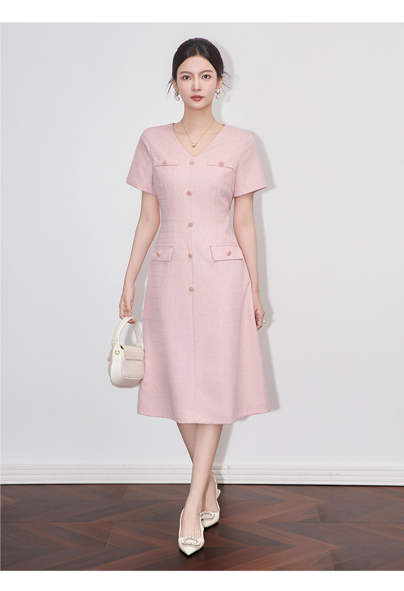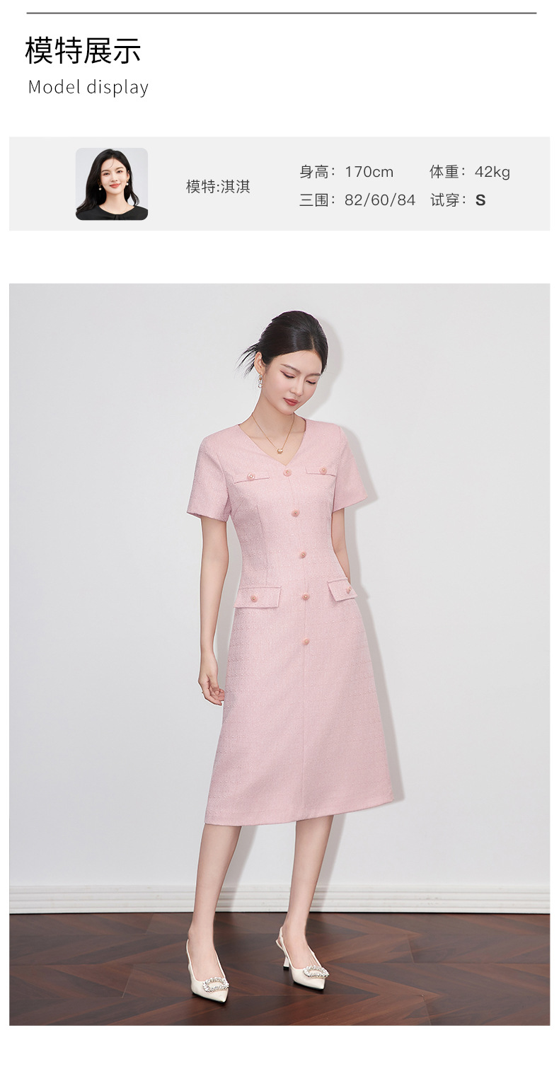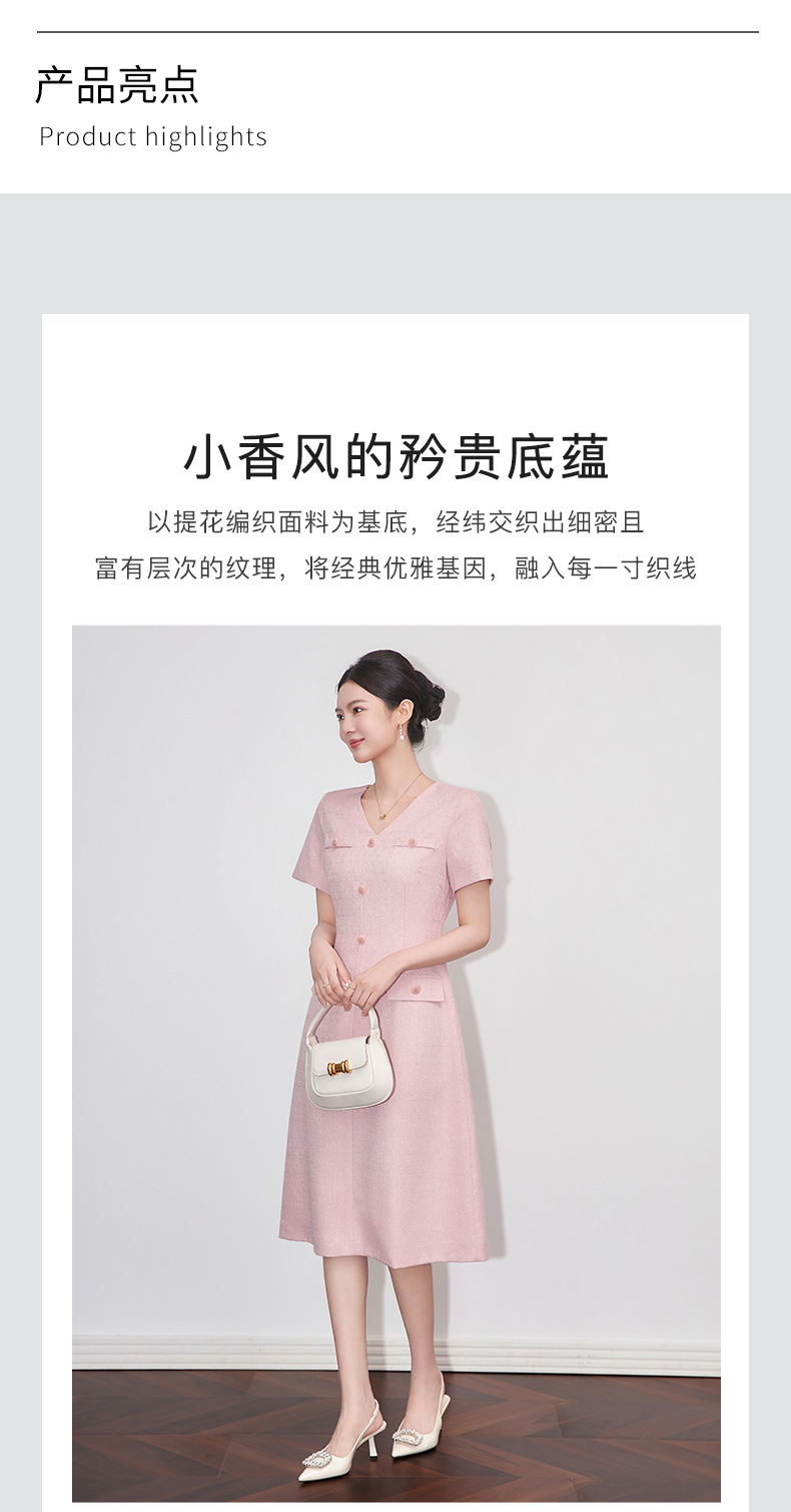 「高货wl」全新升级【铂金会员358/天猫479/差价121】(04559)洛诗琳精致小香风连衣裙2025夏季气质修身V领短袖裙子女