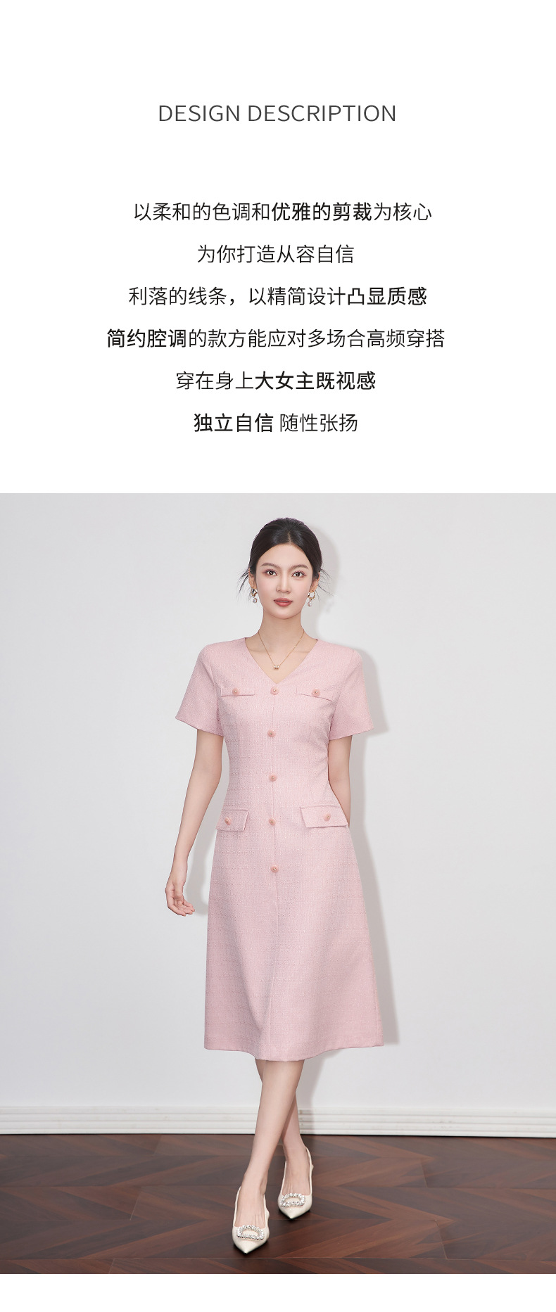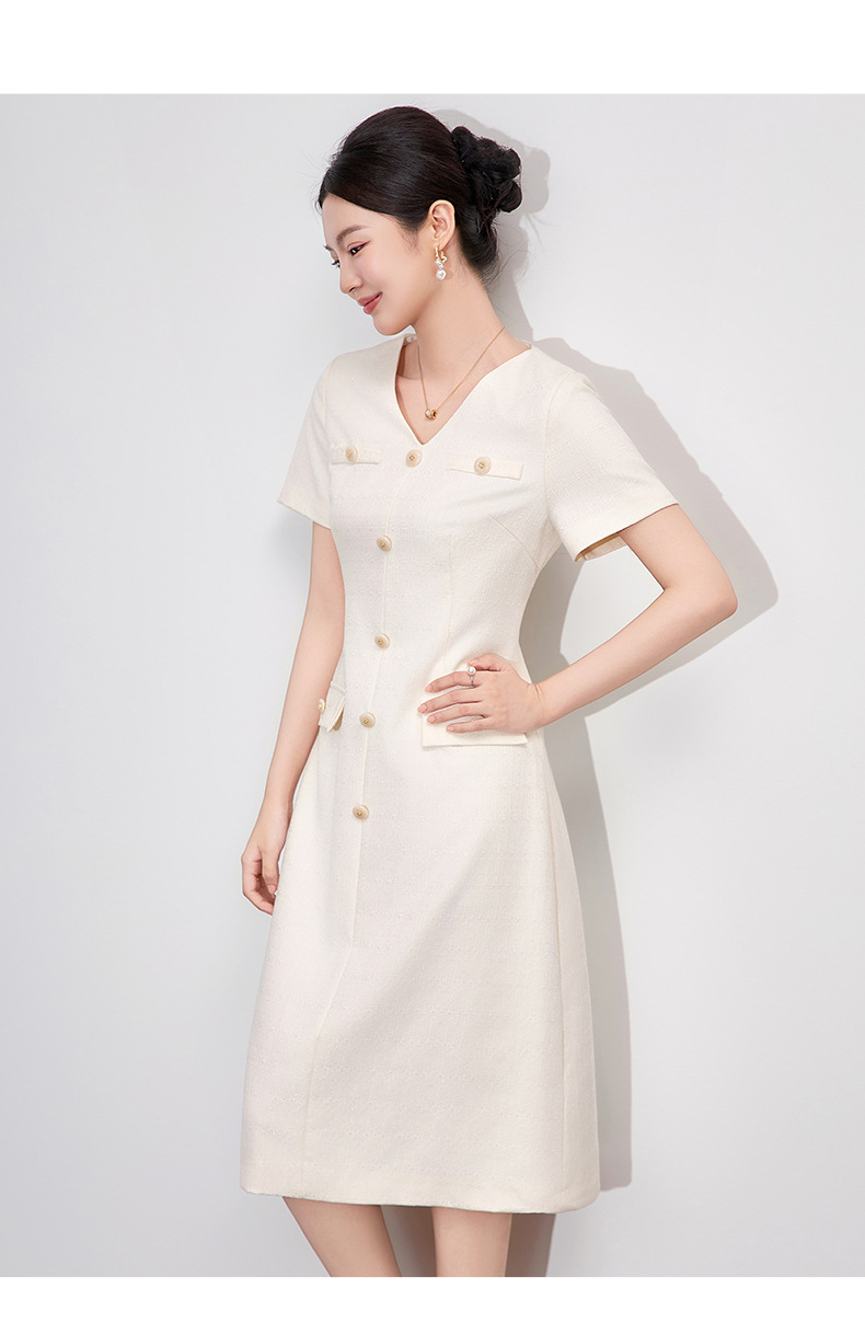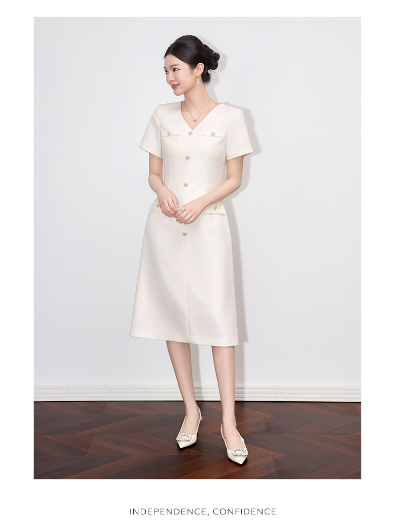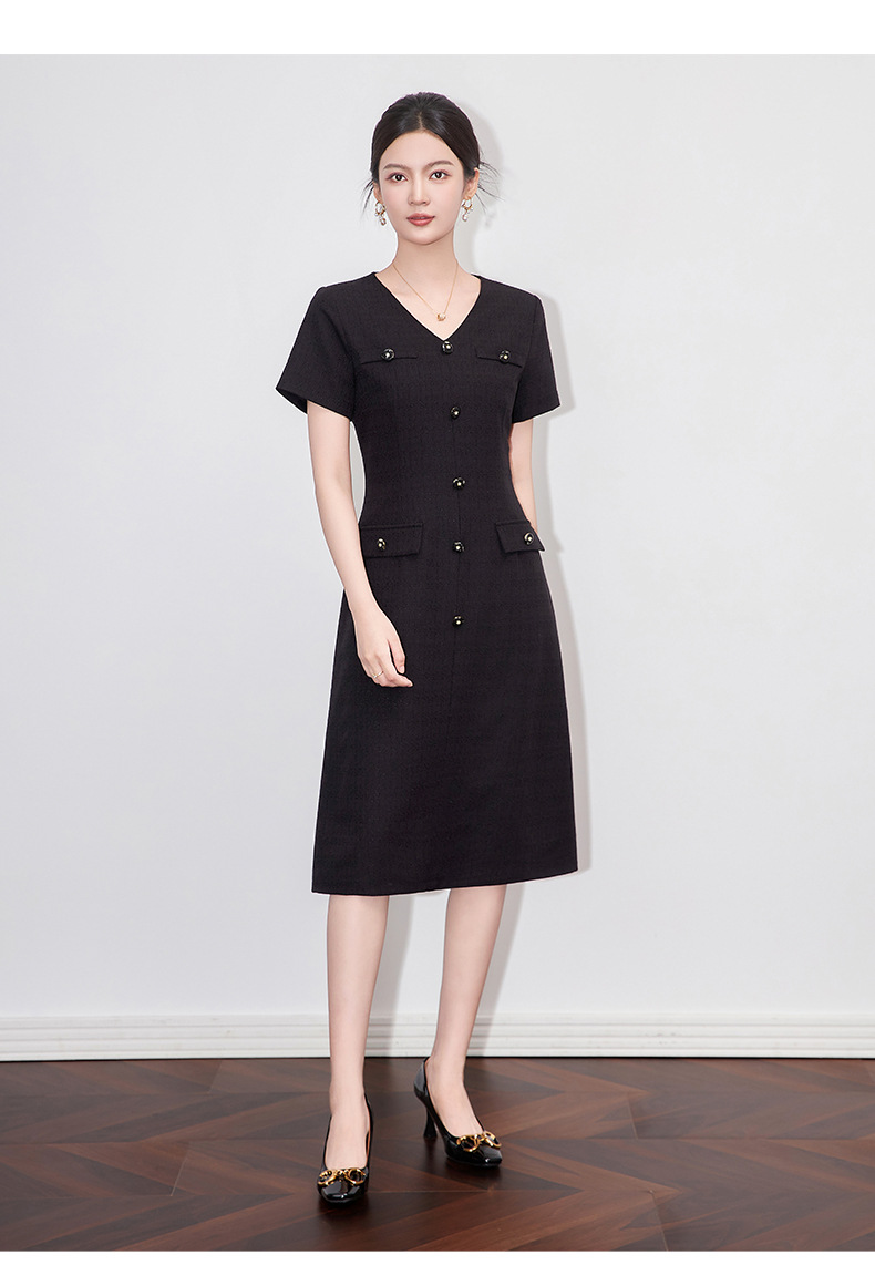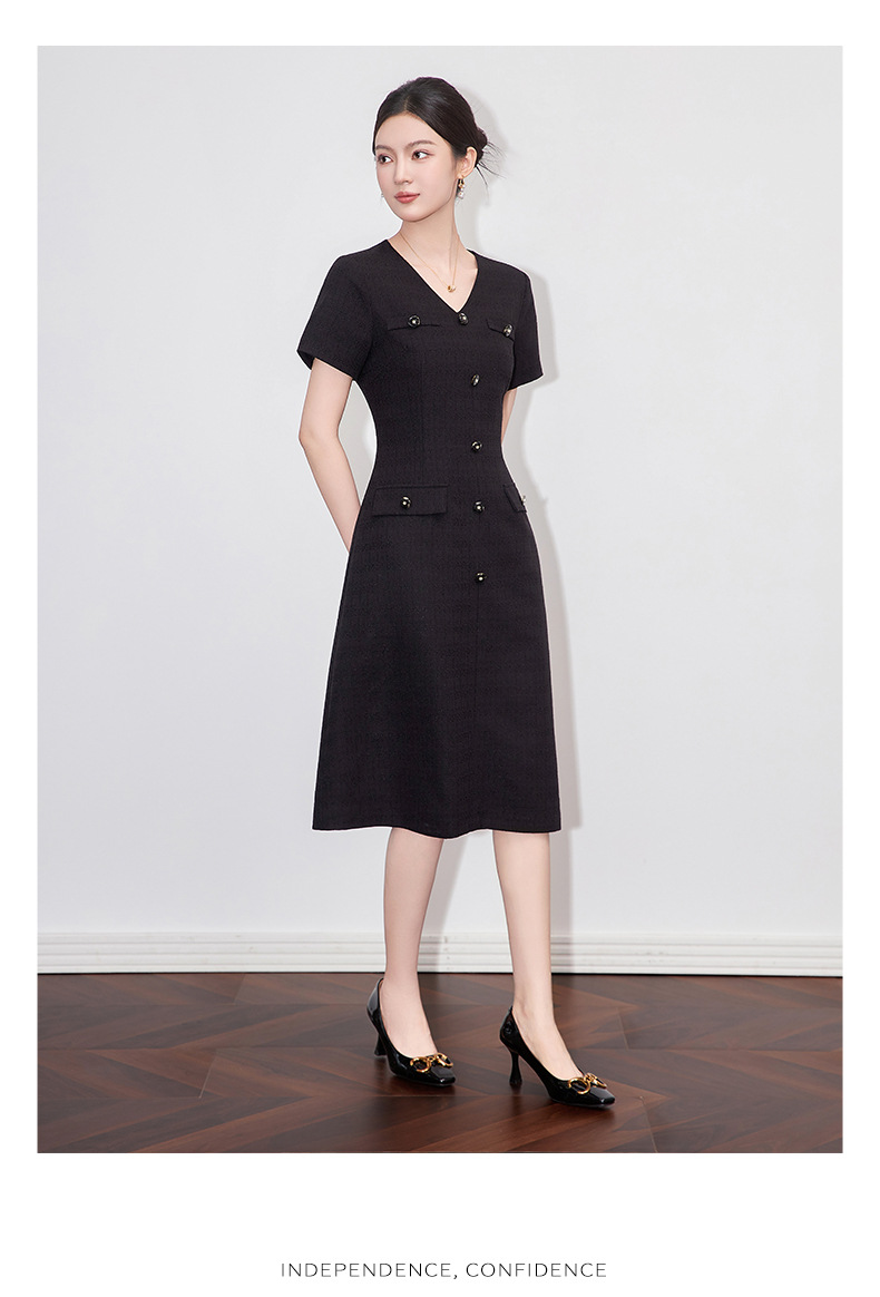「高货wl」全新升级【铂金会员358/天猫479/差价121】(04559)洛诗琳精致小香风连衣裙2025夏季气质修身V领短袖裙子女