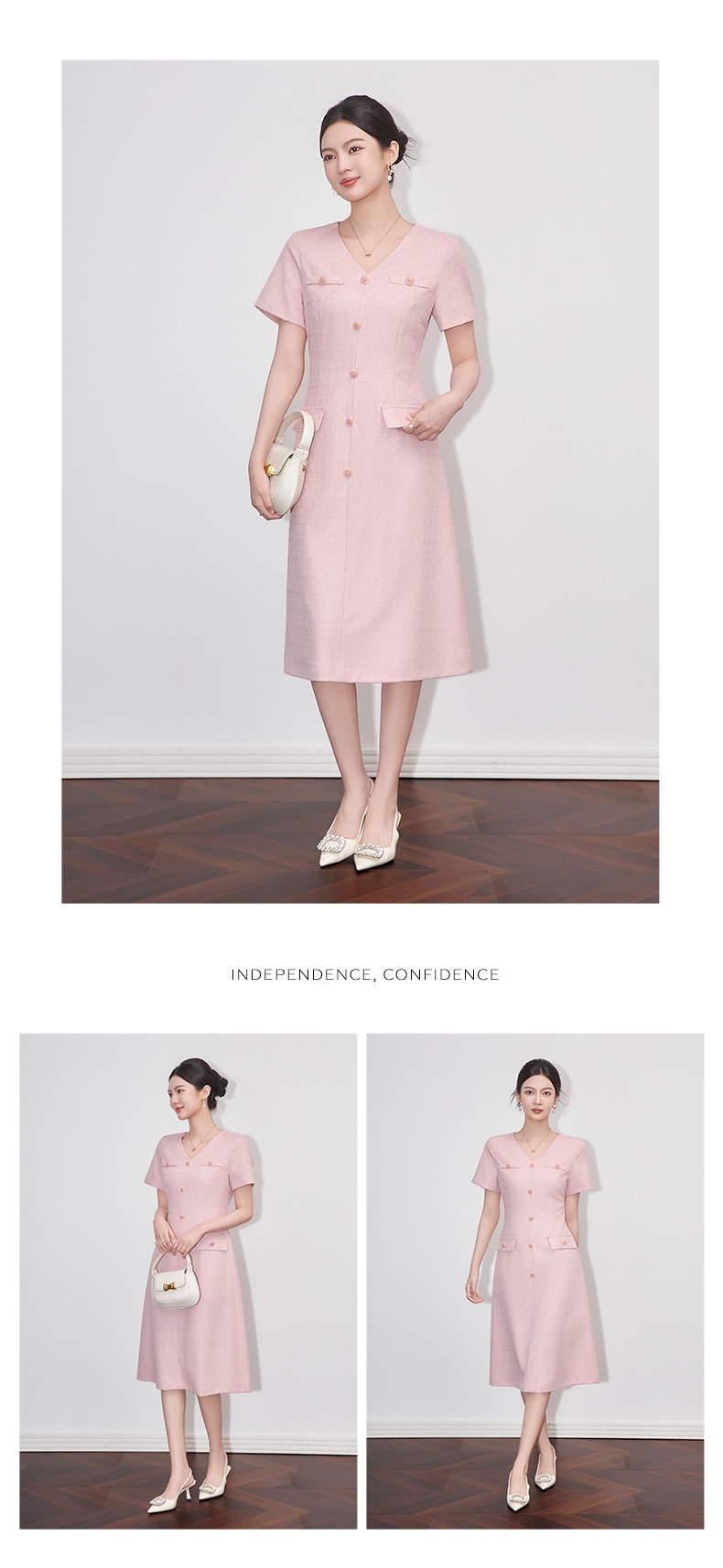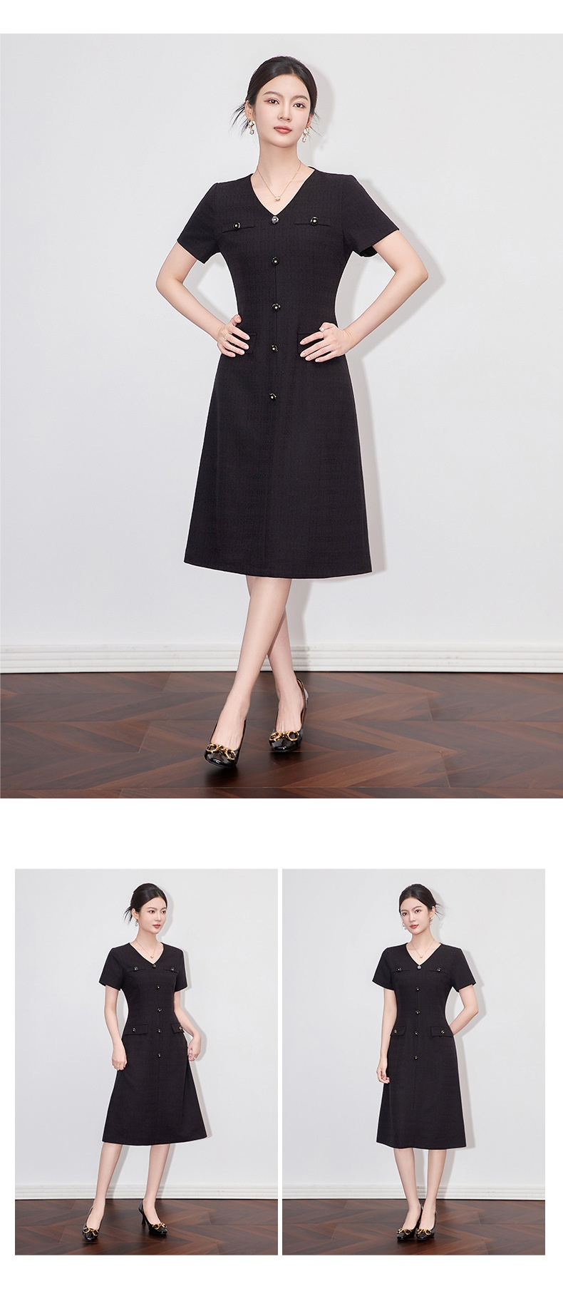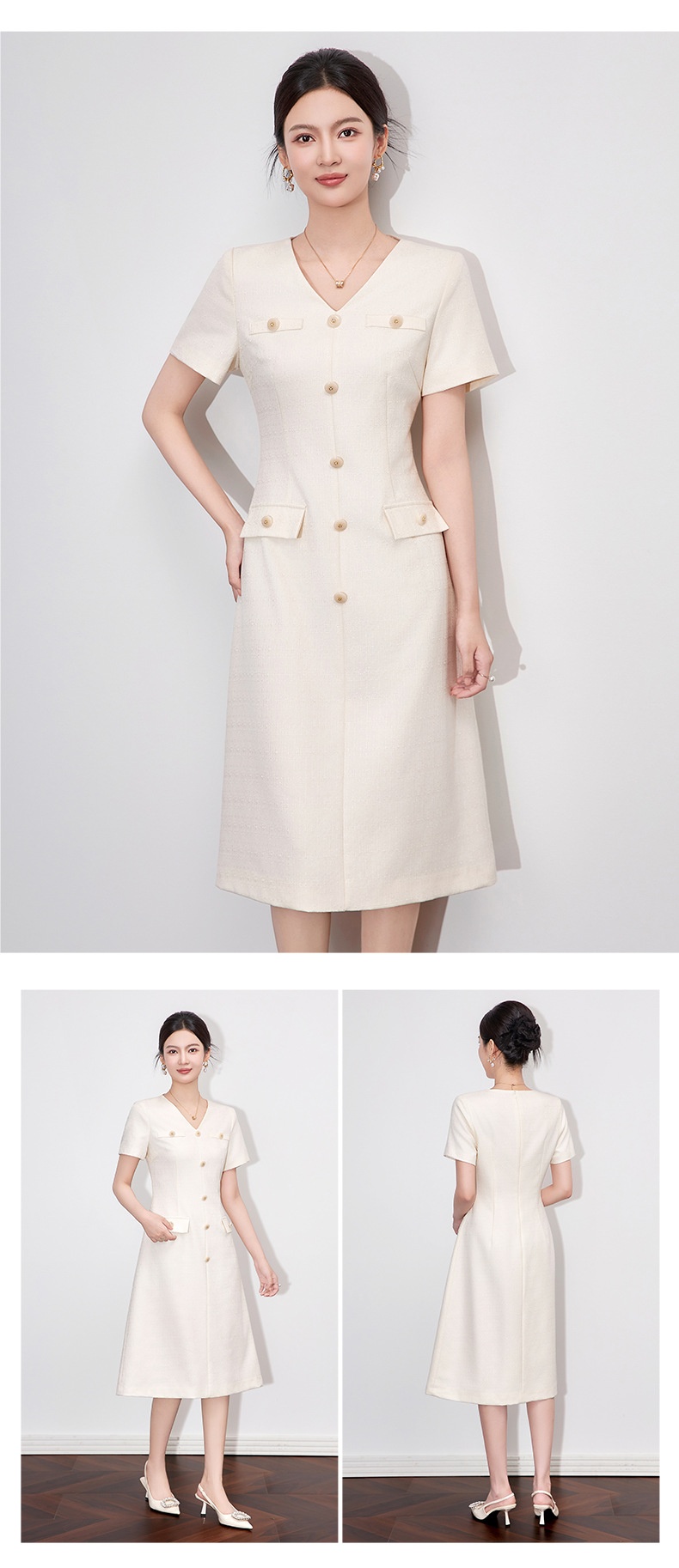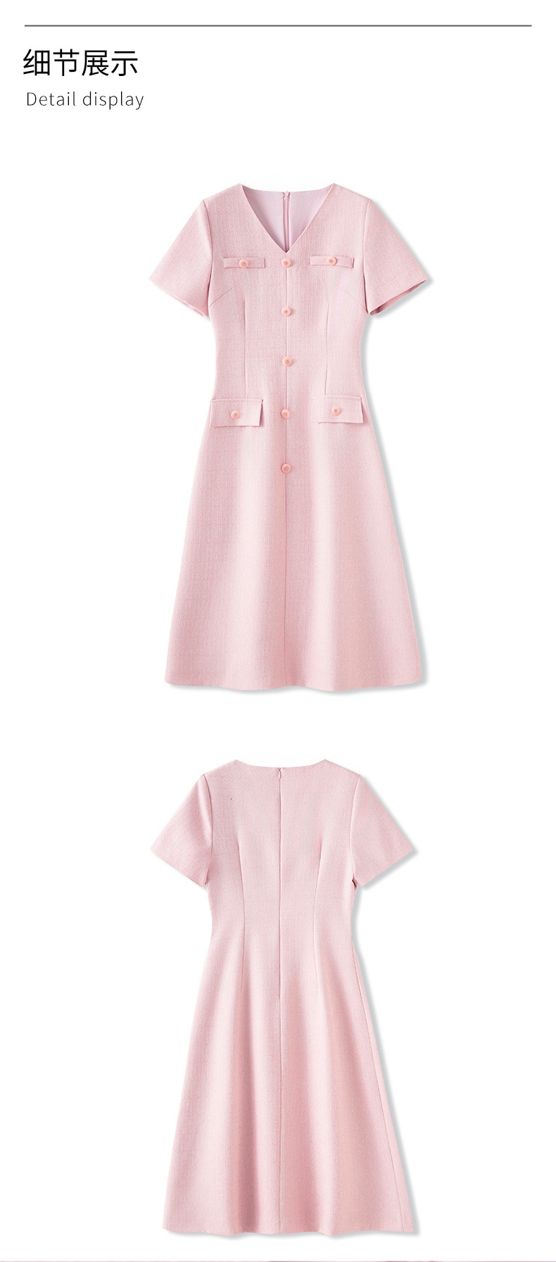 「高货wl」全新升级【铂金会员358/天猫479/差价121】(04559)洛诗琳精致小香风连衣裙2025夏季气质修身V领短袖裙子女