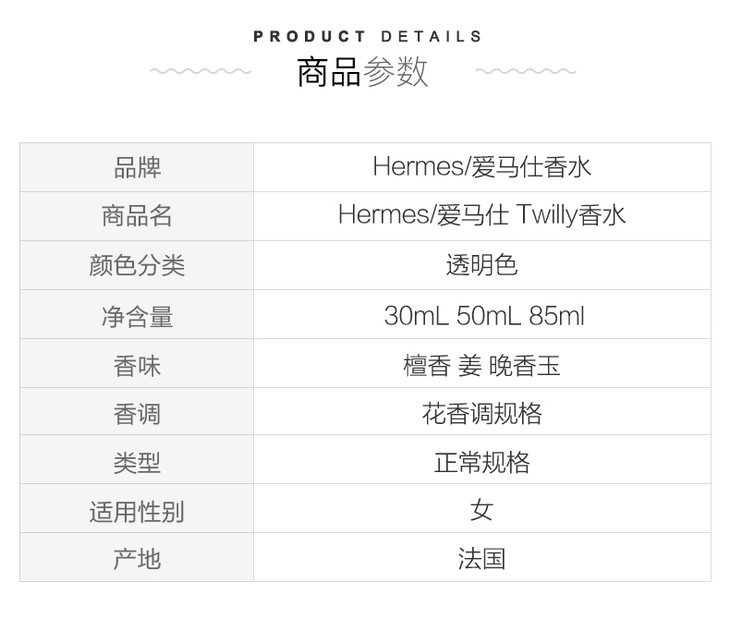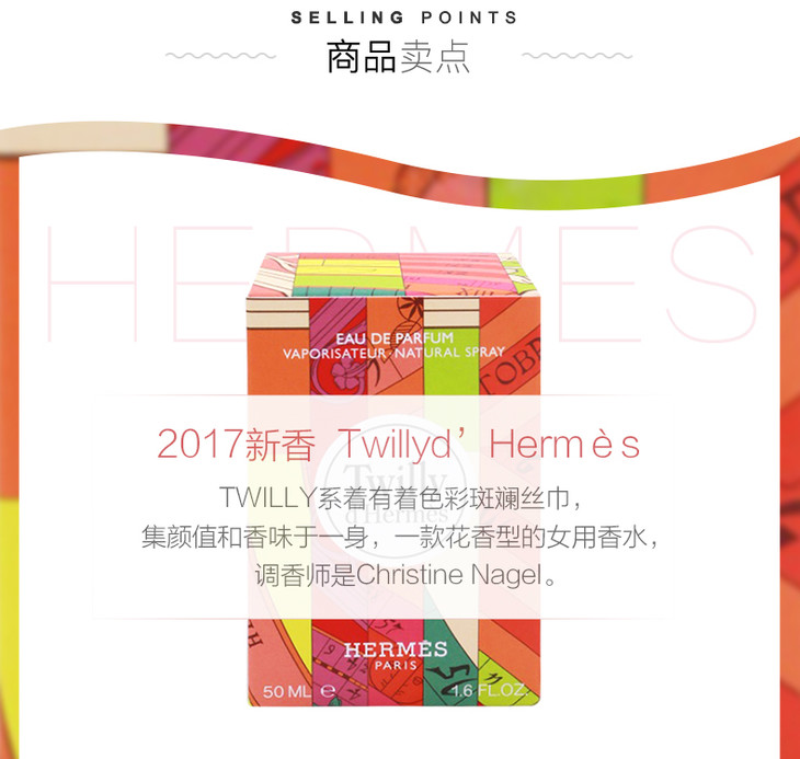 Hermes爱马仕进口Twilly丝巾淡香水花香调女士持久清新30ml 50ml