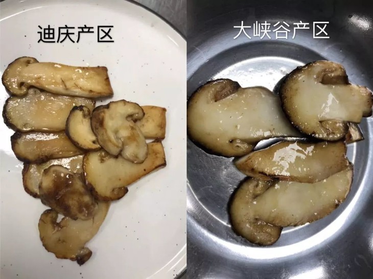 同样的做法,从照片上就能明显看出区别。我们方野的厨房大佬们试过之后都很兴奋,马上就在讨论针对特殊好食材的特殊套餐定制了。这里插个硬广,方野近期会推松茸宴,不耐烦自己做的可以蹲点方野公众号。