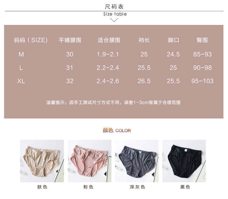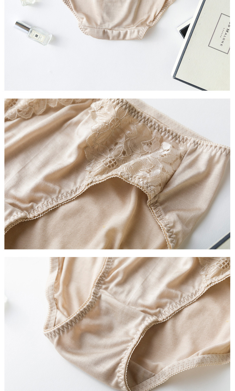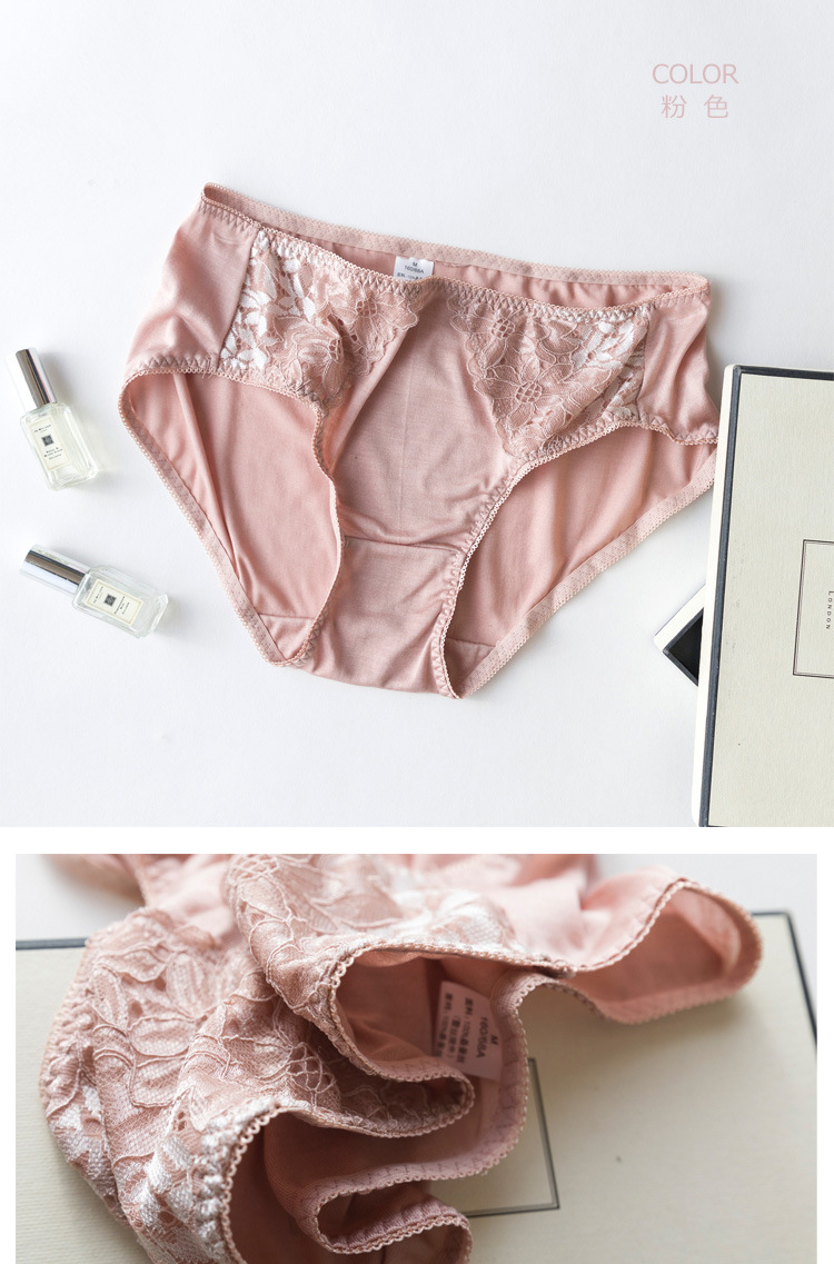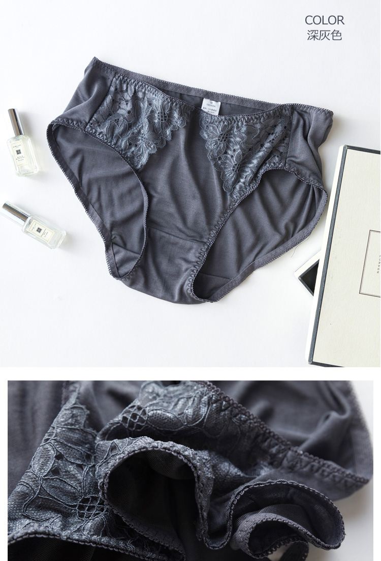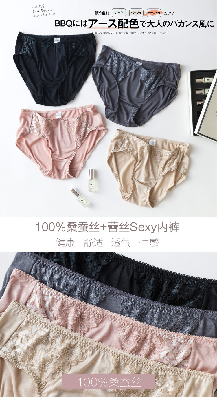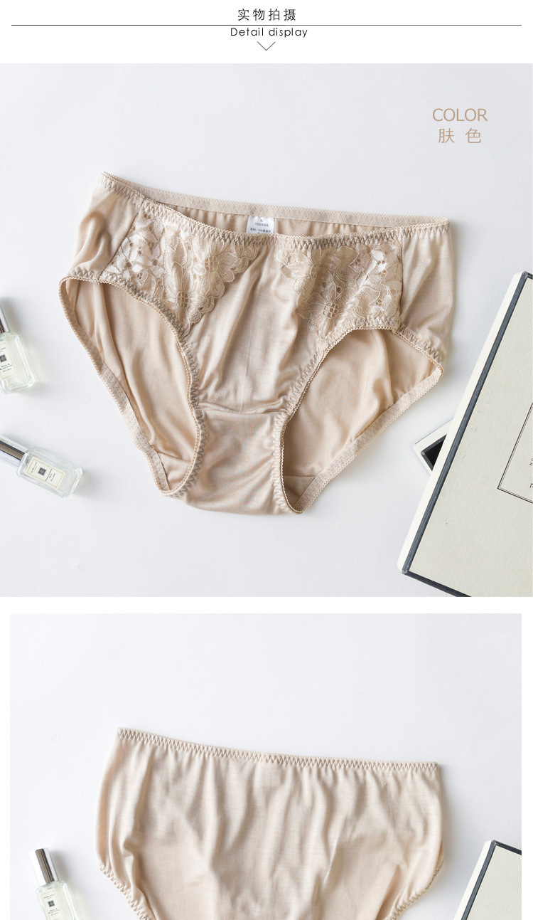上海旗袍厂TG-TG01S036真丝花边女士三角裤 桑蚕丝蕾丝性感内裤无痕透气大码