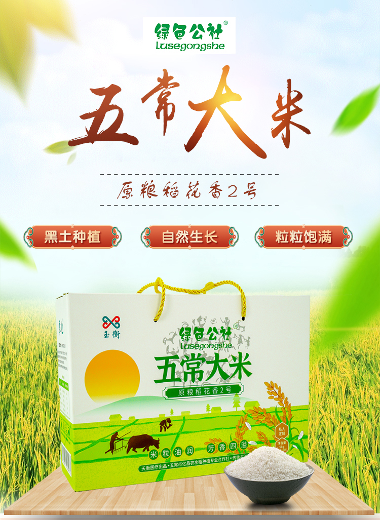 绿色公社五常大米 原粮稻花香2号 自有基地种植 5kg