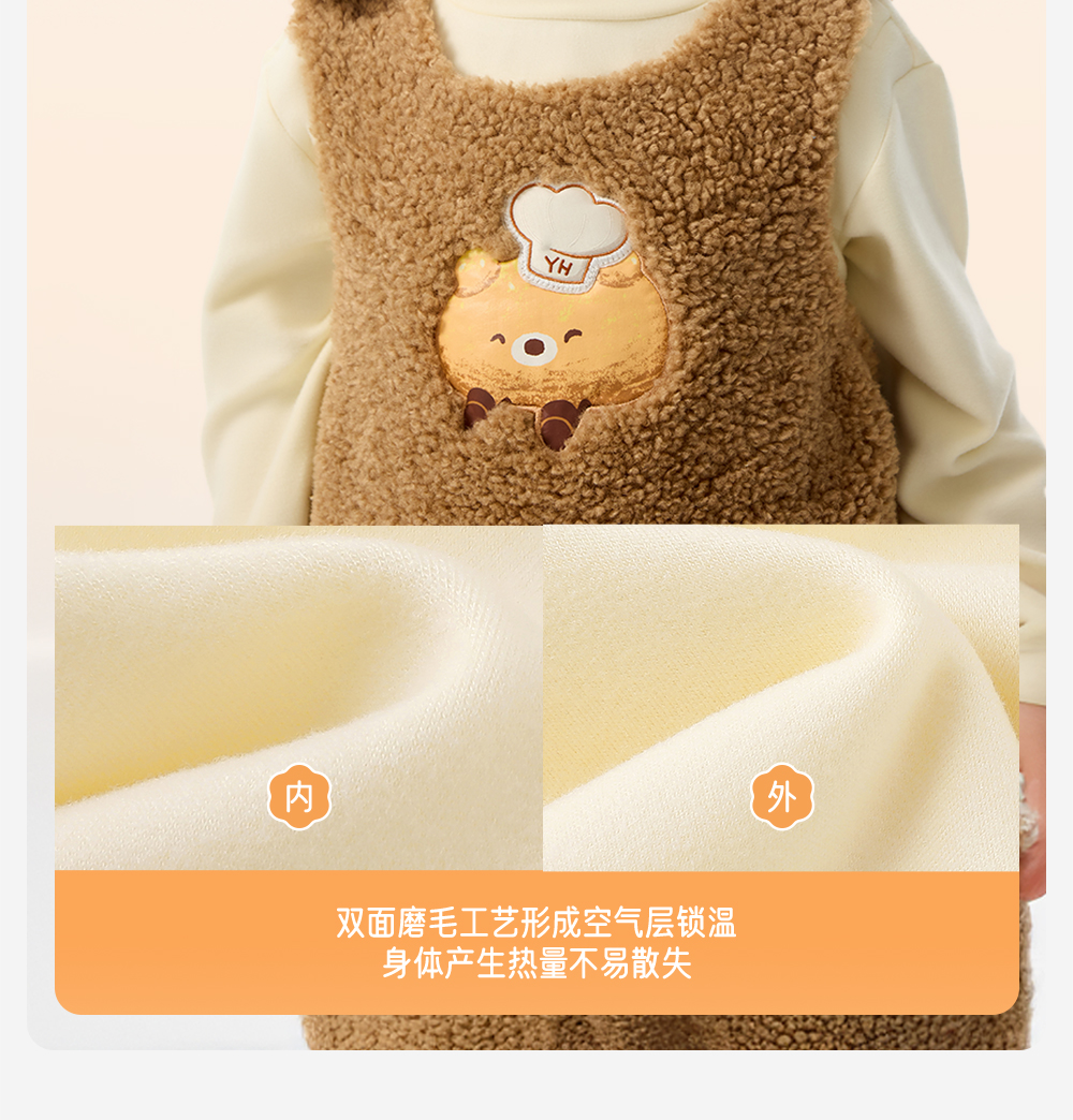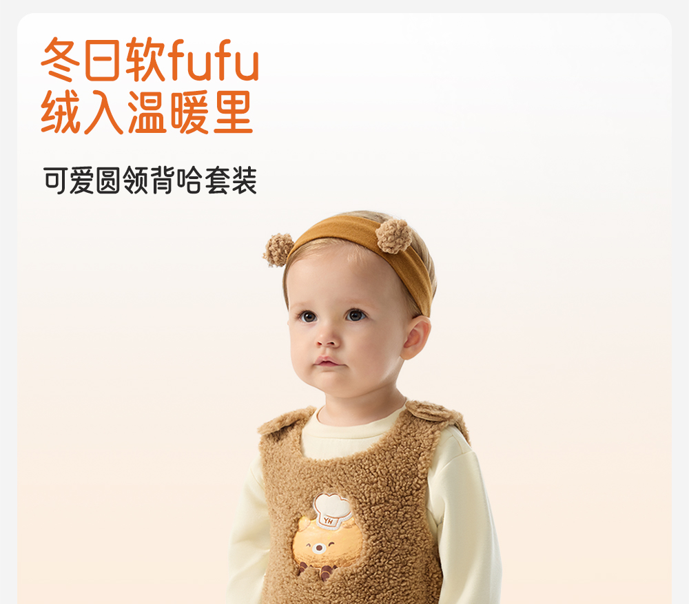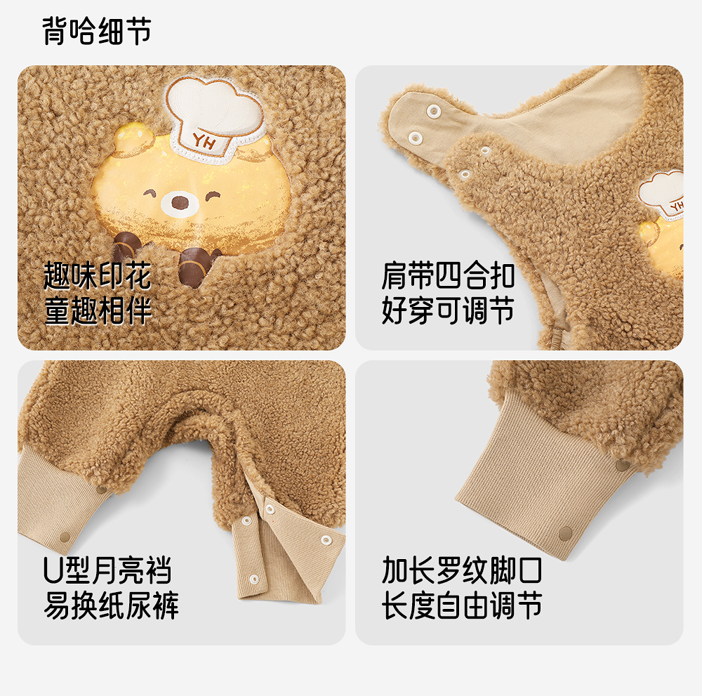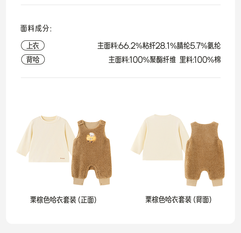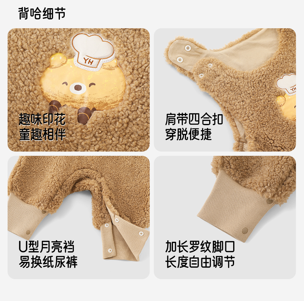 英氏婴儿衣服长袖套装秋冬装宝宝加绒保暖外出服背带哈衣两件套