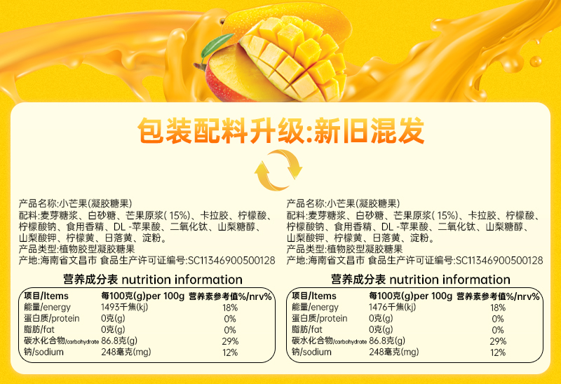 春光食品小芒果200g*3/480g*2 果汁软糖水果糖